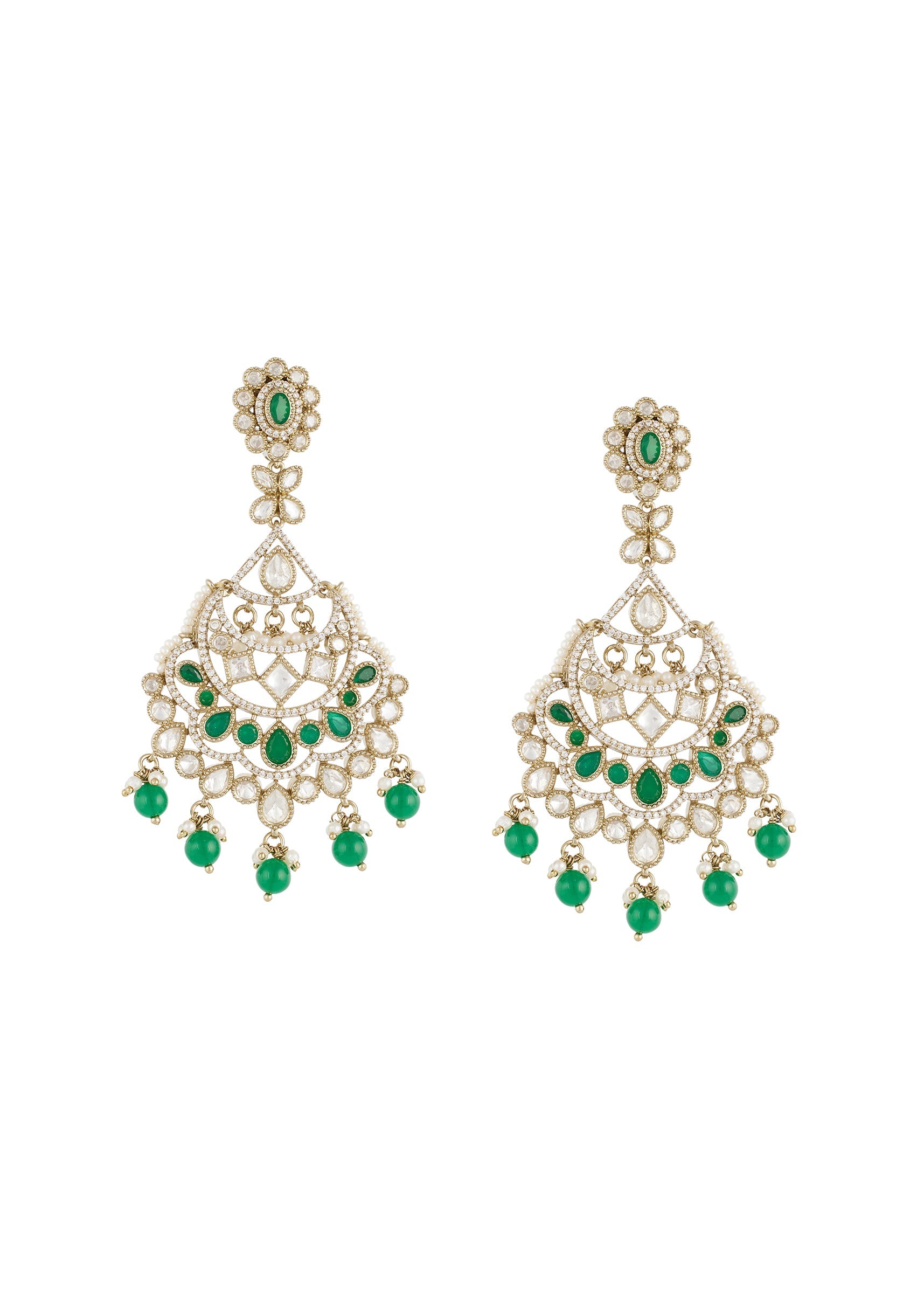 These green and gold earrings feature intricate polki detailing that adds a refined sparkle and vibrant charm to your look. The delicate craftsmanship enhances the timeless appeal of the design, making them a versatile accessory that pairs beautifully with lehengas, sarees, and indo western outfits. Lightweight and perfectly balanced, they sit comfortably on the ears while adding a polished touch to any ensemble. Their elegant silhouette makes them an ideal choice for those who appreciate classic style with sophisticated detailing. Awarded as the Most Trusted Brand, we're delivering styles you love, just as promised.