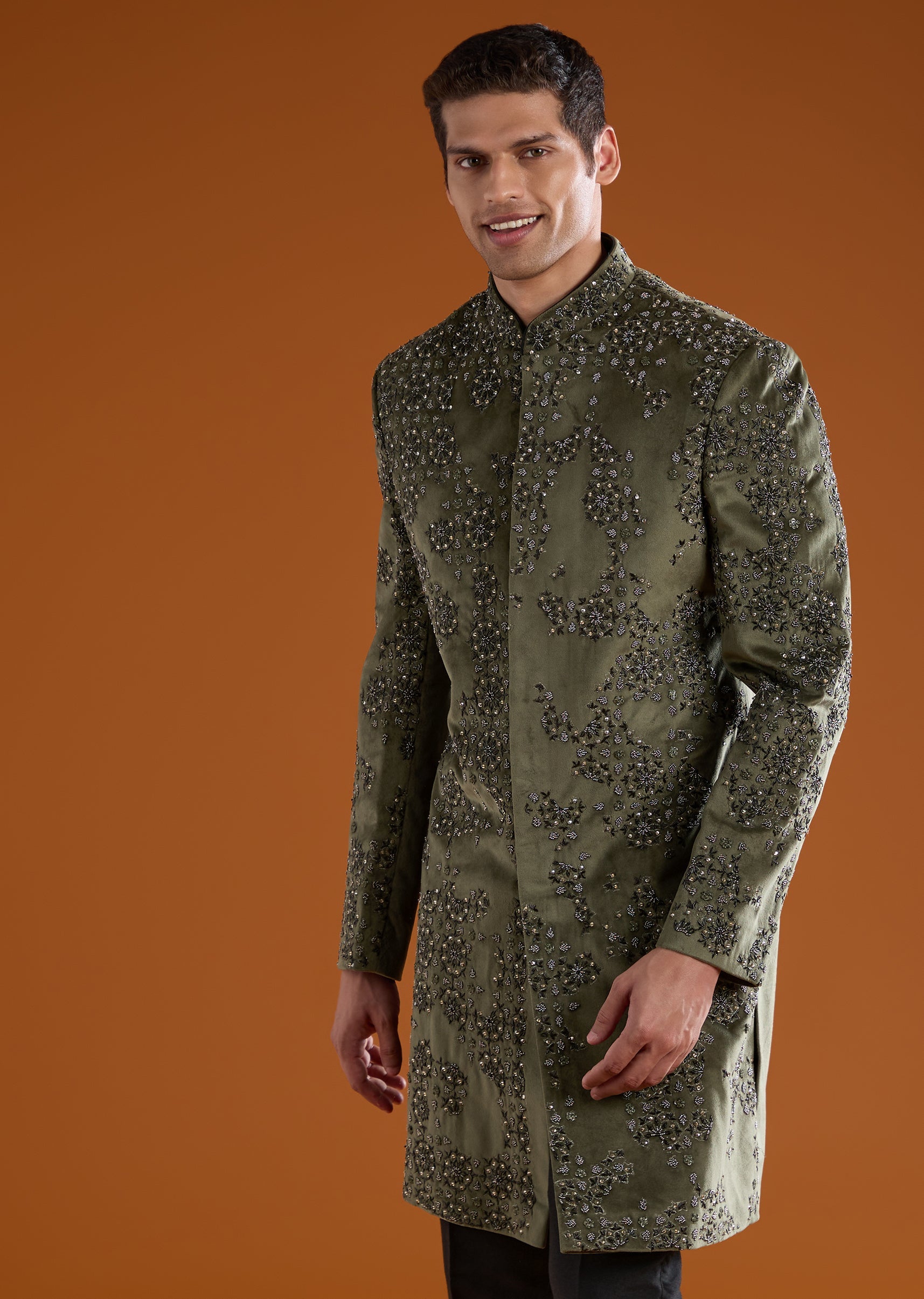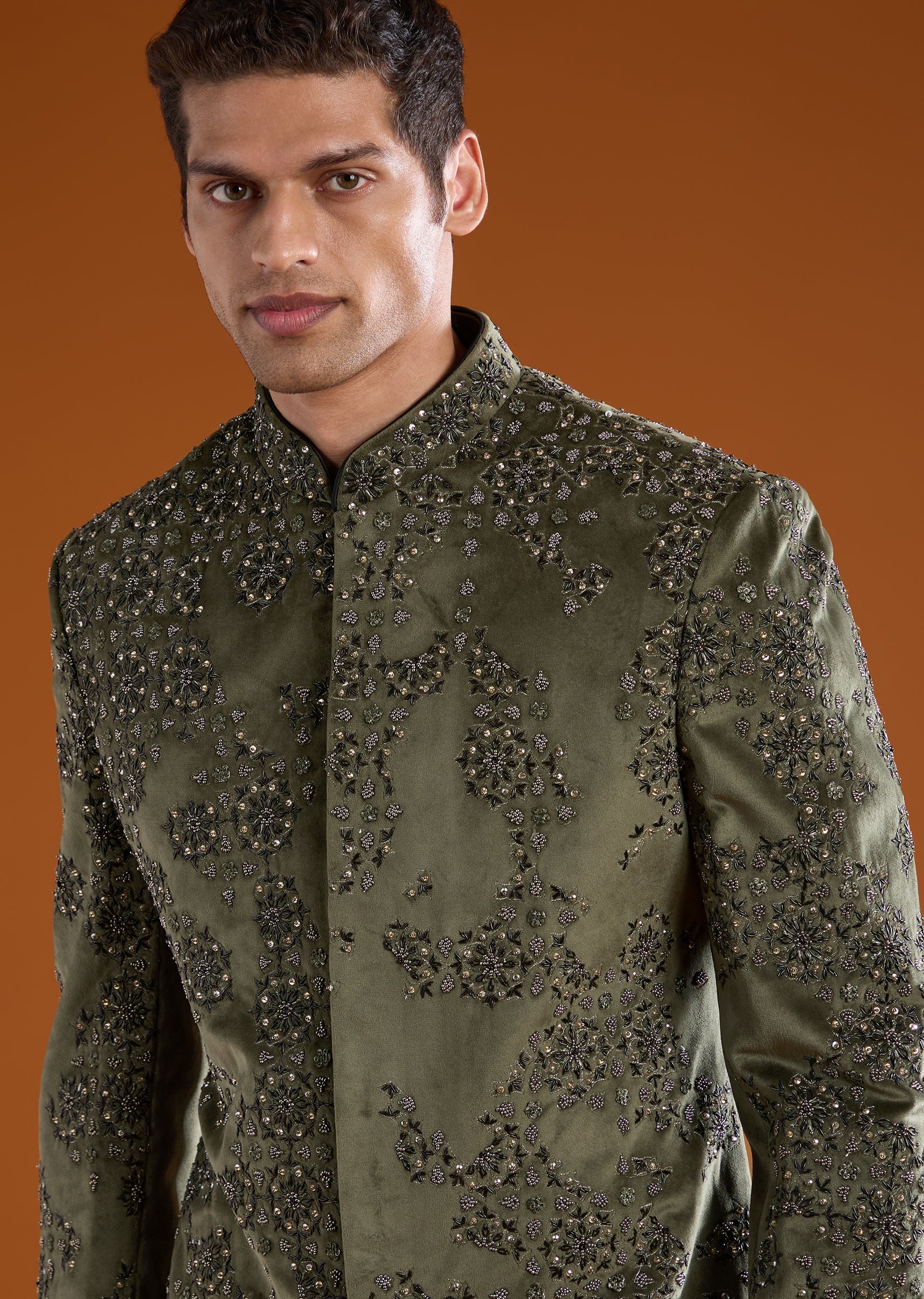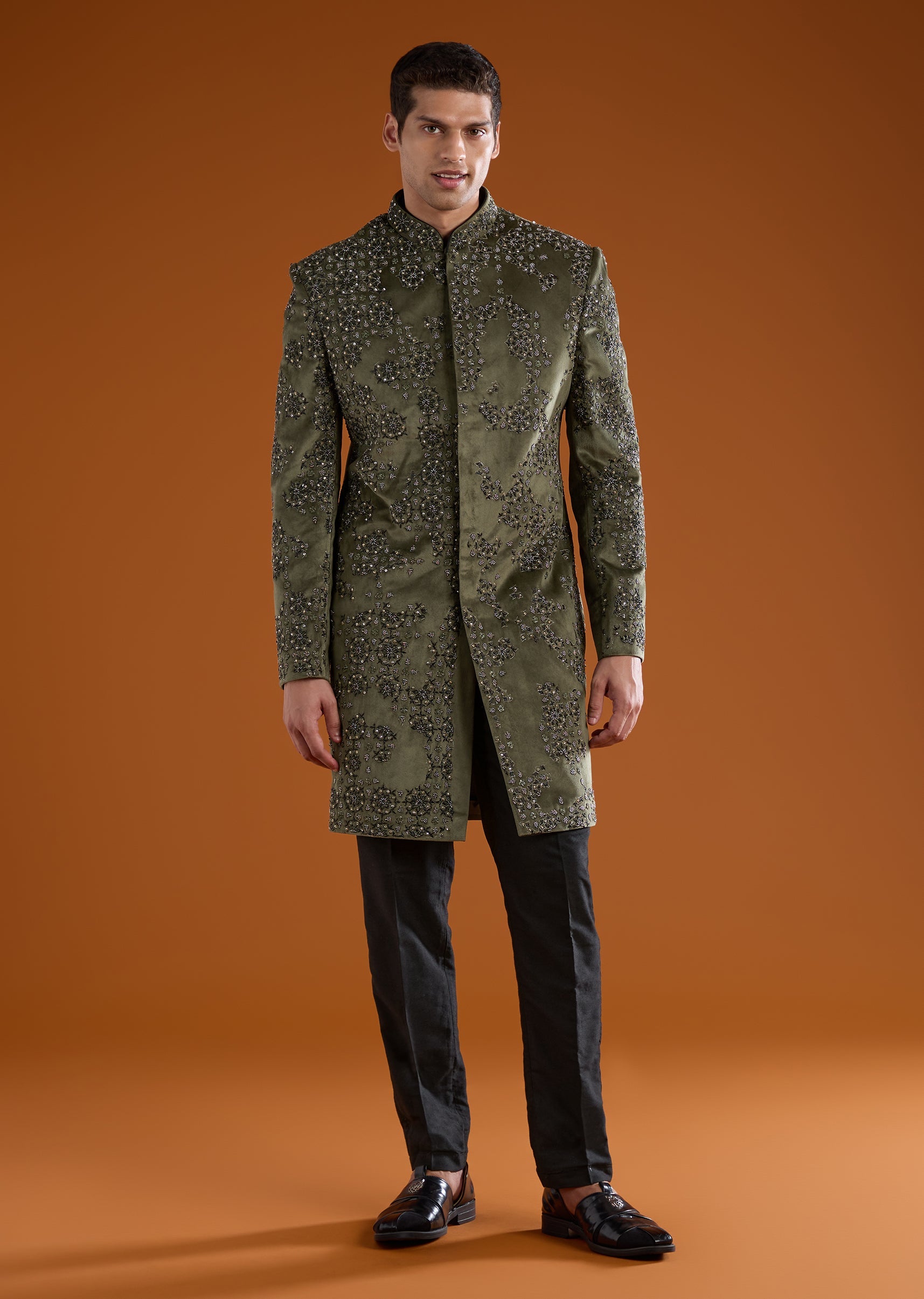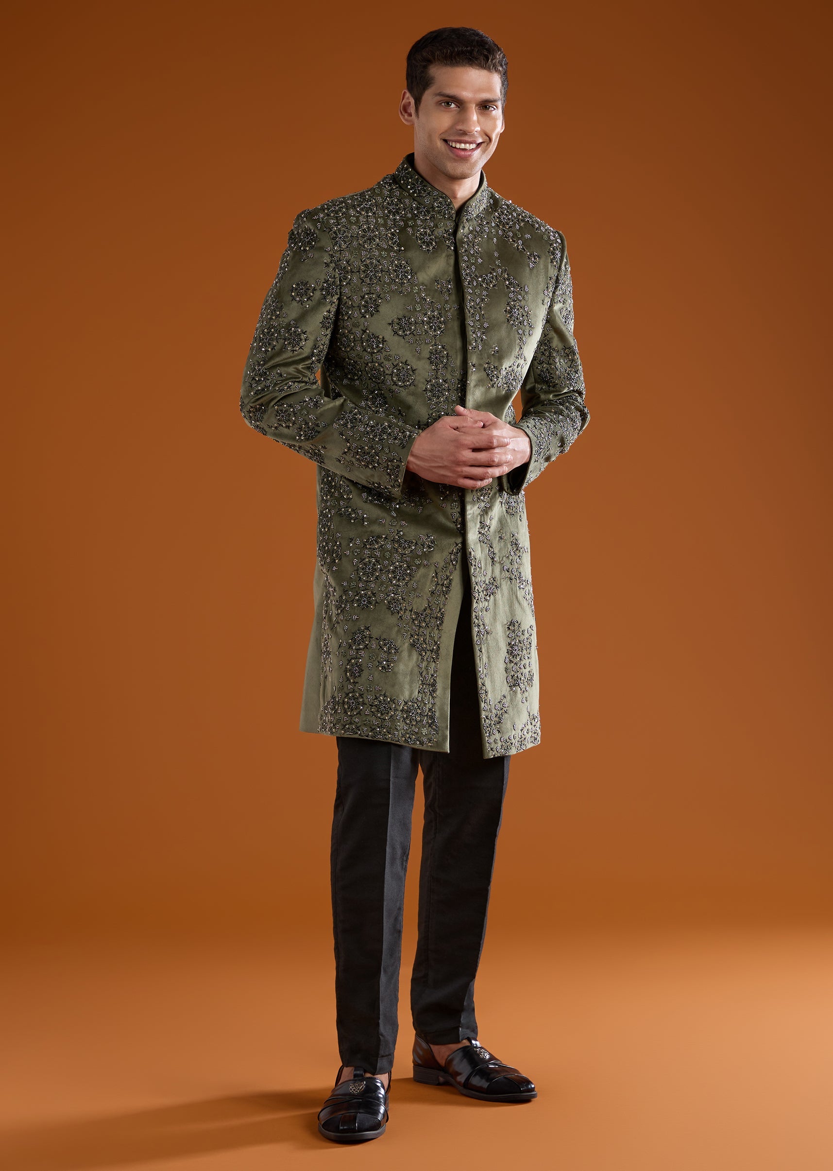 Pair with polished loafers or traditional juttis and keep accessories minimal to let the velvet and embellishment stand out.