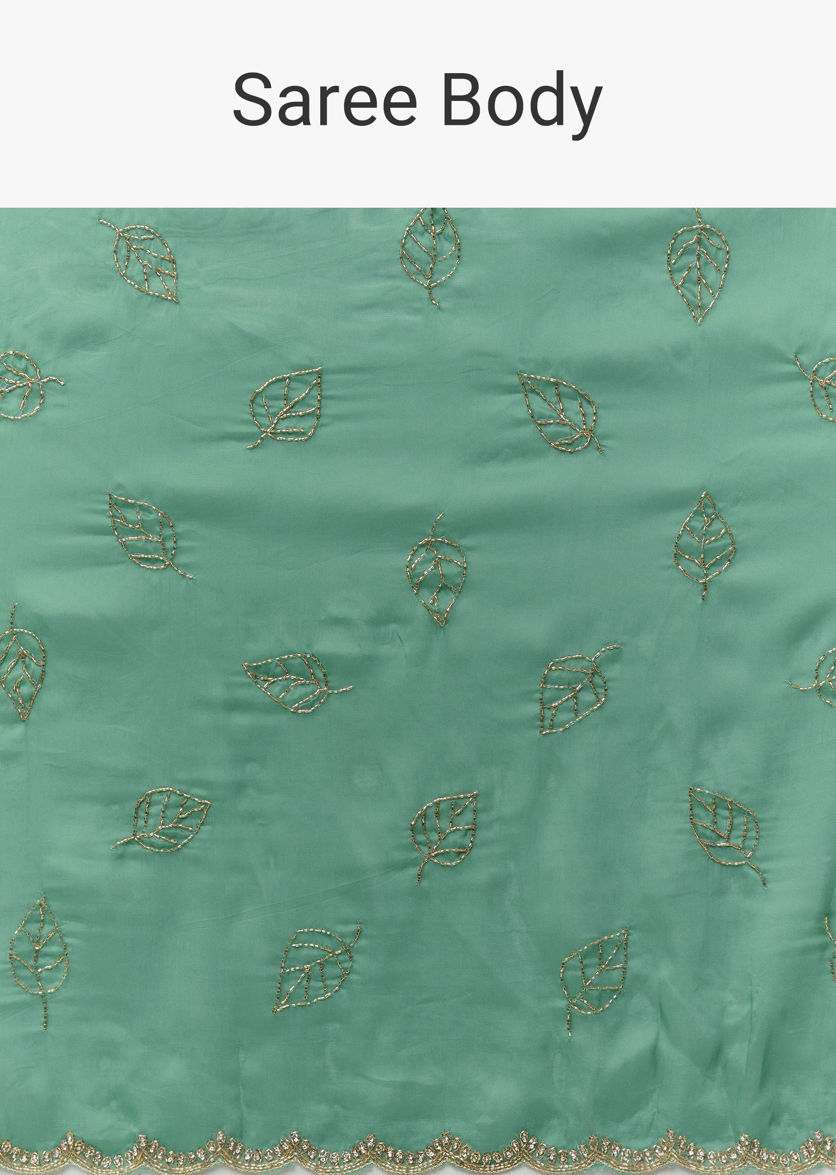 Green Kora Silk Saree With Cutdana Stones And Leaf Motif Embroidery