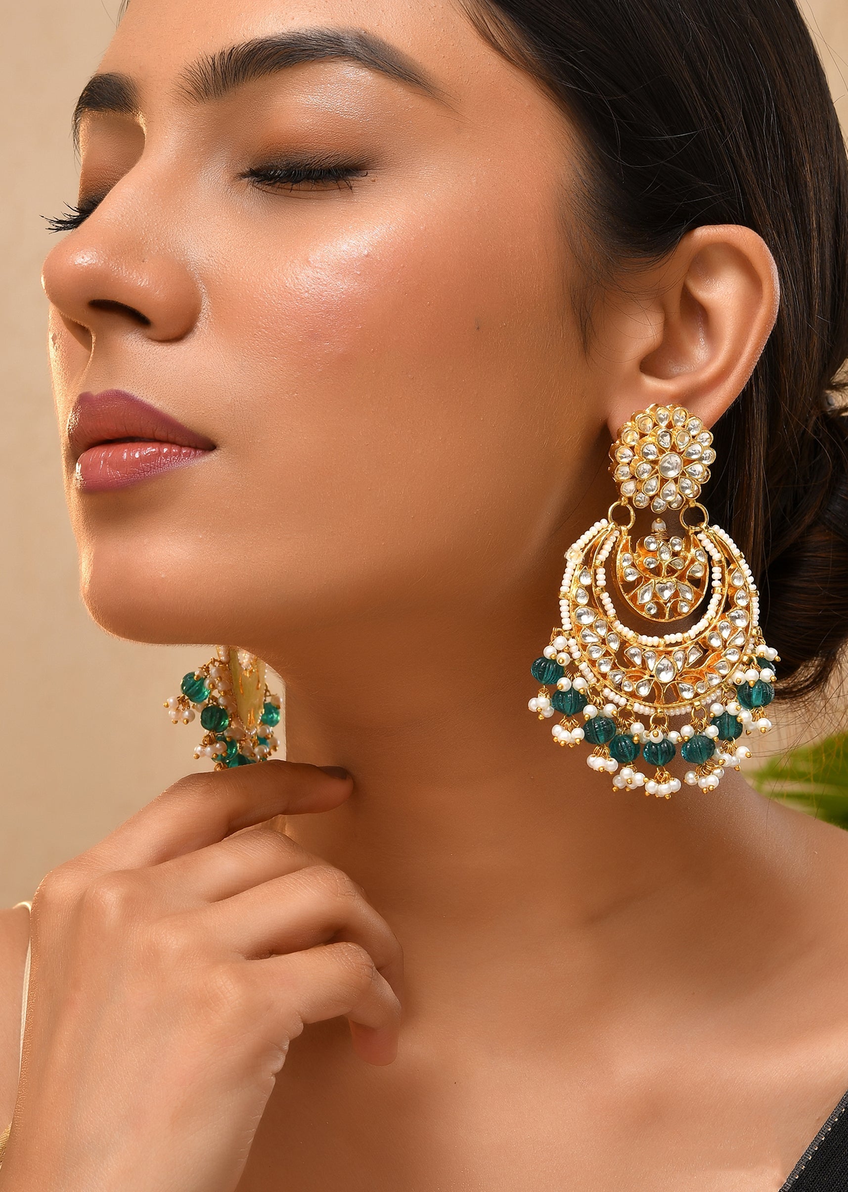 Add a touch of traditional beauty to your look with these green kundan floral chandbalis, crafted with intricate detailing for a rich festive sparkle. Perfect for weddings and celebrations, they bring a vibrant, elegant finish to any ethnic outfit.Awarded as the Most Trusted Brand, we're delivering styles you love, just as promised.