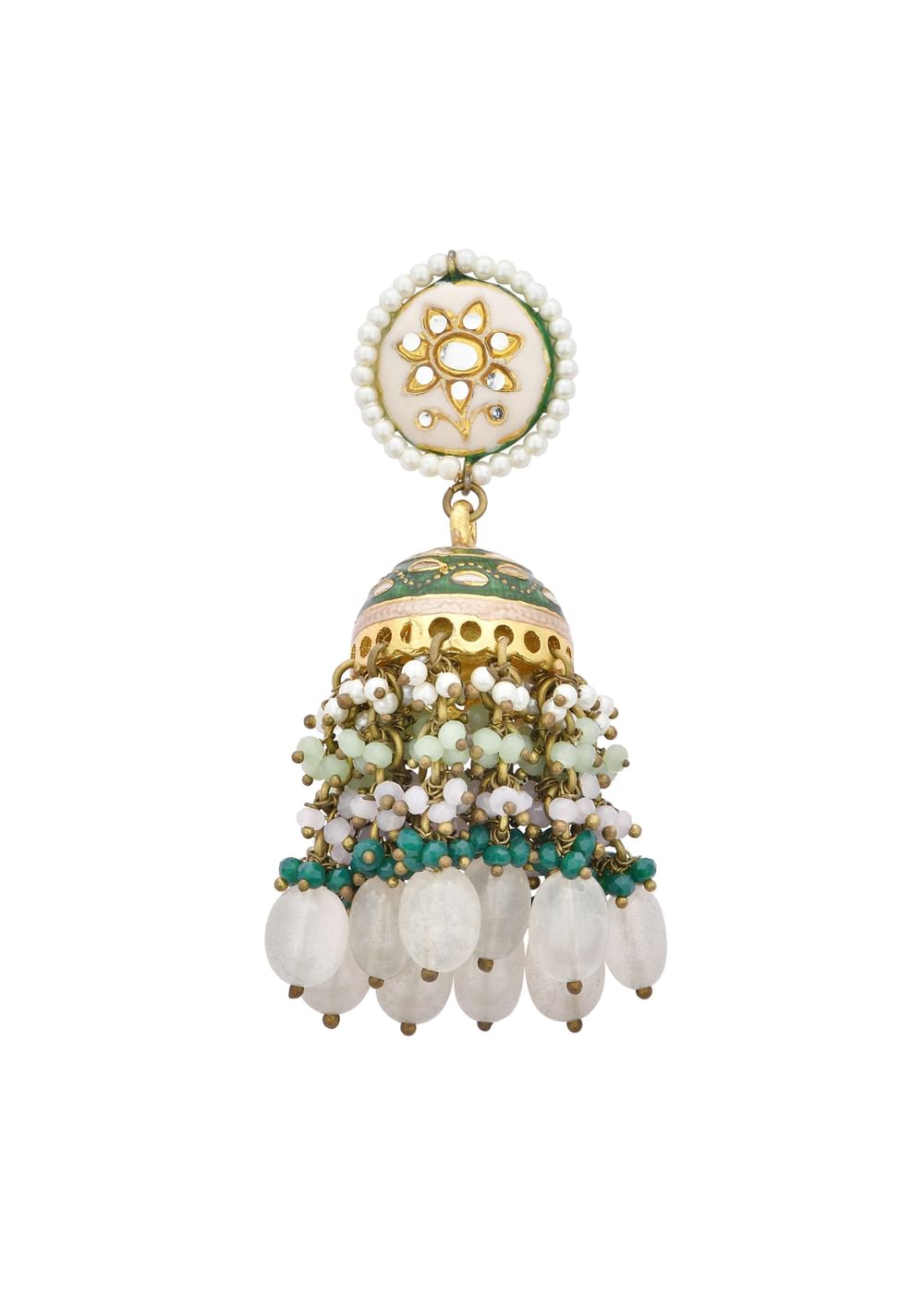 Green Kundan Jhumkas With Tiered Beads