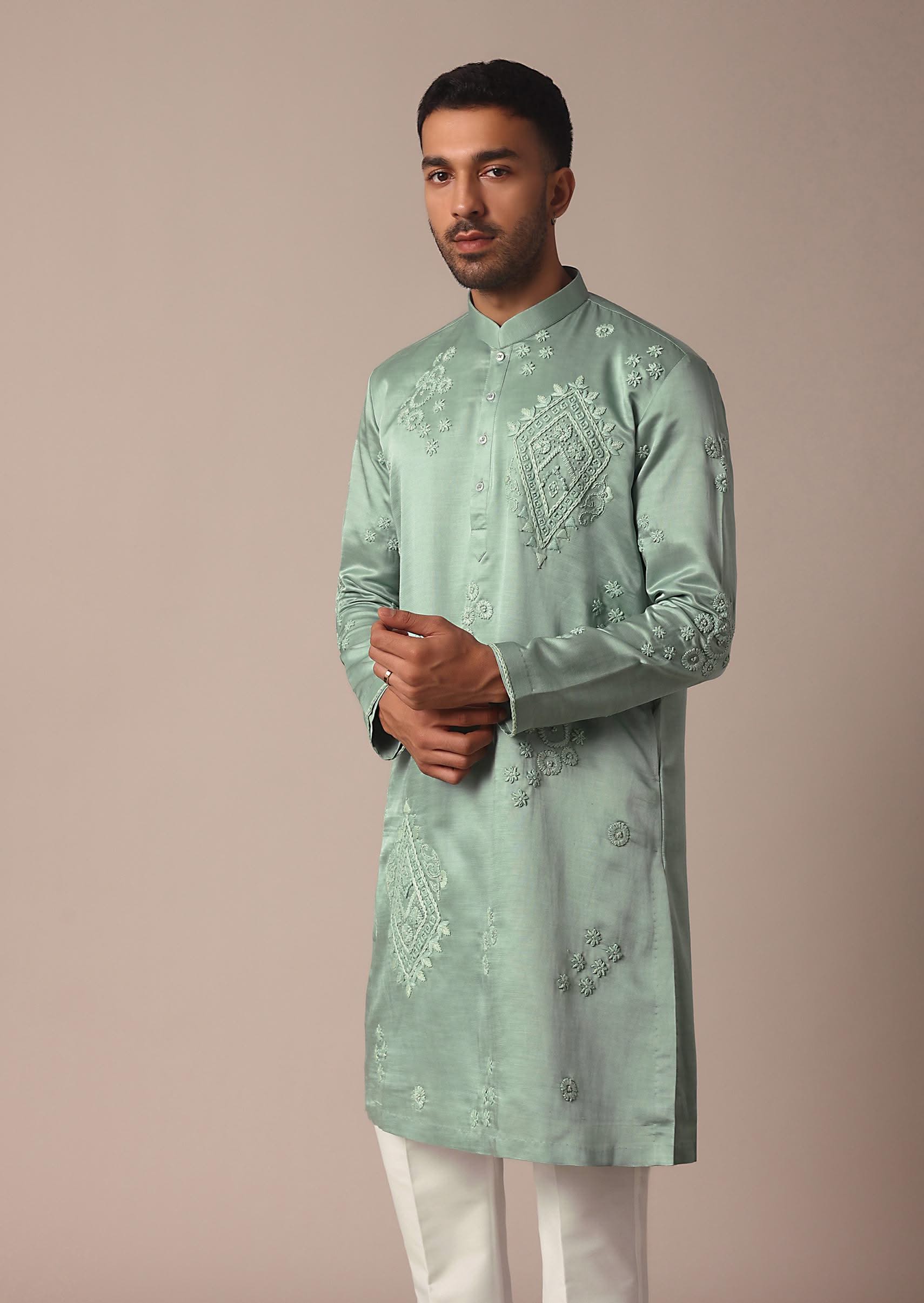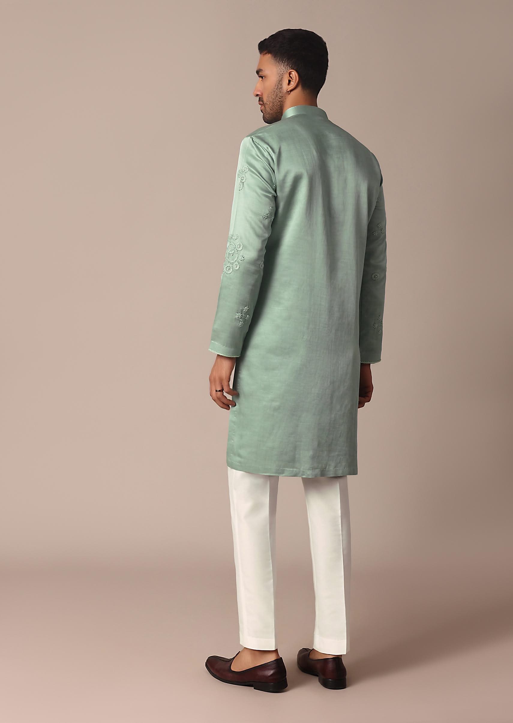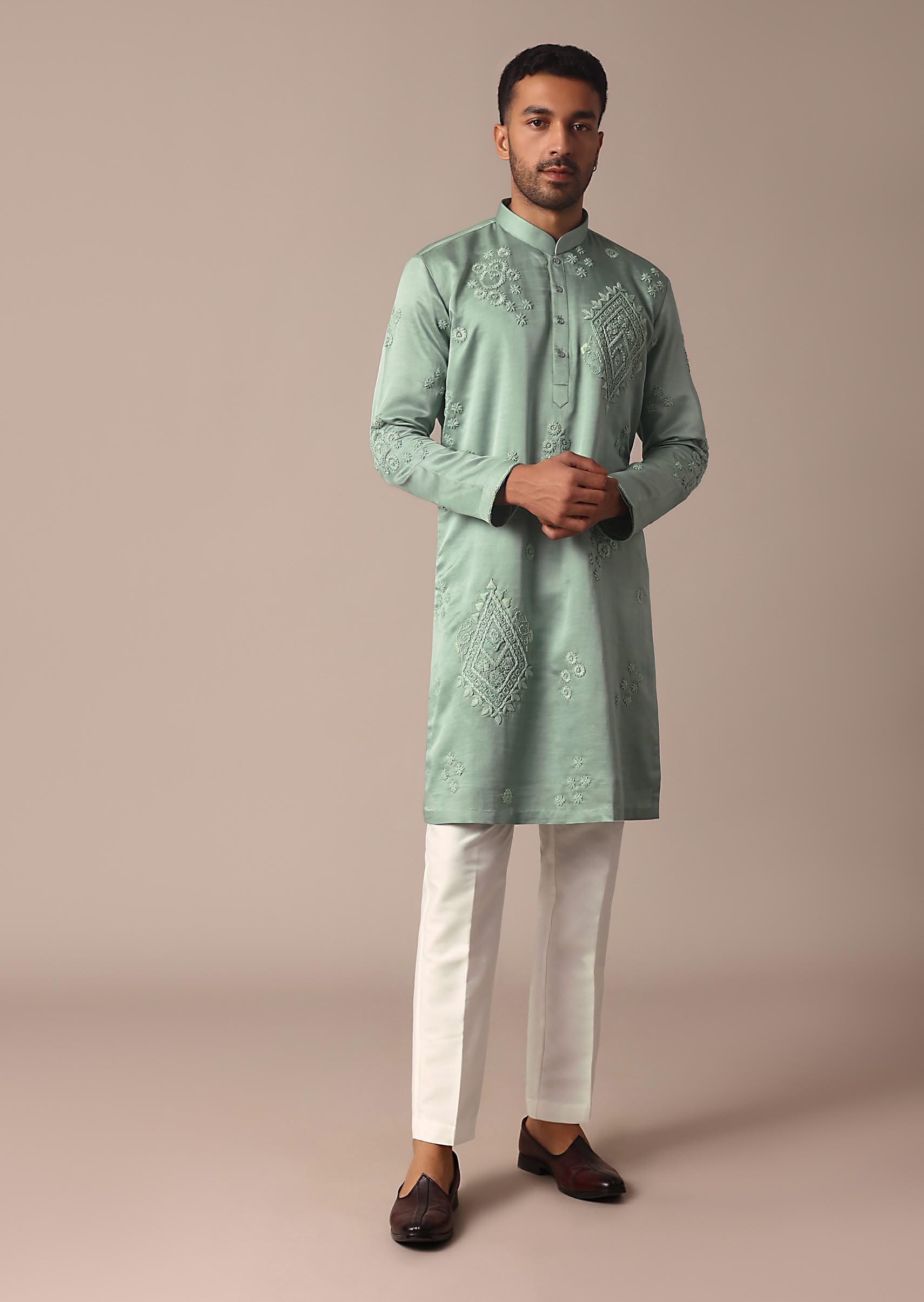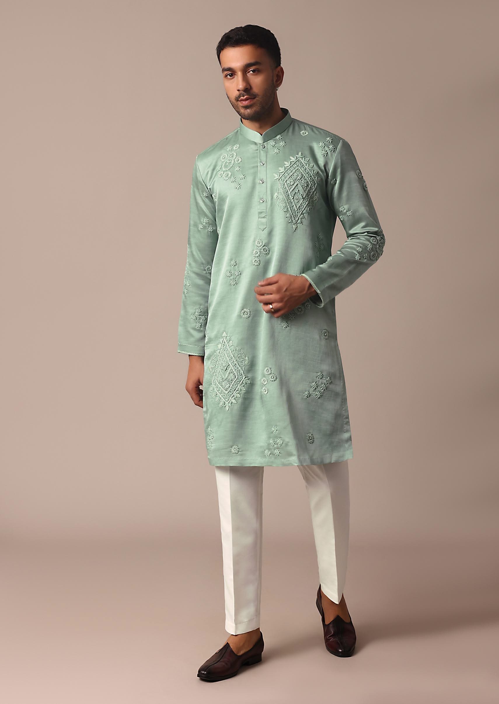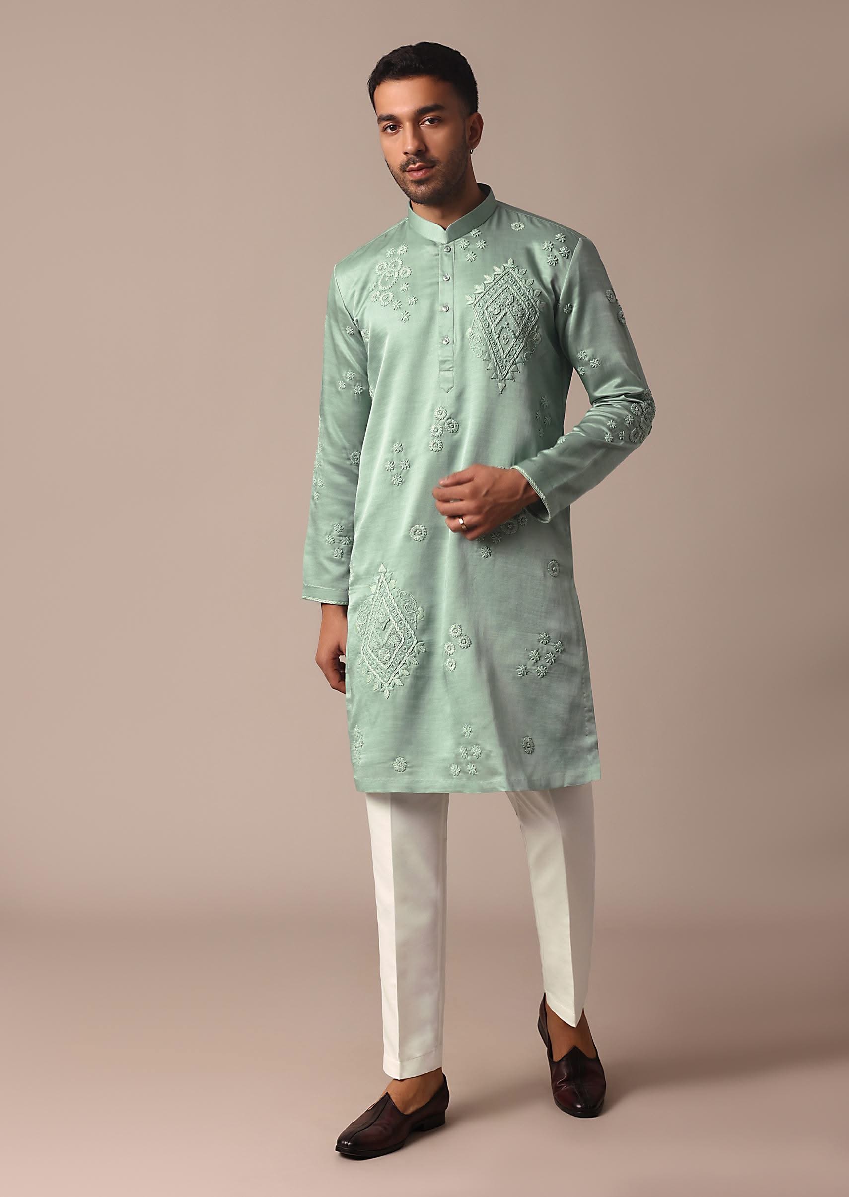 Embrace festive flair with our Green Linen Kurta Set. It features intricate thread/resham work on the yoke in a vibrant Mehendi hue. Crafted for comfort and style, this set includes one kurta and a bottom. It is perfect for adding a touch of elegance to your festival celebrations. Awarded as the Most Trusted Brand, we're delivering styles you love, just as promised.