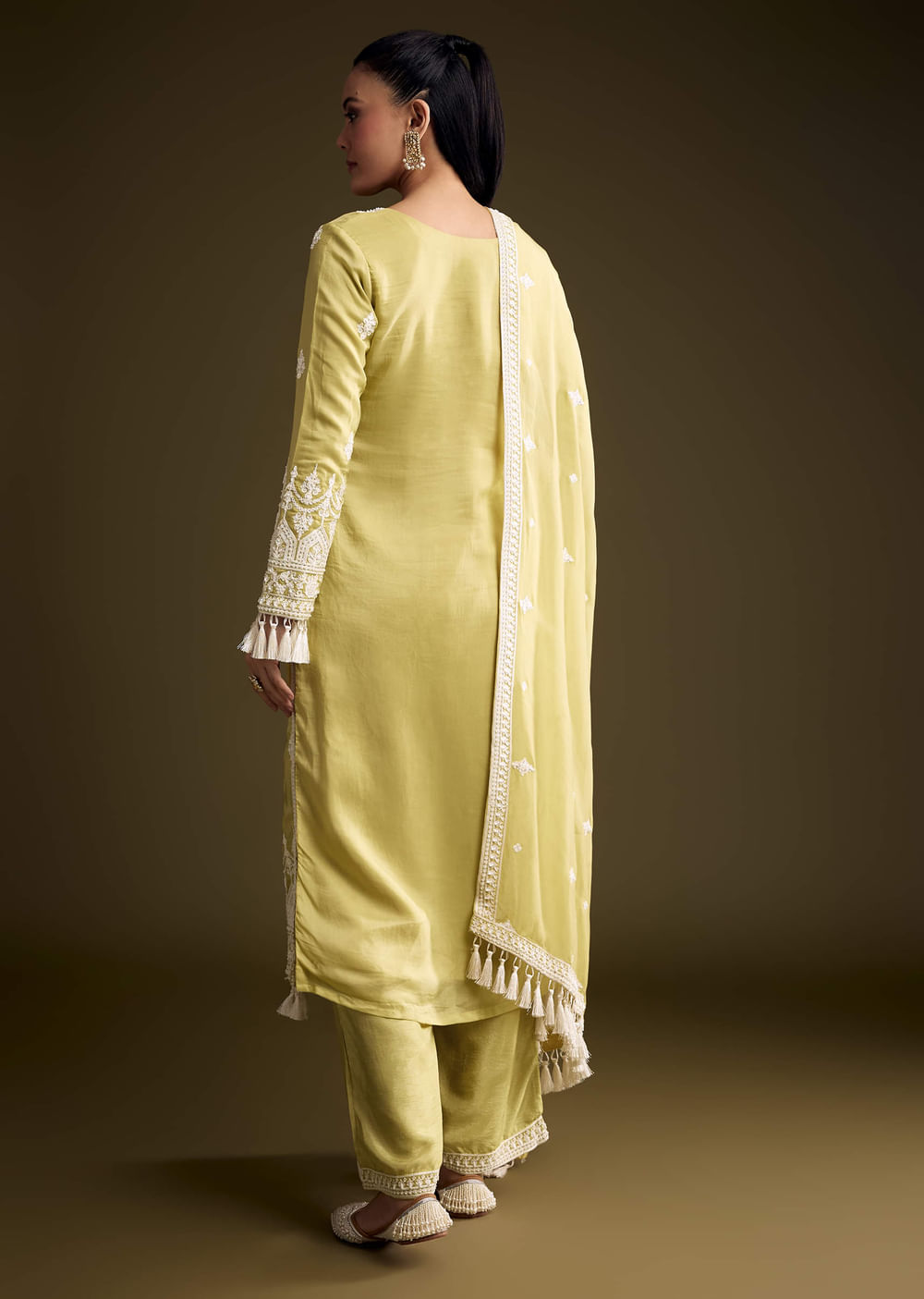 If you like a floaty profile with detail, this green organza kurta set brings airy movement with defined craft. Thread embroidery traces the surface for a refined finish that stays... More Product Details