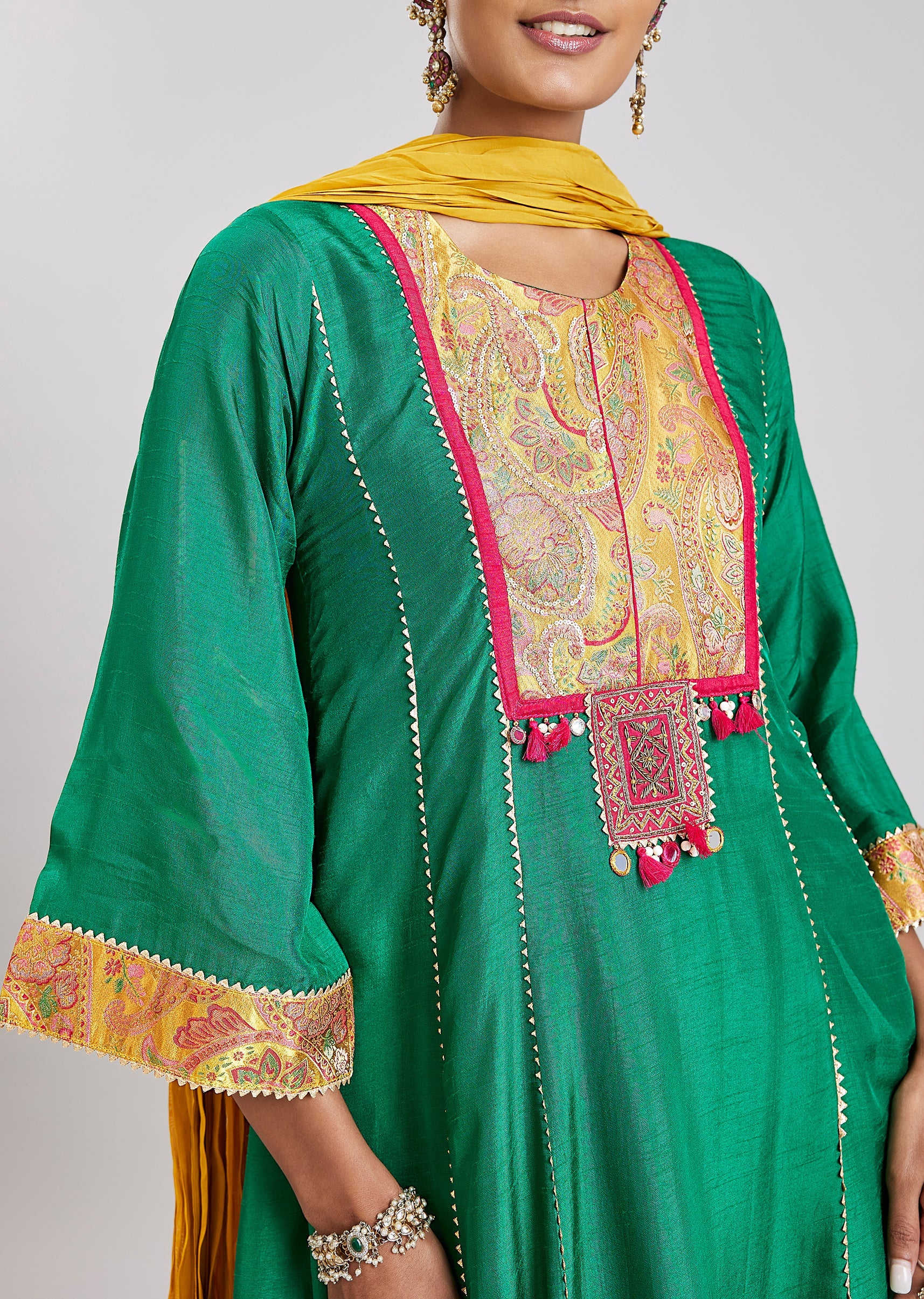 Green Patchwork Anarkali Set