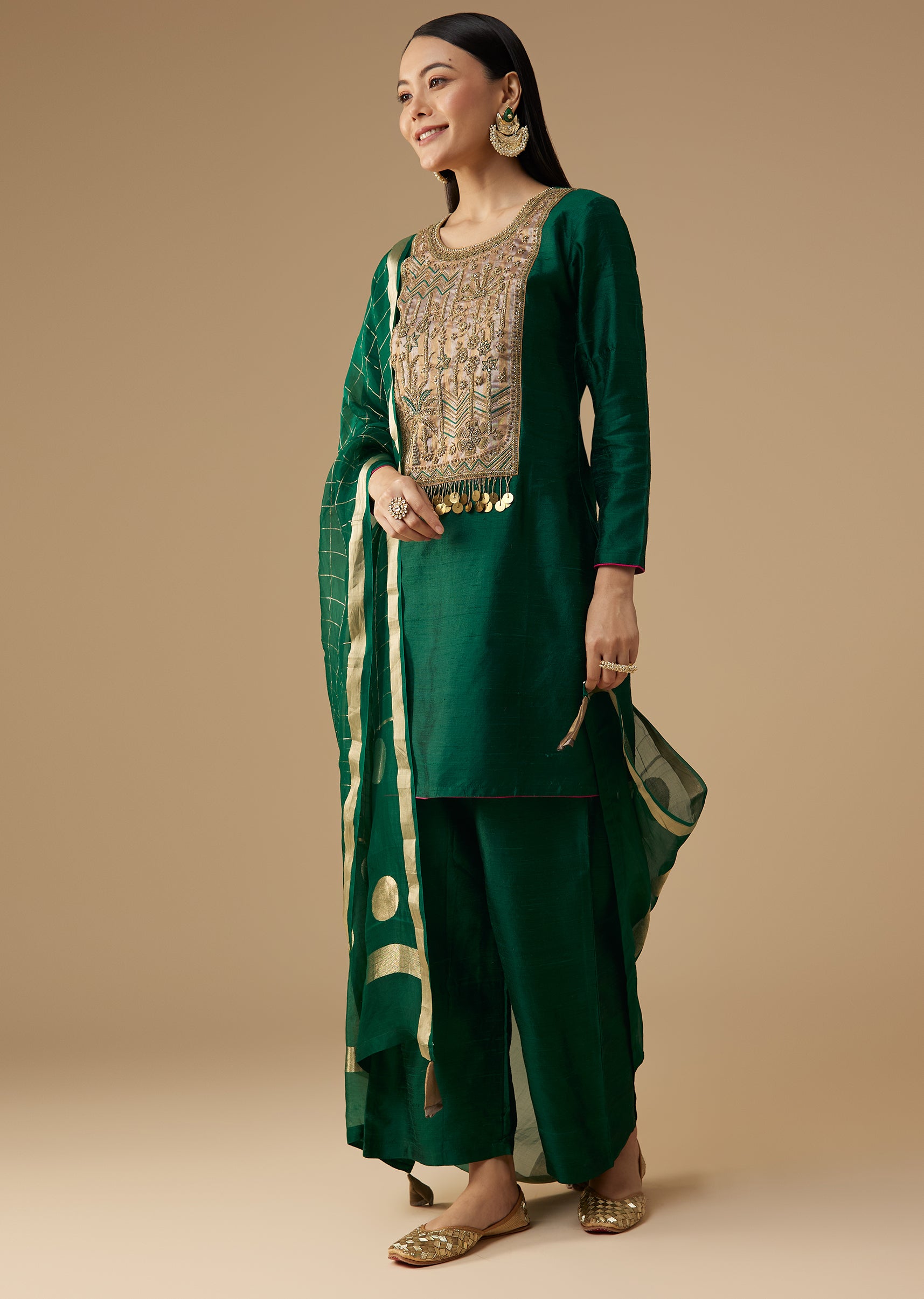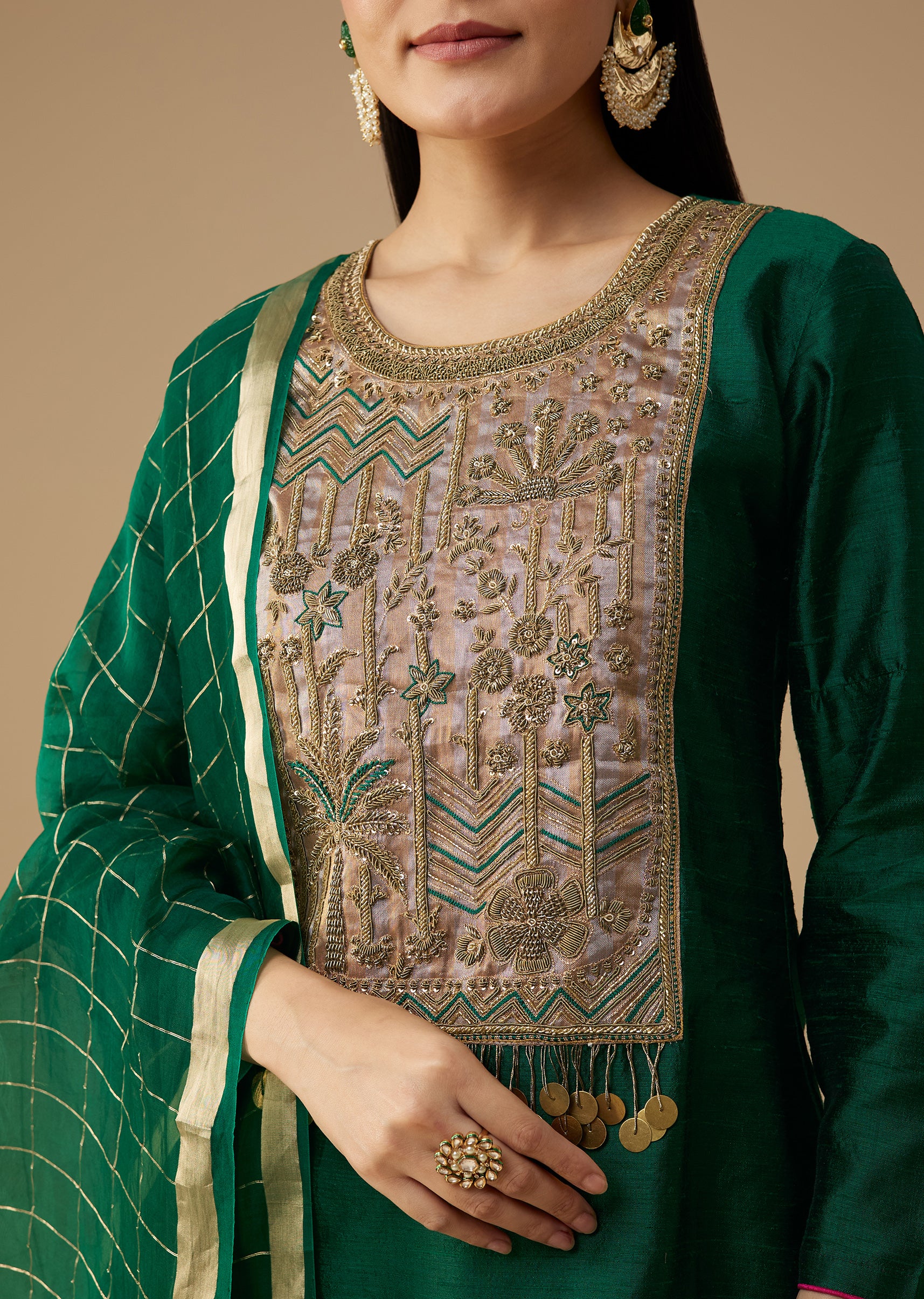 Green Pure Raw Silk Zardozi Embellished Kurta Set
