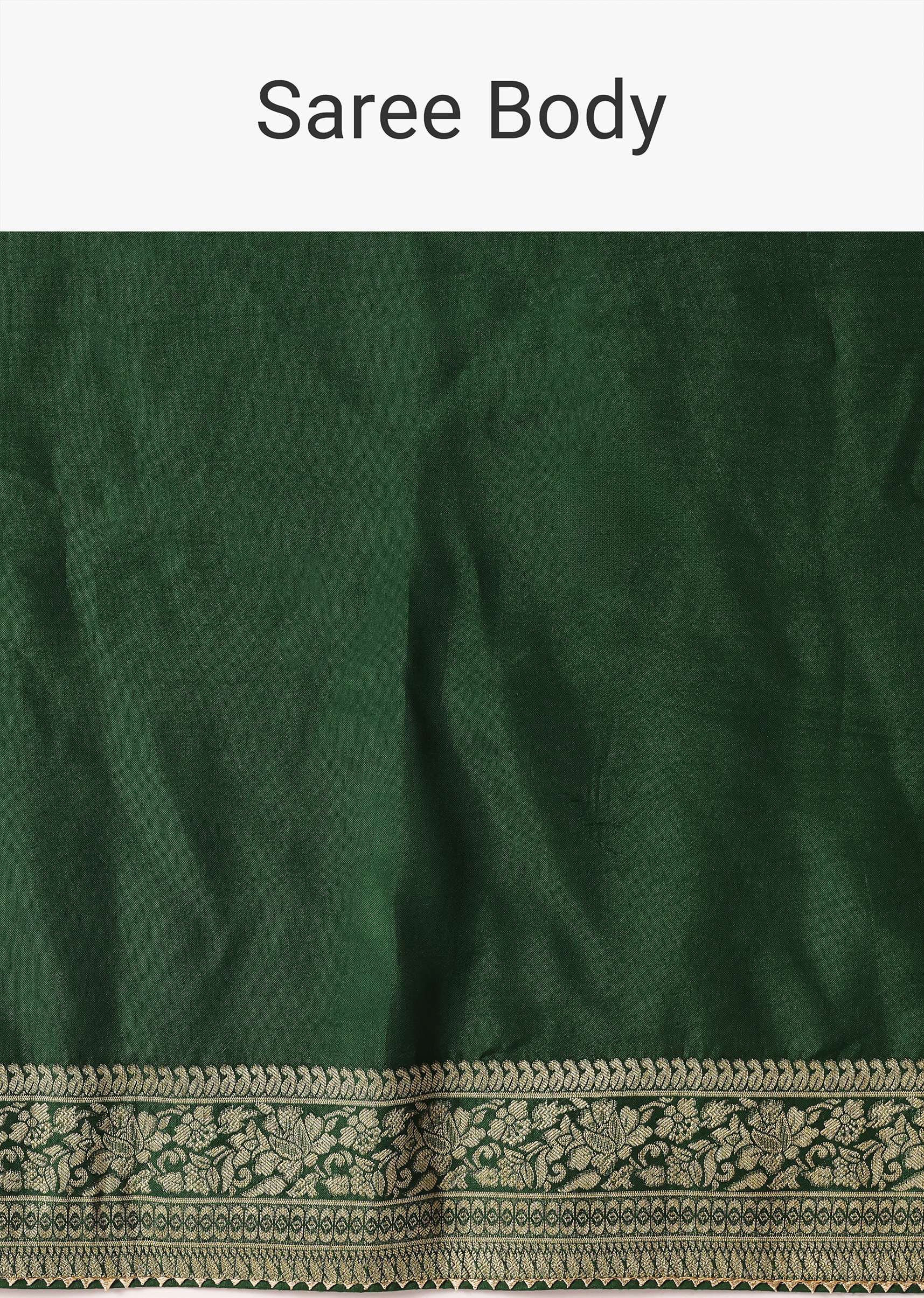 Green Saree In Silk With Woven Bandhani Detail And Unstitched Blouse Piece