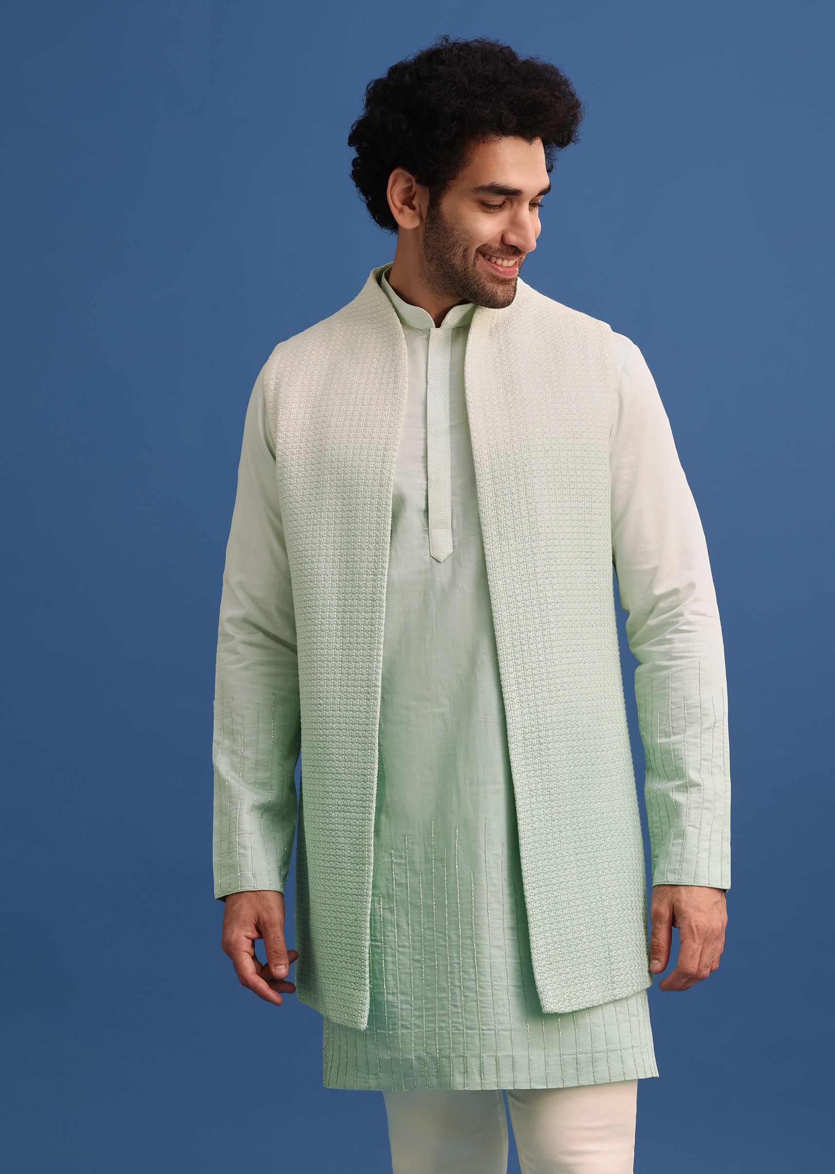 Green Silk Ombre Zardosi Kurta Jacket Set