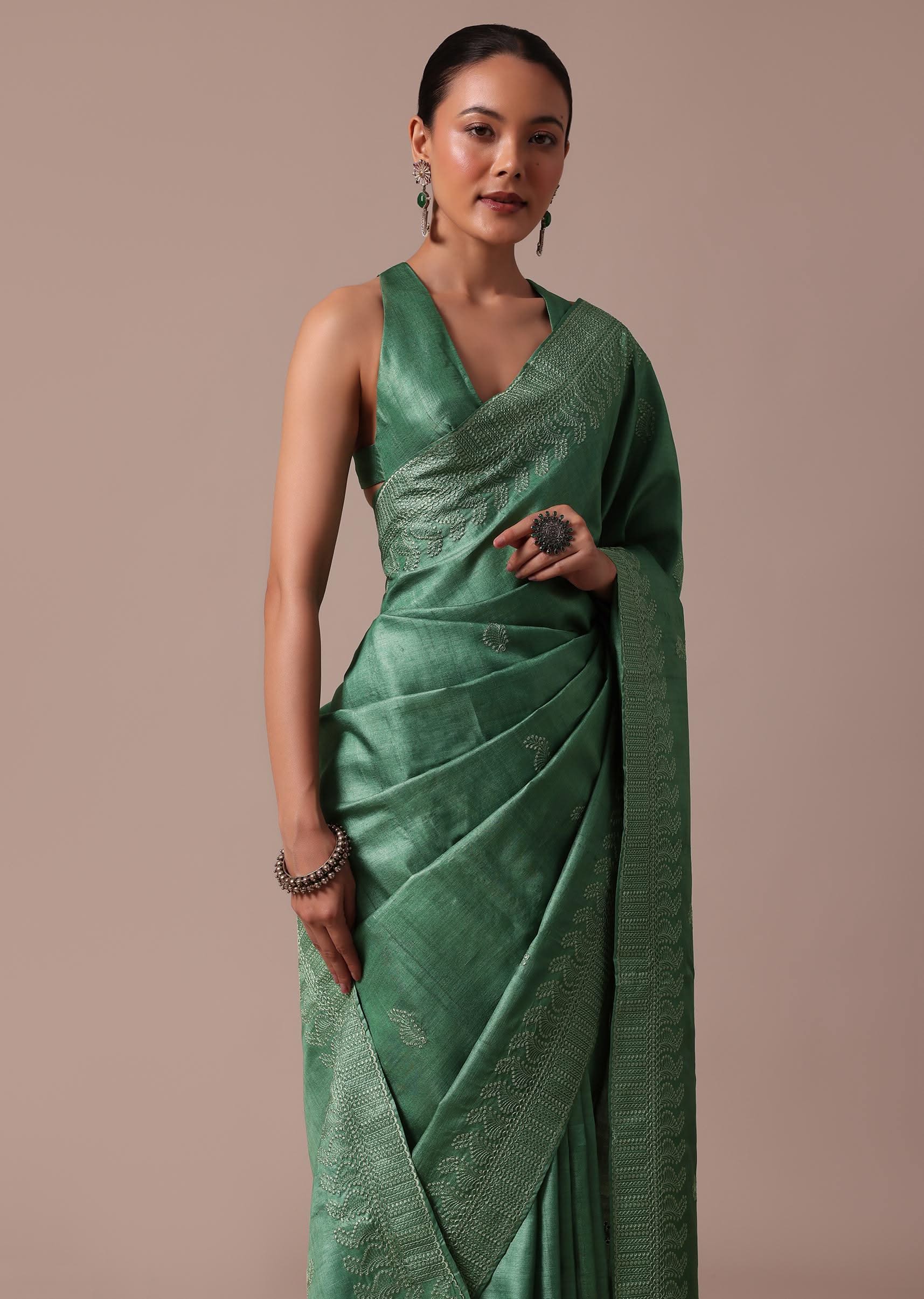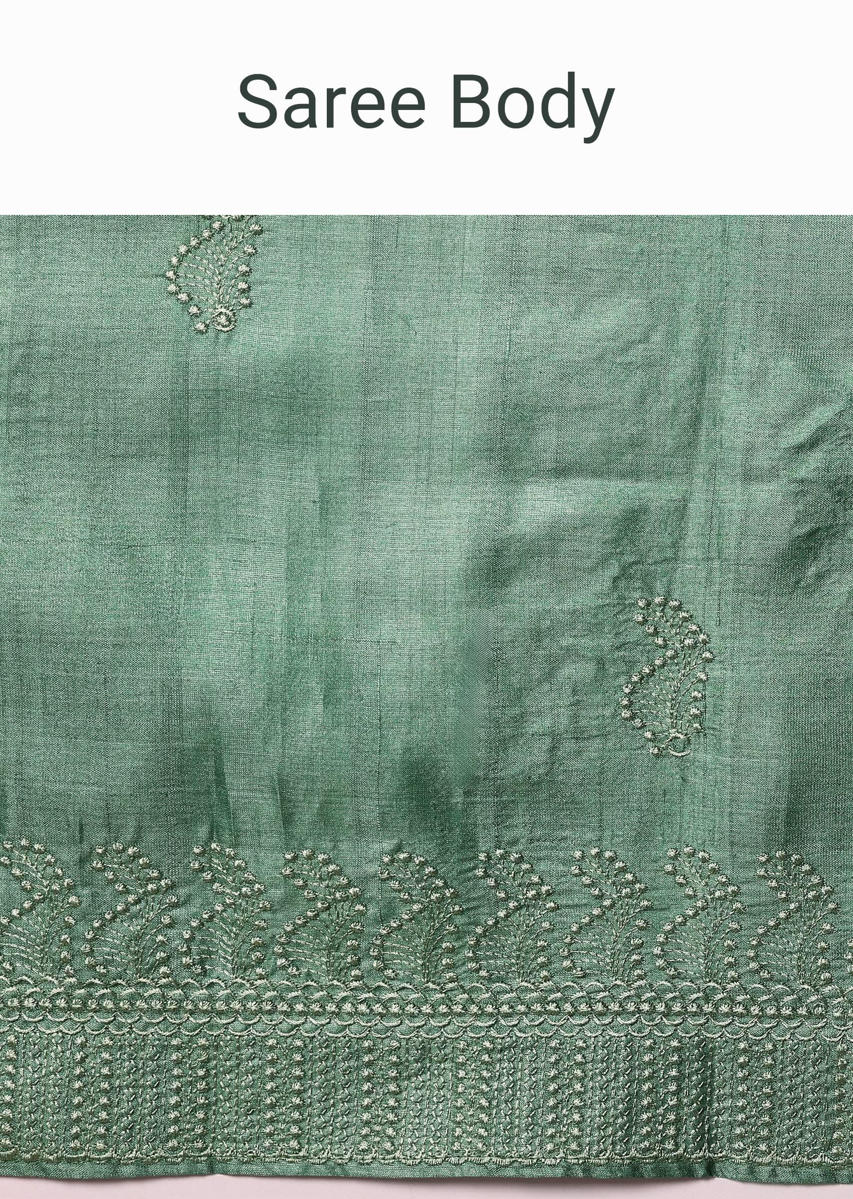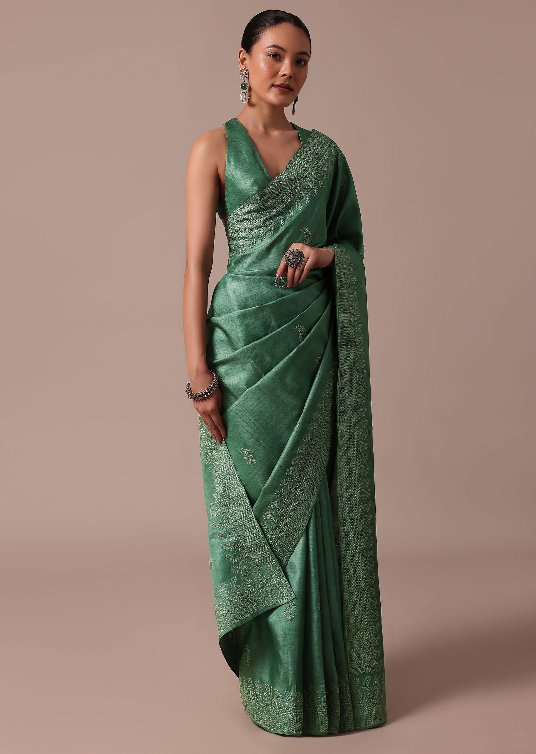 Step into the spotlight in our mesmerizing pista green saree, tailored for your upcoming wedding festivities. Crafted from luxurious tissue silk fabric, it boasts intricate resham work adorning the border, exuding grace and versatility. Paired with an unstitched blouse, this saree offers boundless styling options. Awarded as the Most Trusted Brand, we're delivering styles you love, just as promised.
