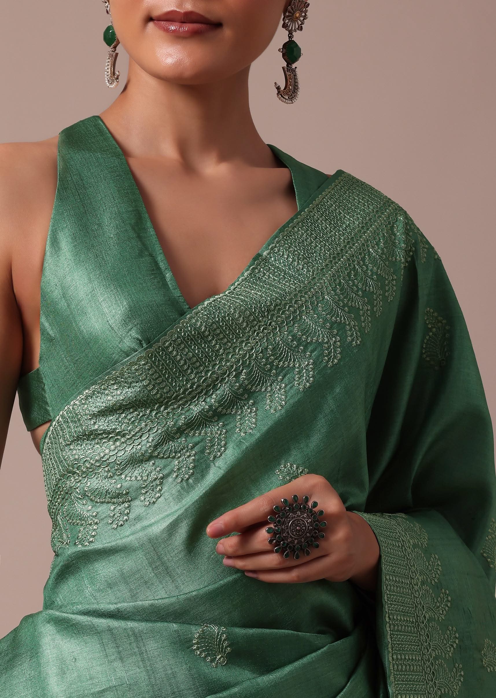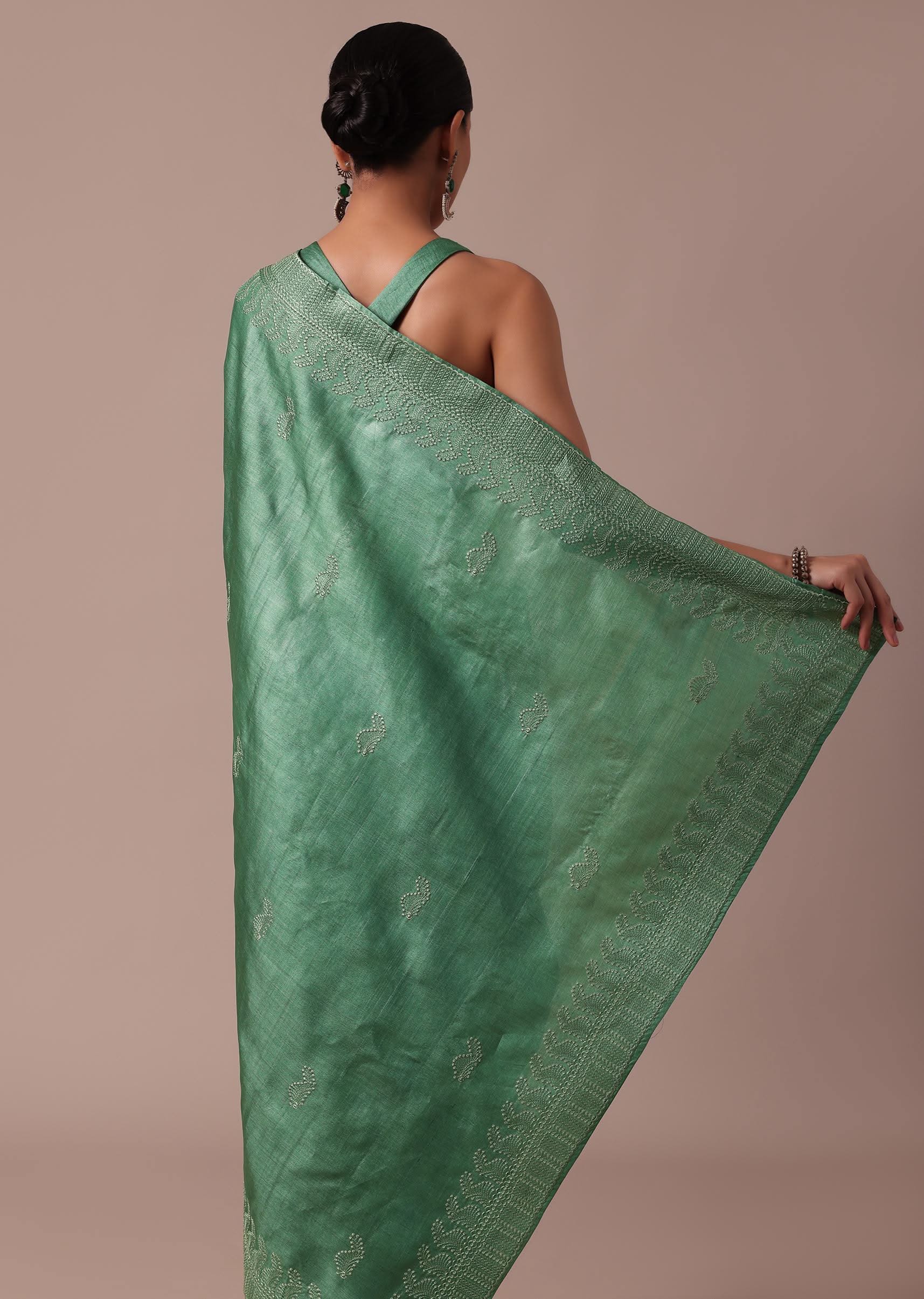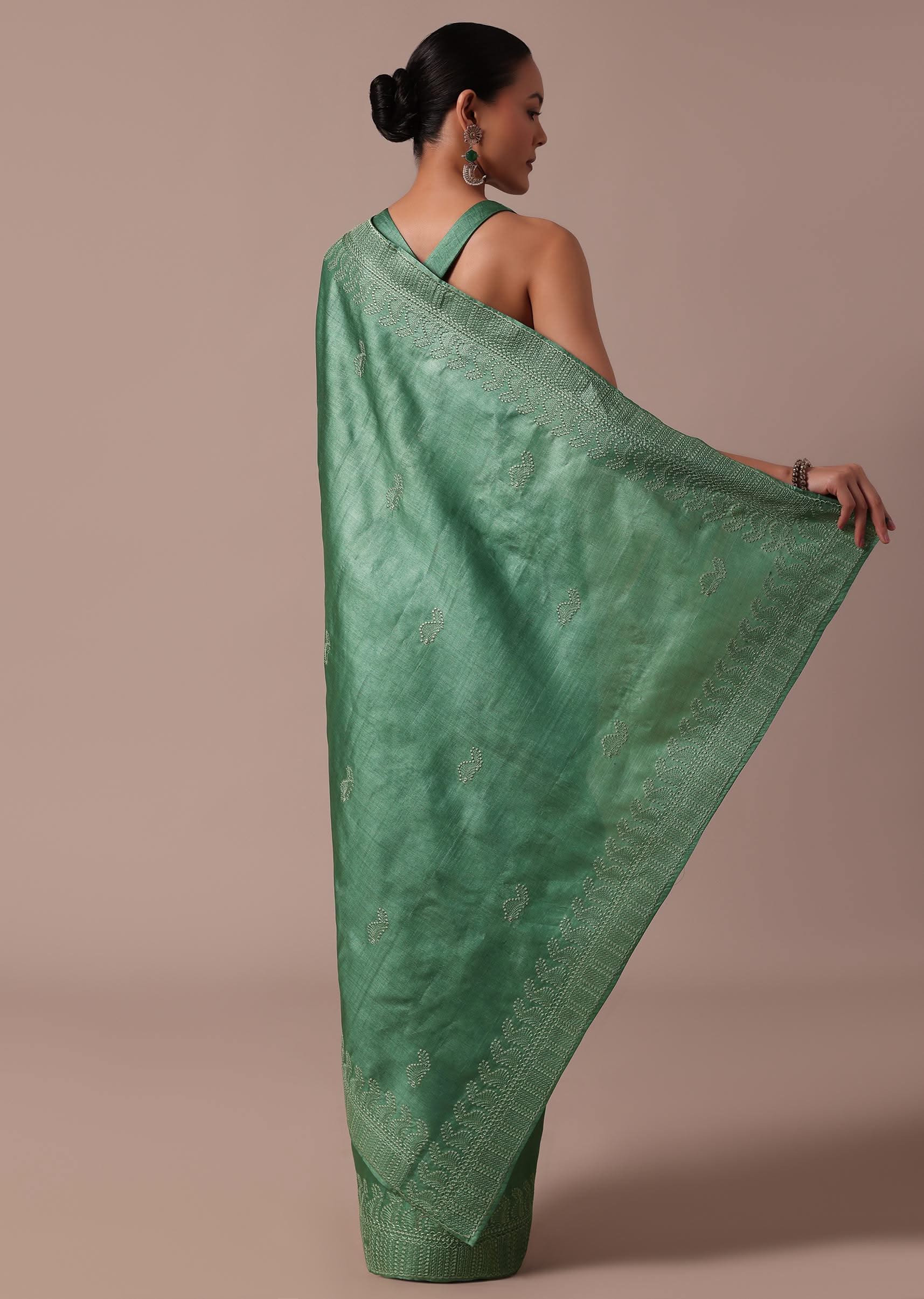 Step into the spotlight in our mesmerizing pista green saree, tailored for your upcoming wedding festivities. Crafted from luxurious tissue silk fabric, it boasts intricate resham work adorning the border, exuding grace and versatility. Paired with an unstitched blouse, this saree offers boundless styling options. Awarded as the Most Trusted Brand, we're delivering styles you love, just as promised.