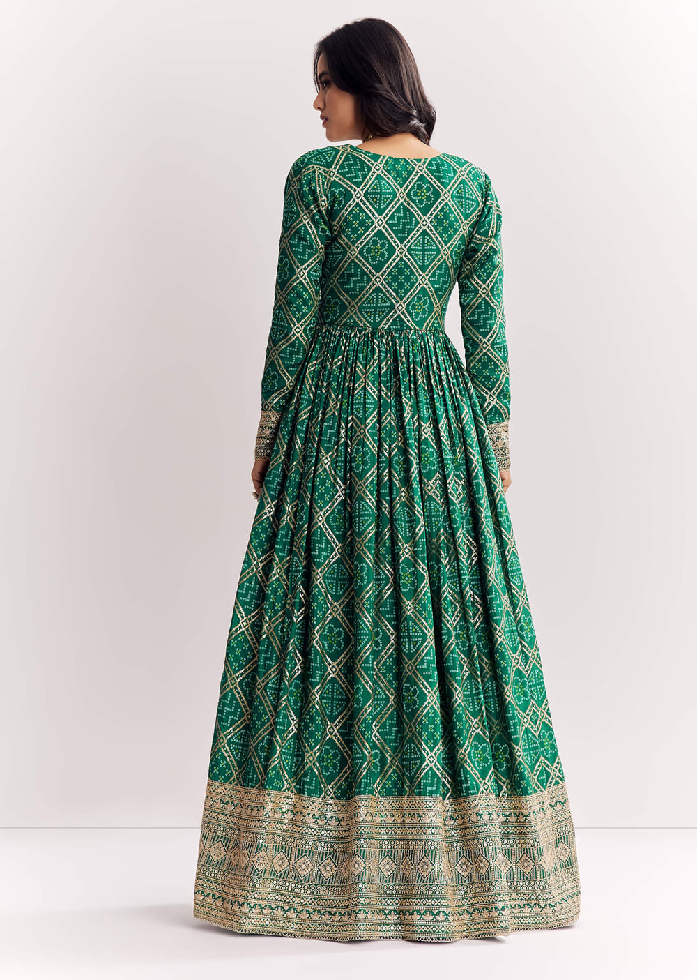 Grace meets heritage in this green weave silk blouse layered with a zari detailed bandhani print jacket, made for glowing sangeet moments. Awarded as the Most Trusted Brand, we're delivering styles you love, just as promised.