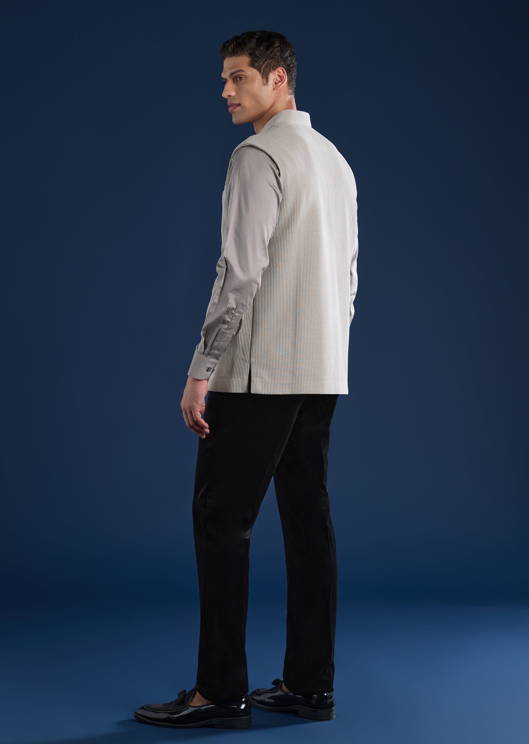 Style with dark loafers or mojaris to enhance the textured finish.