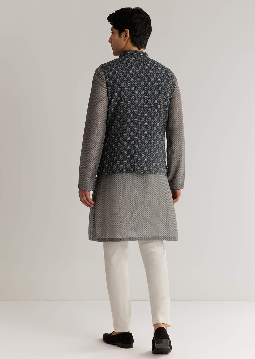 Grey Silk Cutdana Sequins Kurta Jacket Set