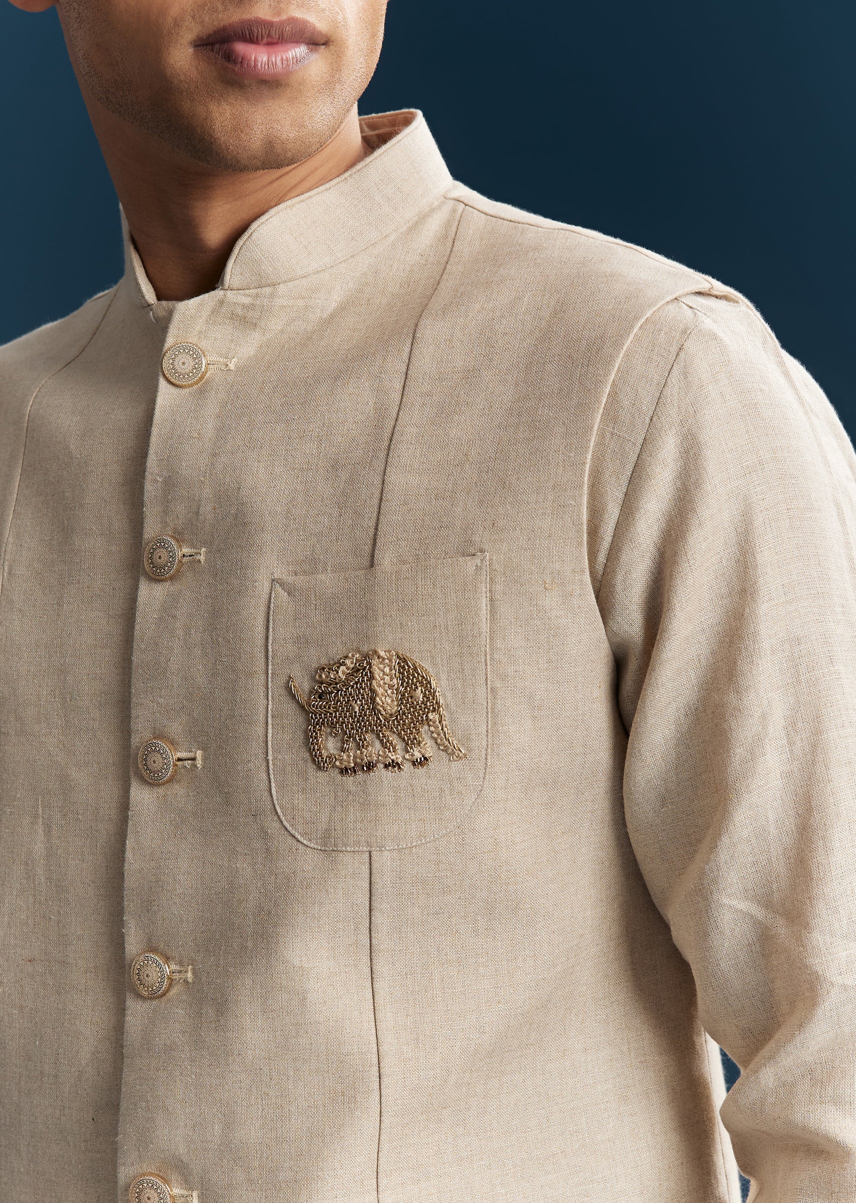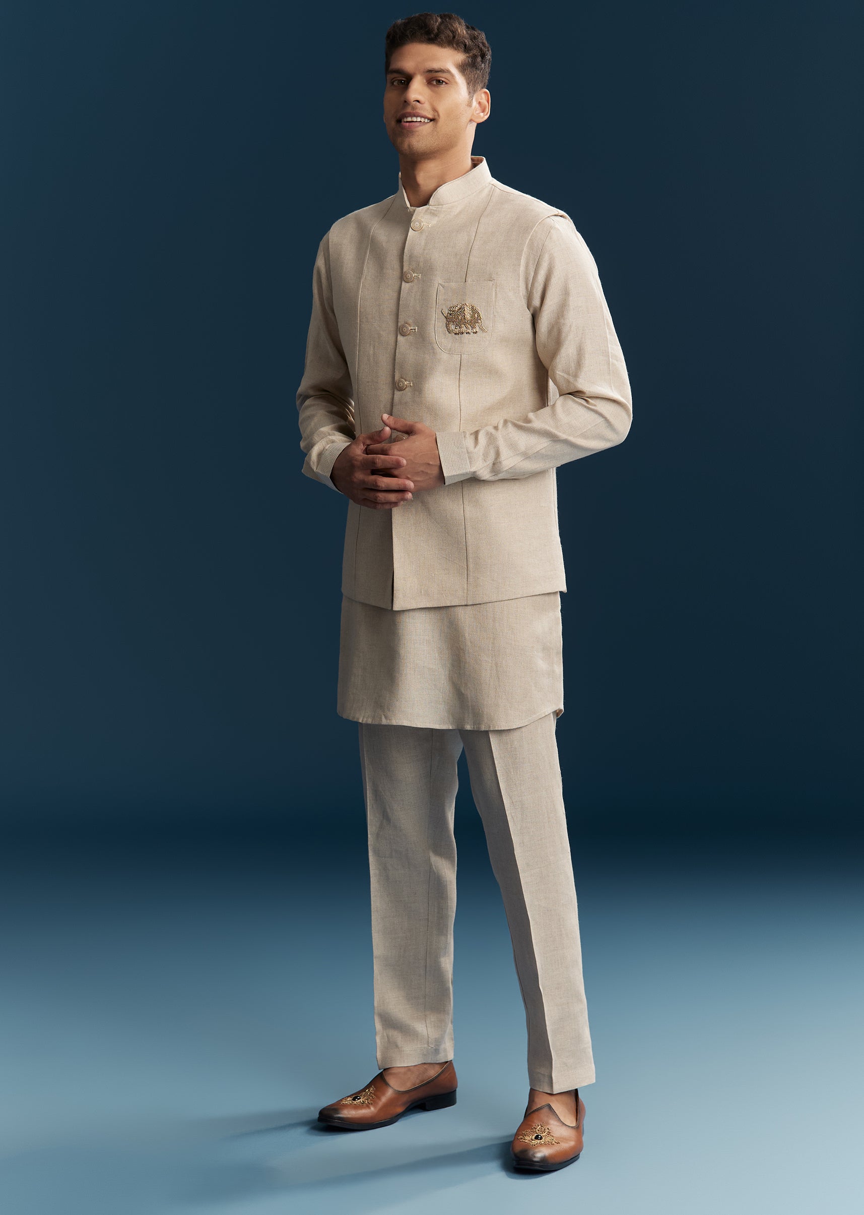 Grey Silk Kurta Jacket Set With Minimal Thread Detail