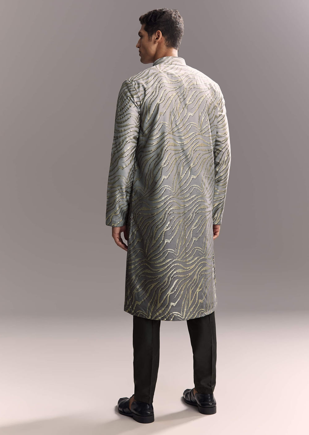 Grey Silk Printed Kurta Set For Men