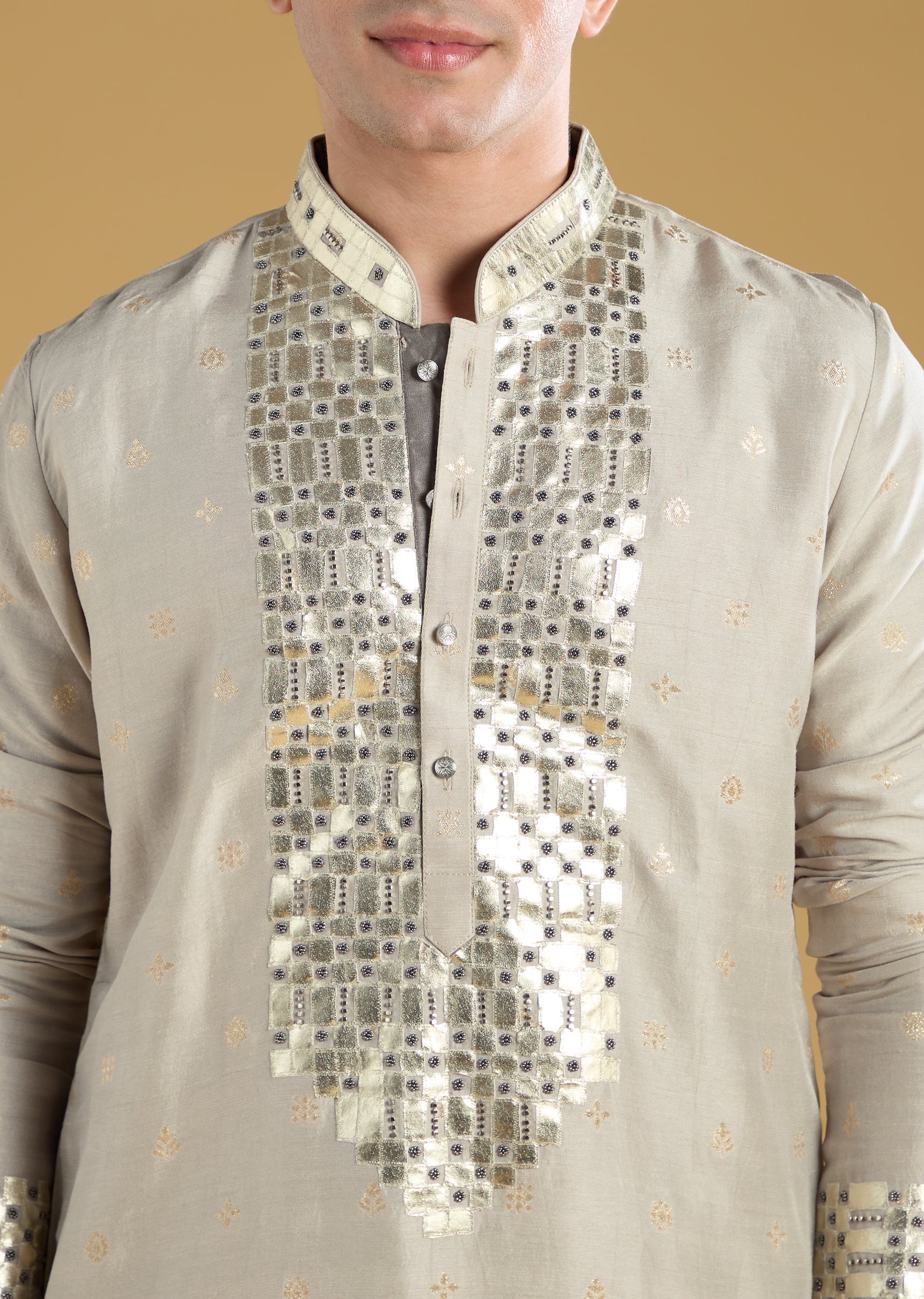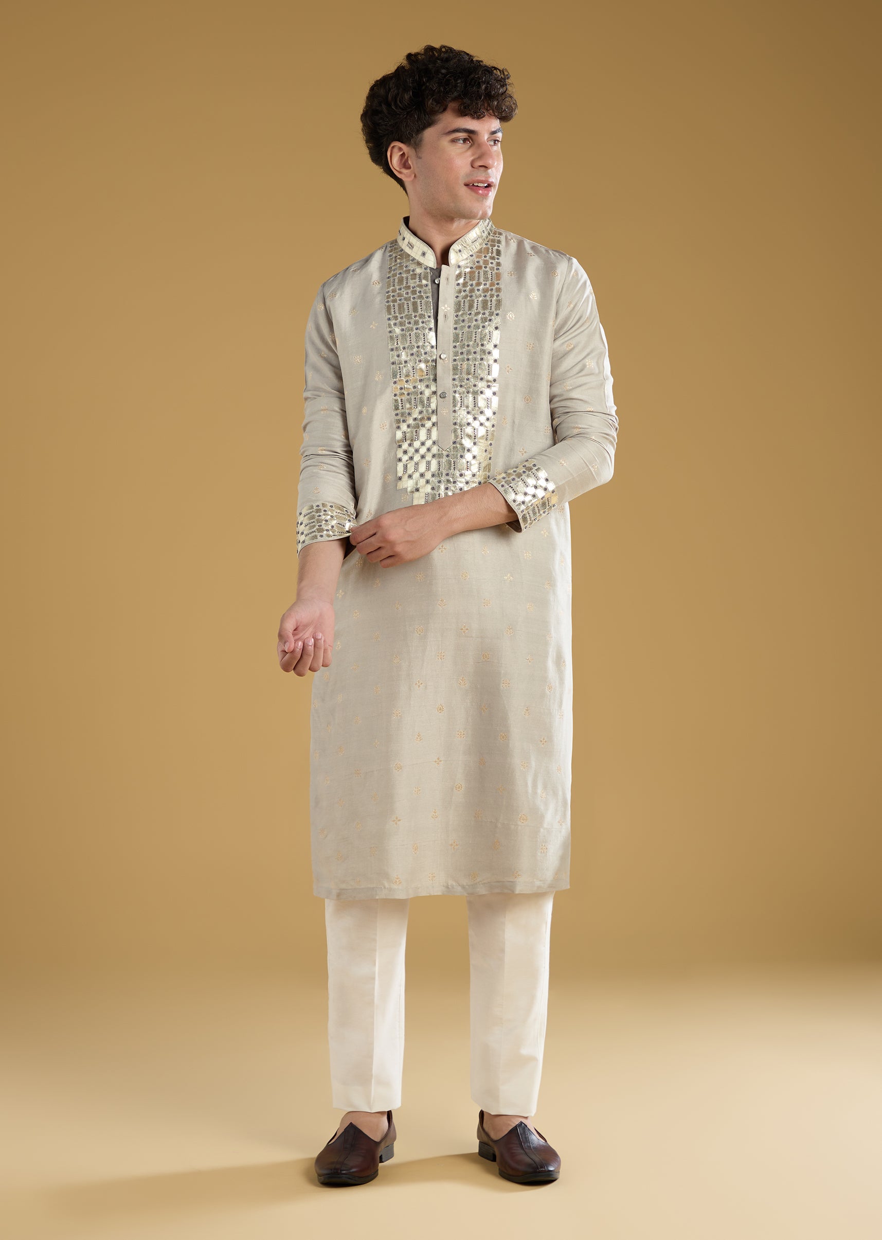 Grey Silk Yoke Embellished Kurta Set