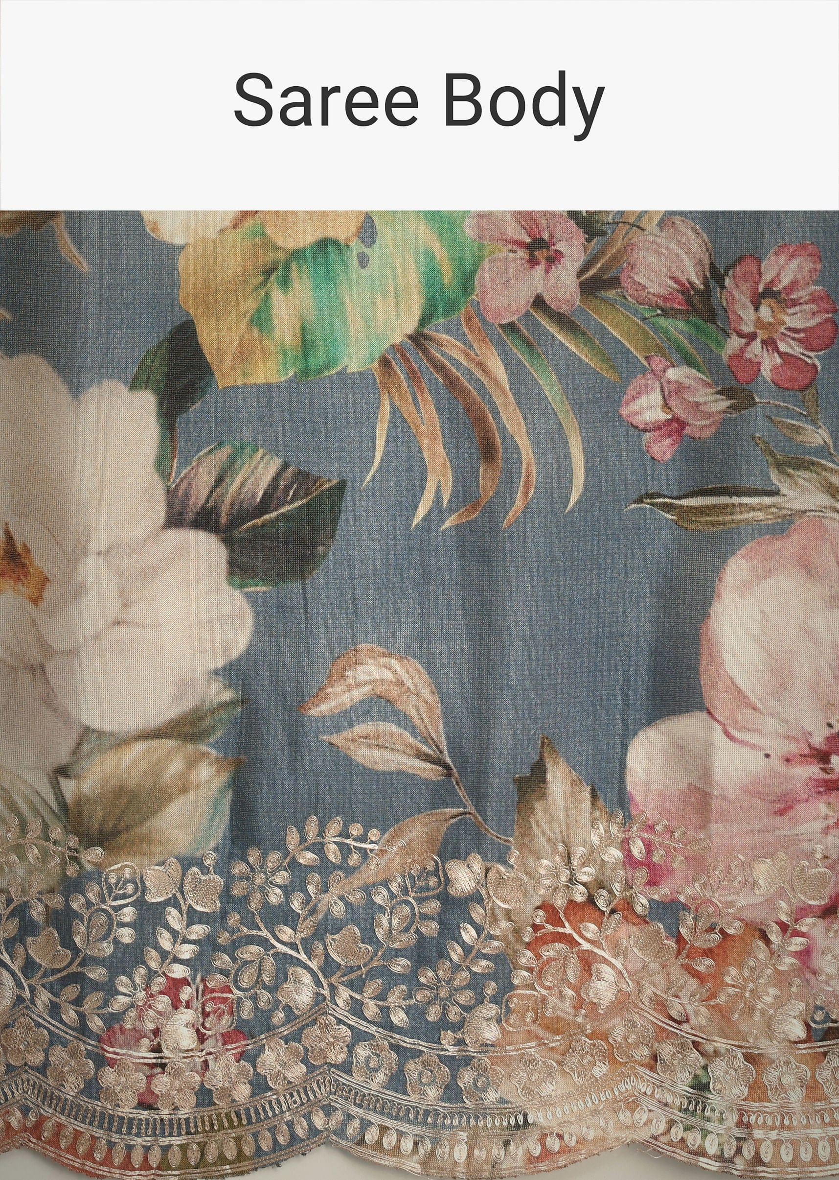 Grey Tissue Muslin Digital Printed Saree With Pitta Work On Border