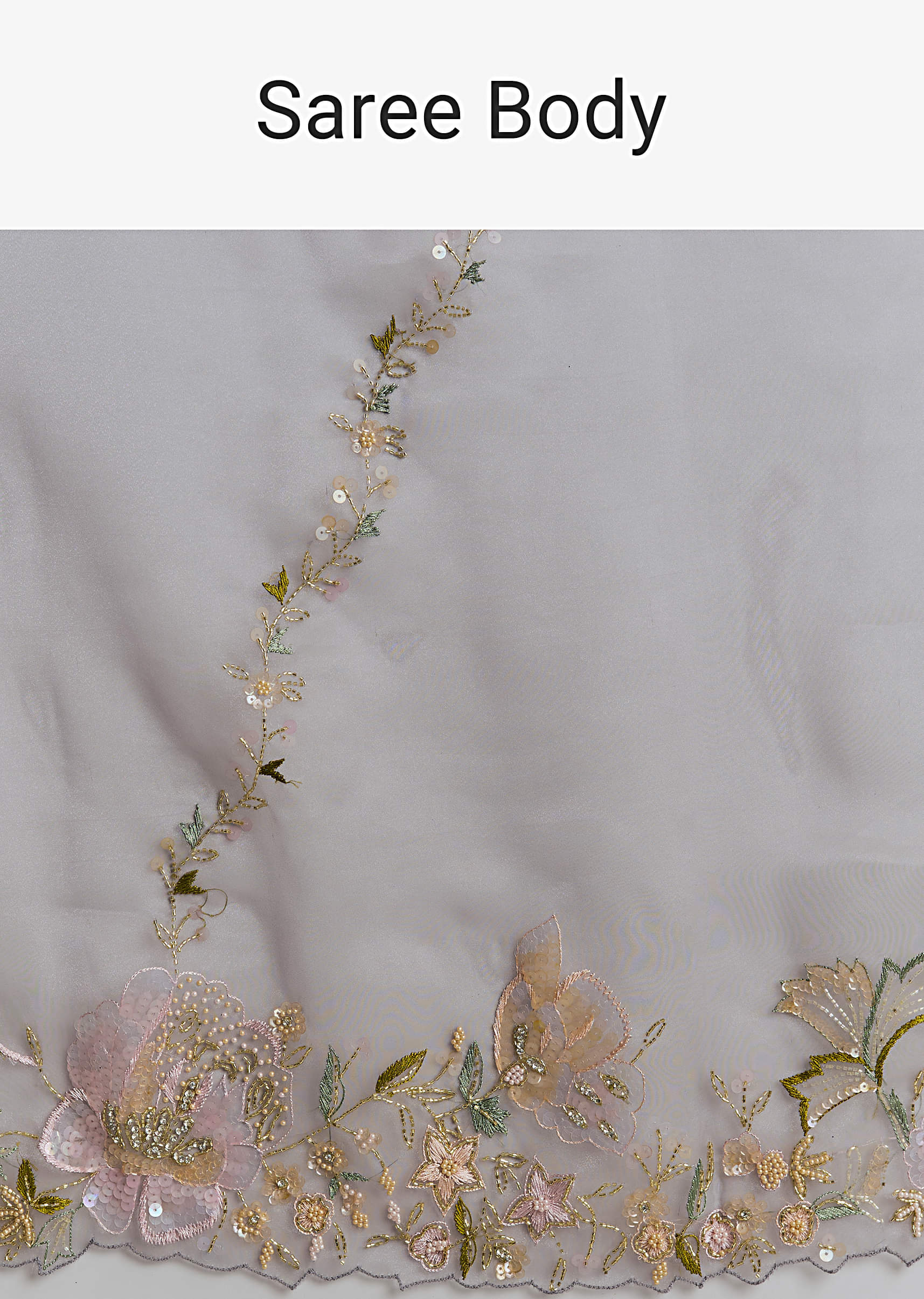Grey Tissue Saree With Resham And Moti Embroidery