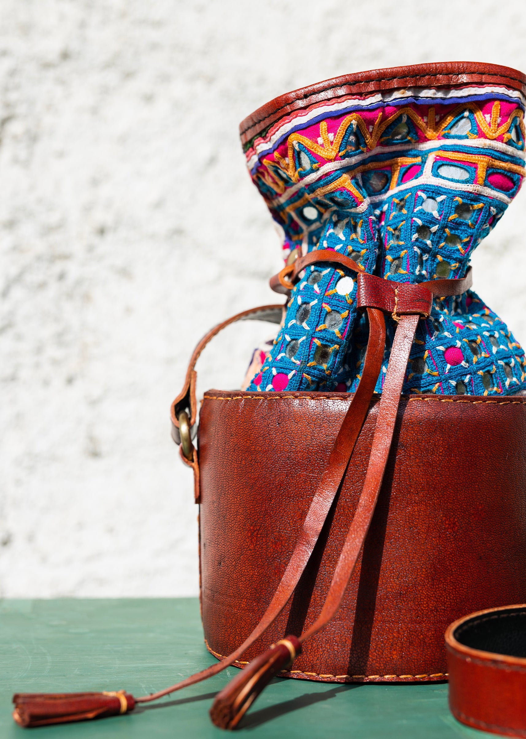 Hand-embroidered and handcrafted leather bags that are truly unique and designed for everyone. Made in a potli/pouch-inspired style, each bag features authentic Kutchi traditional embroidery on the top — with... More Product Details