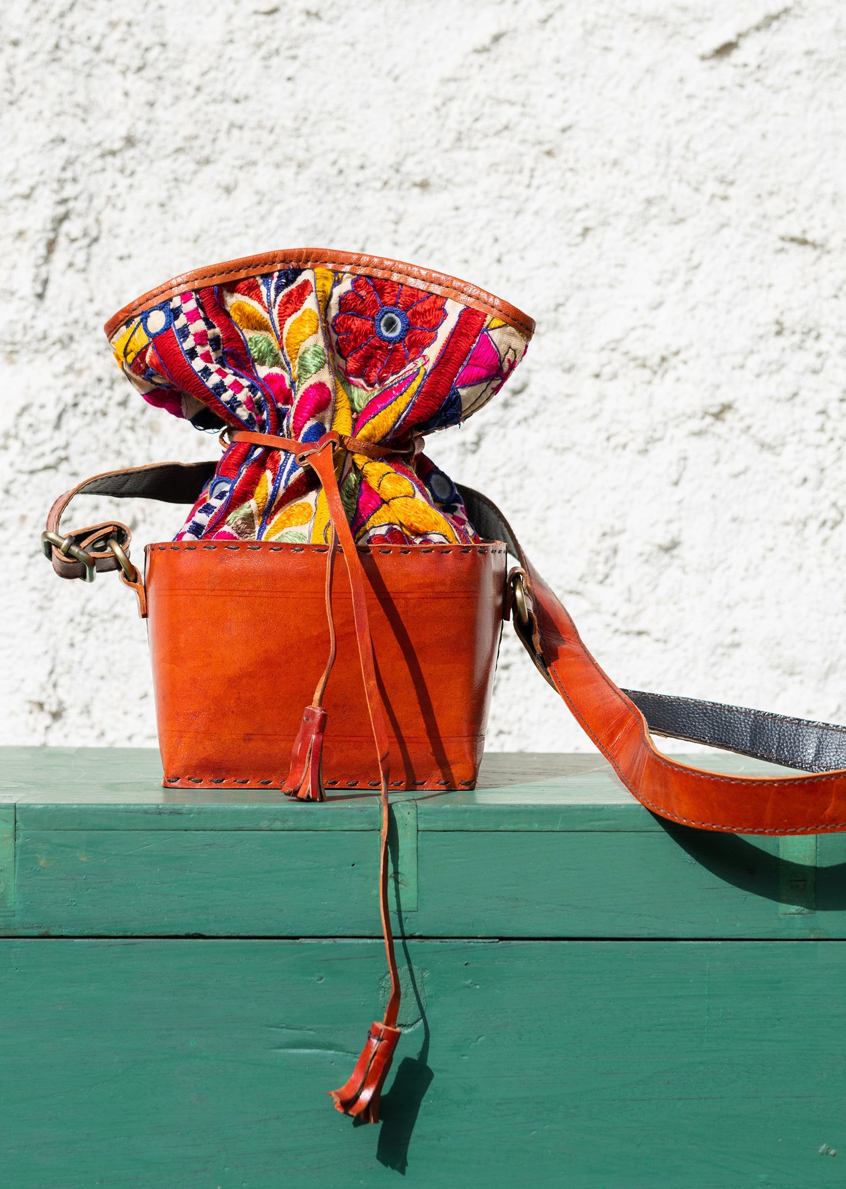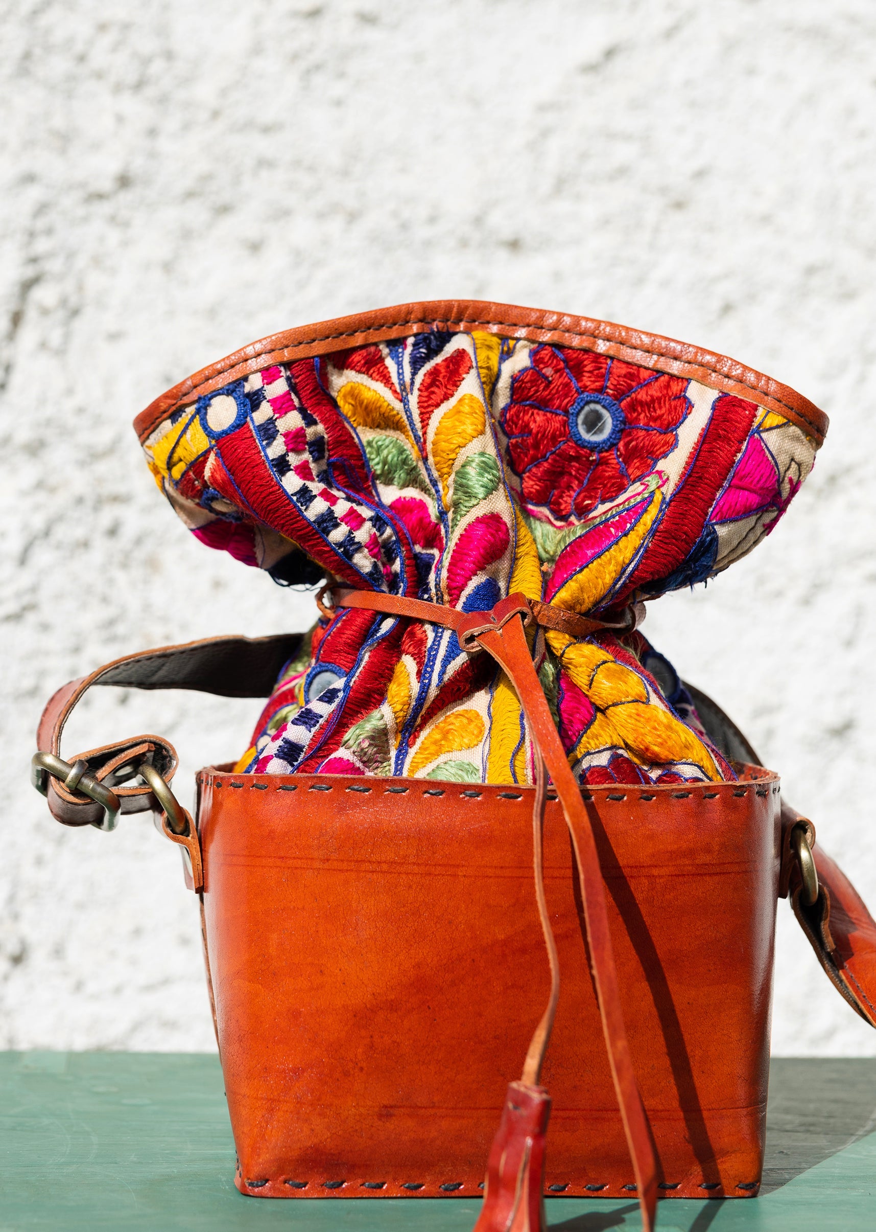 Hand-embroidered and handcrafted leather bags that are completely unique and designed for everyone. Created in a potli/pouch-inspired shape, each piece features colourful Kutchi traditional embroidery on the top — with... More Product Details