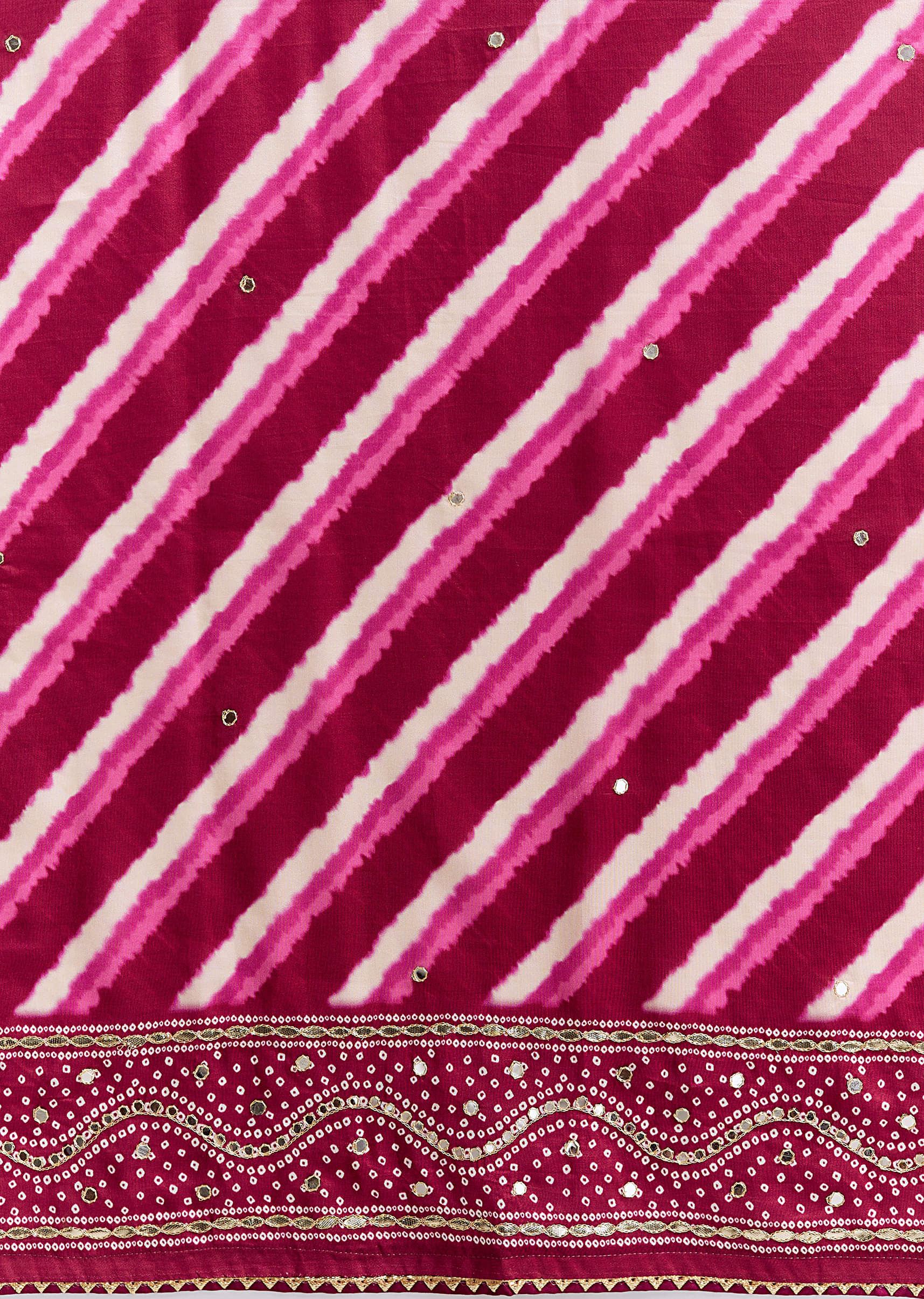 Hot Pink Silk Printed Saree With Lehariya And Bandhani Gota Border