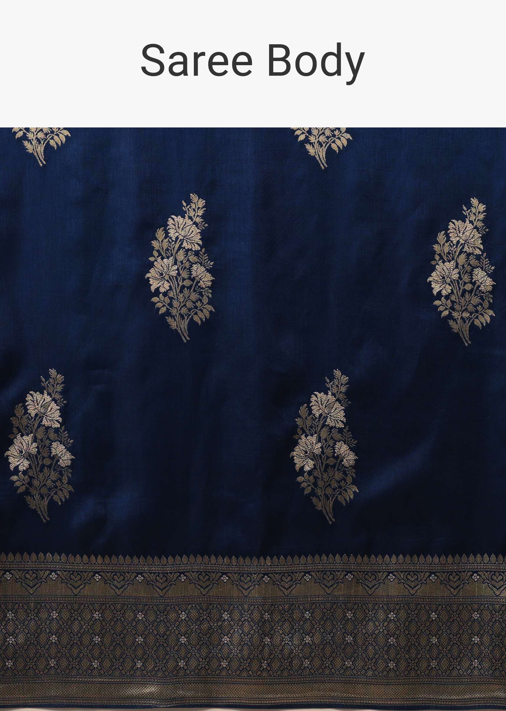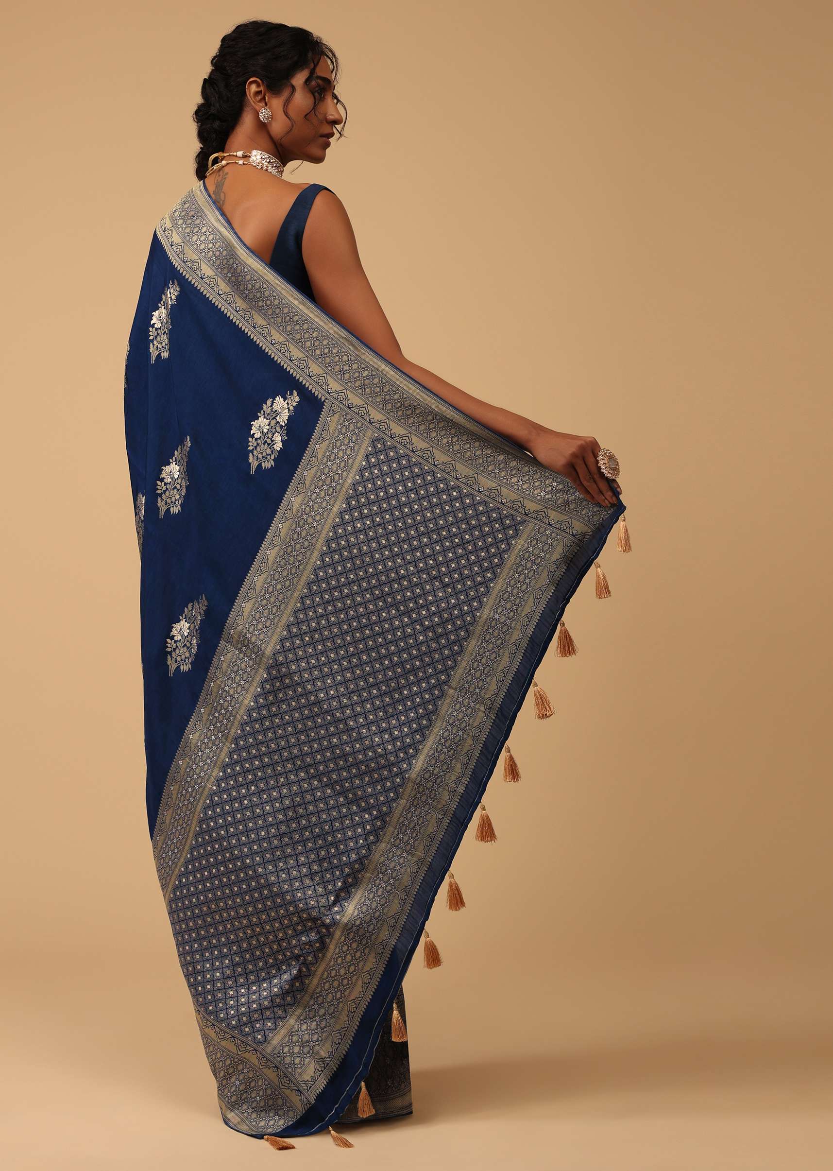 Indigo Blue Saree In Dola Silk With Embroidered Floral Buttas