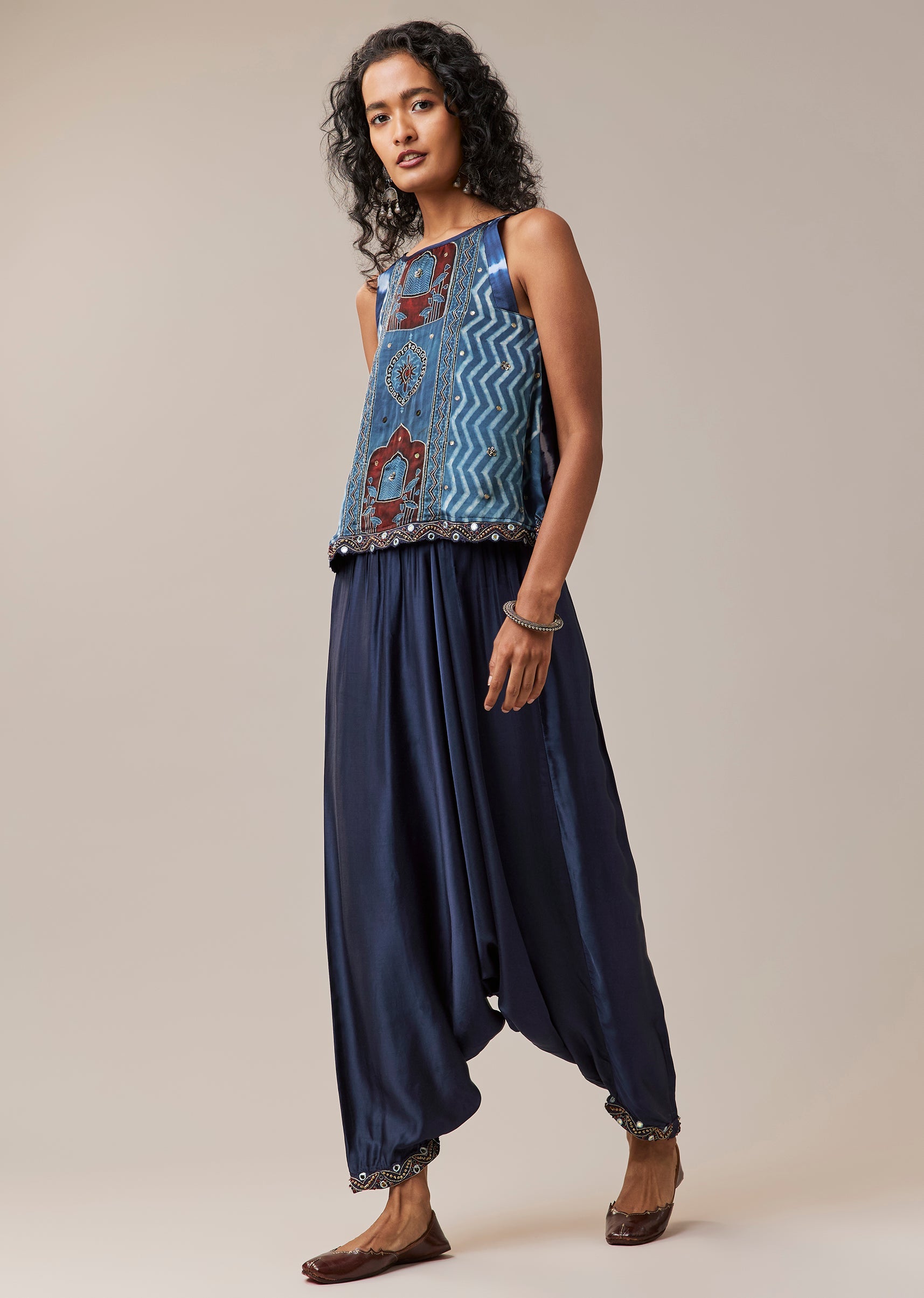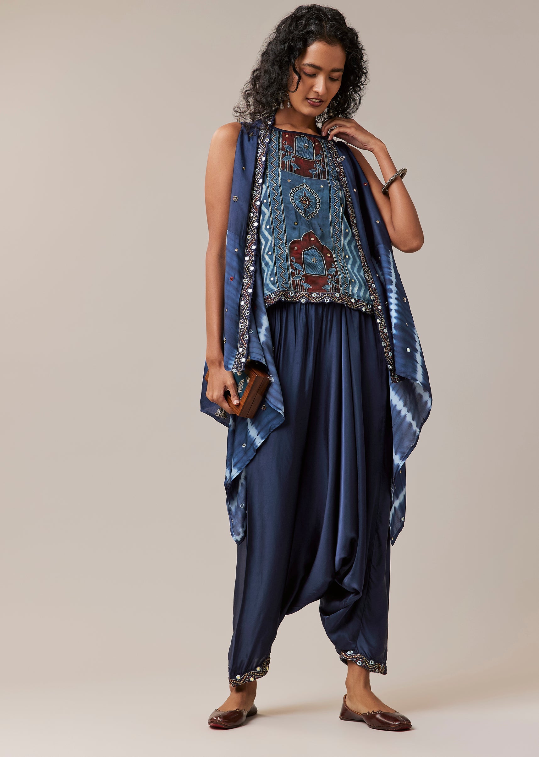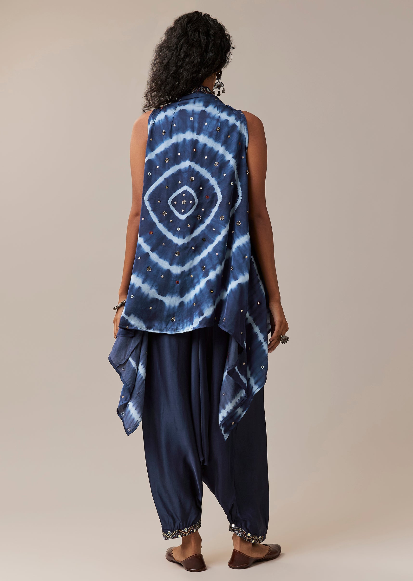 Indigo Hand Dyed Leheriya Jacket and Cowl Pant Set