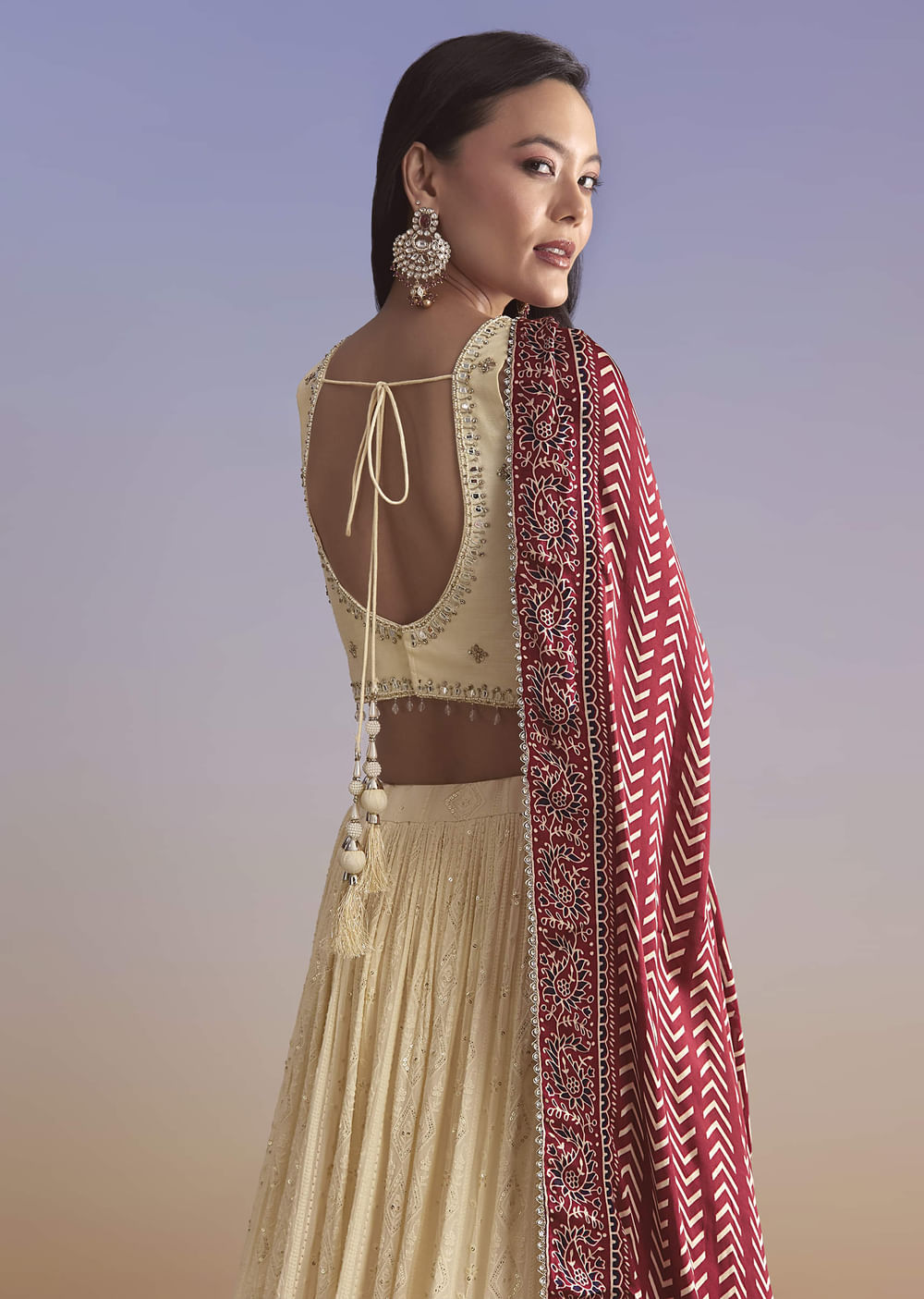 Ivory Georgette Bridesmaid Lehenga With Lucknowi Chikankari And Mirror Work