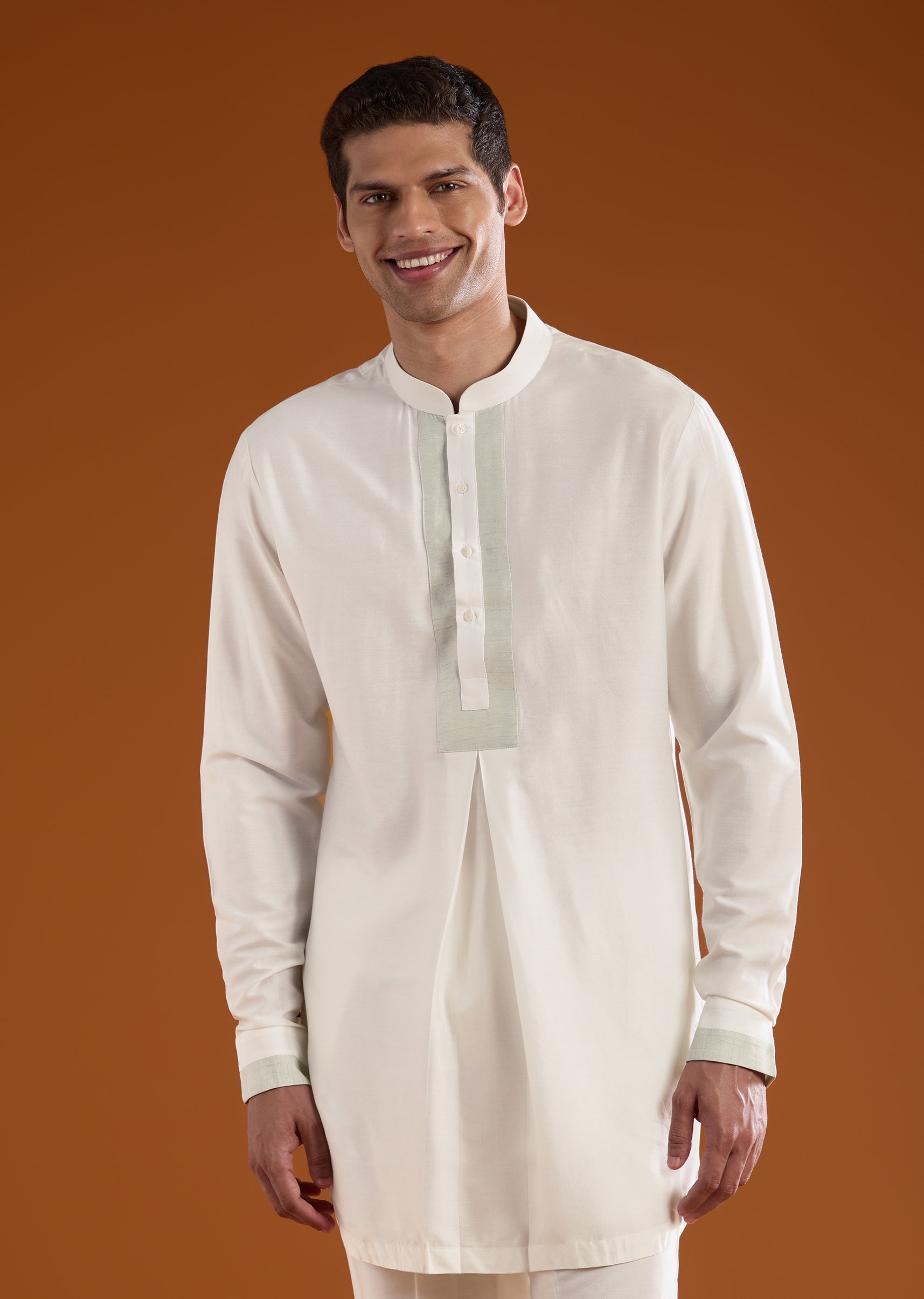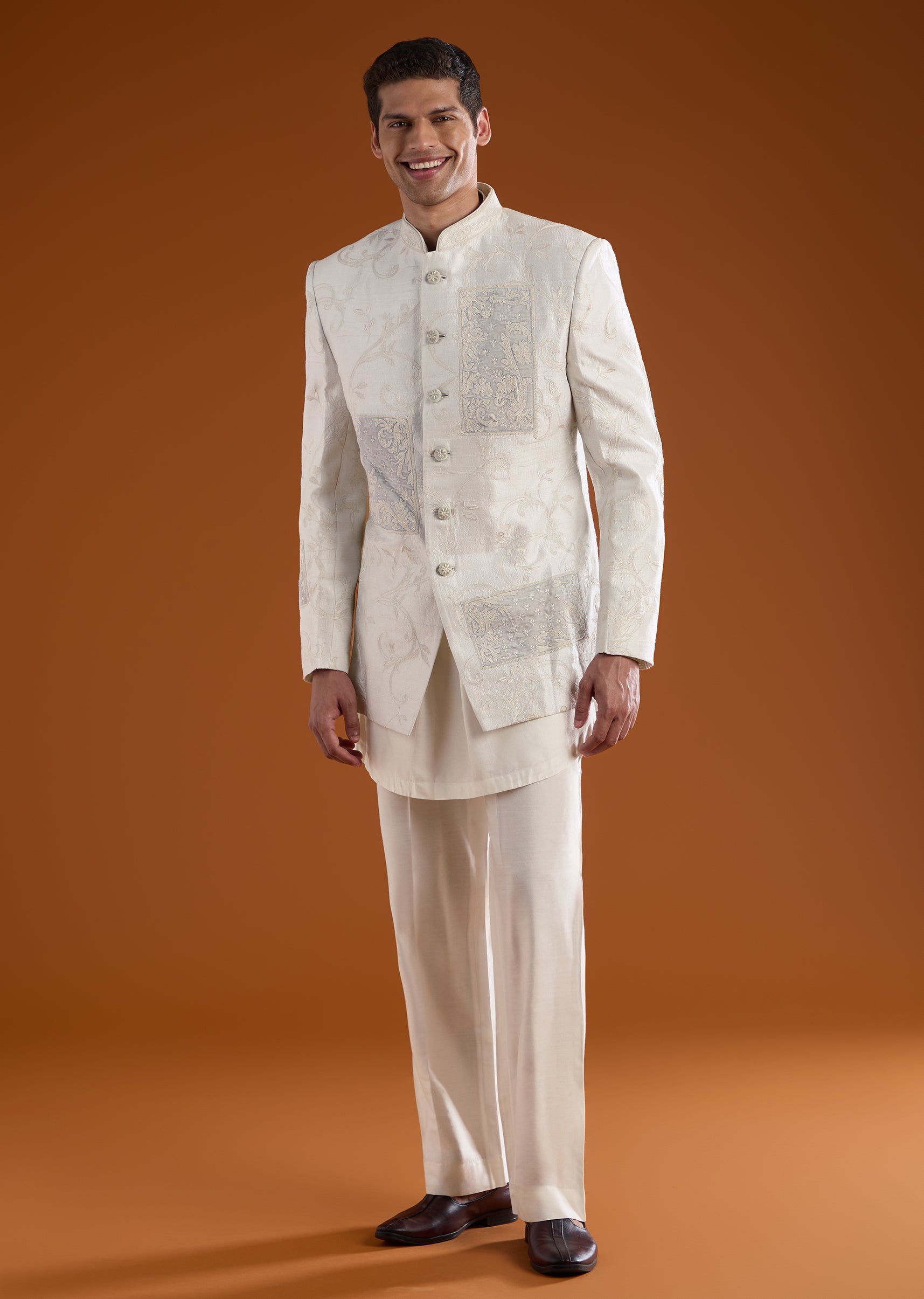 Ivory Rawsilk Indowestern Kurta Set with Dori Embroidery