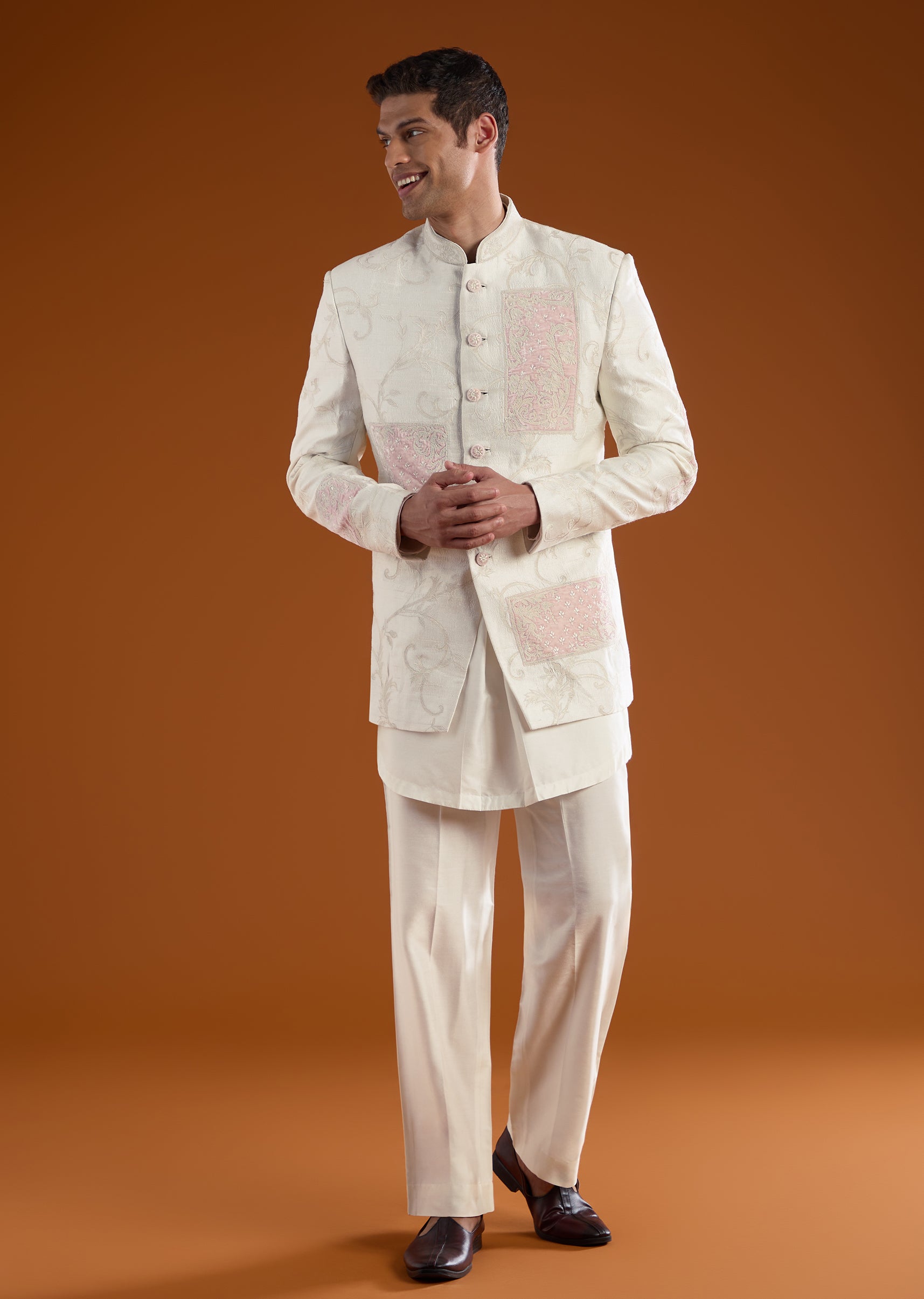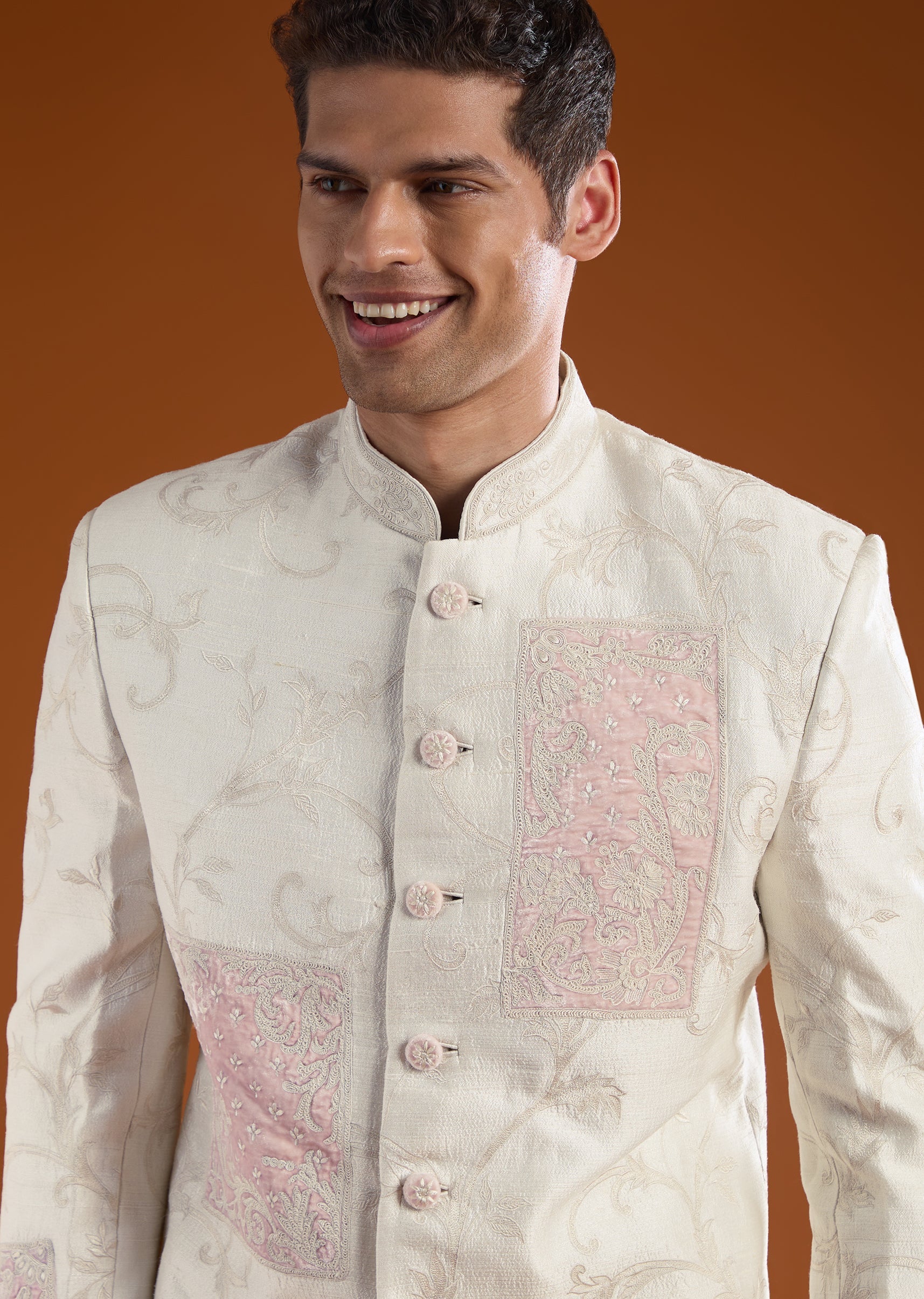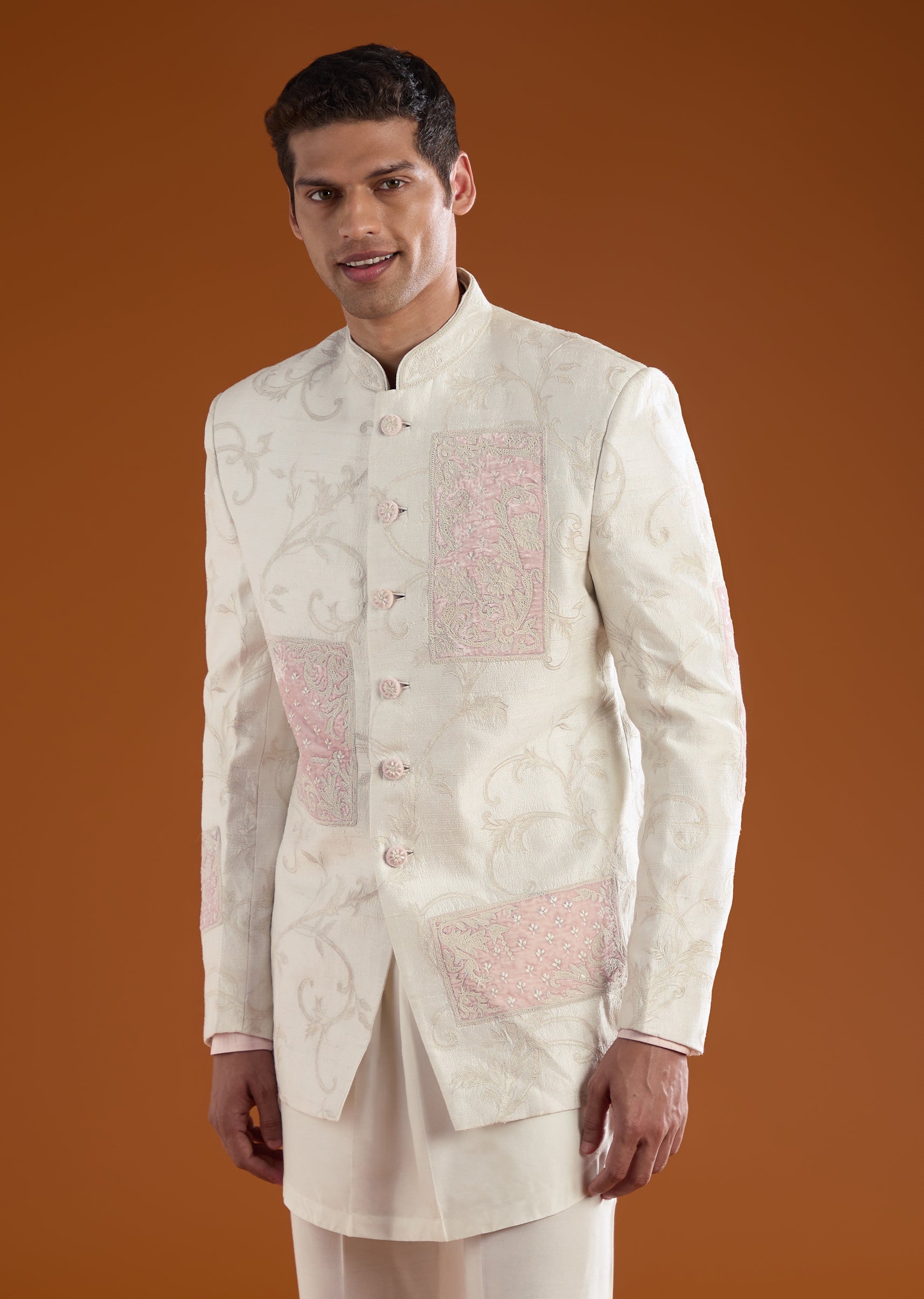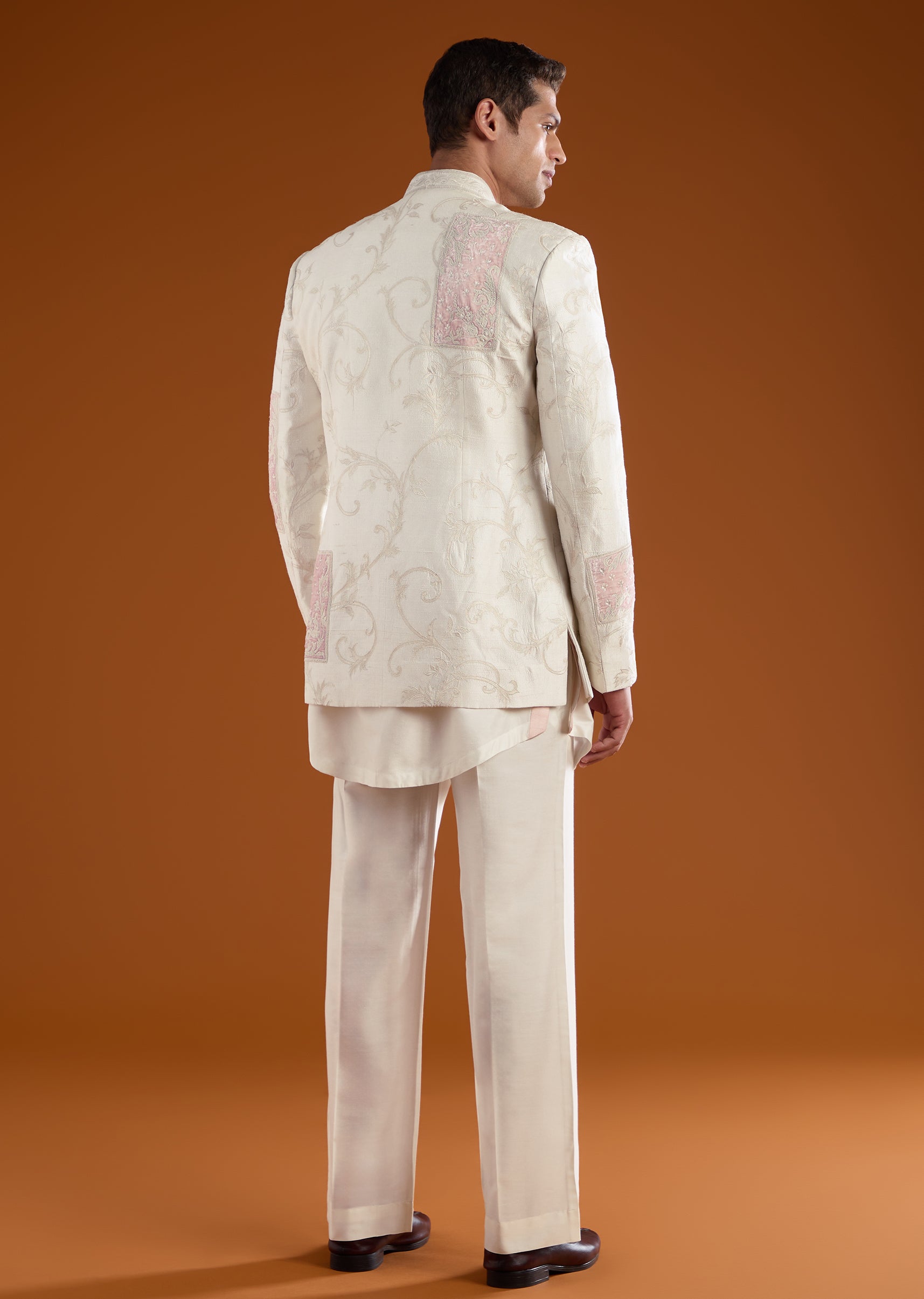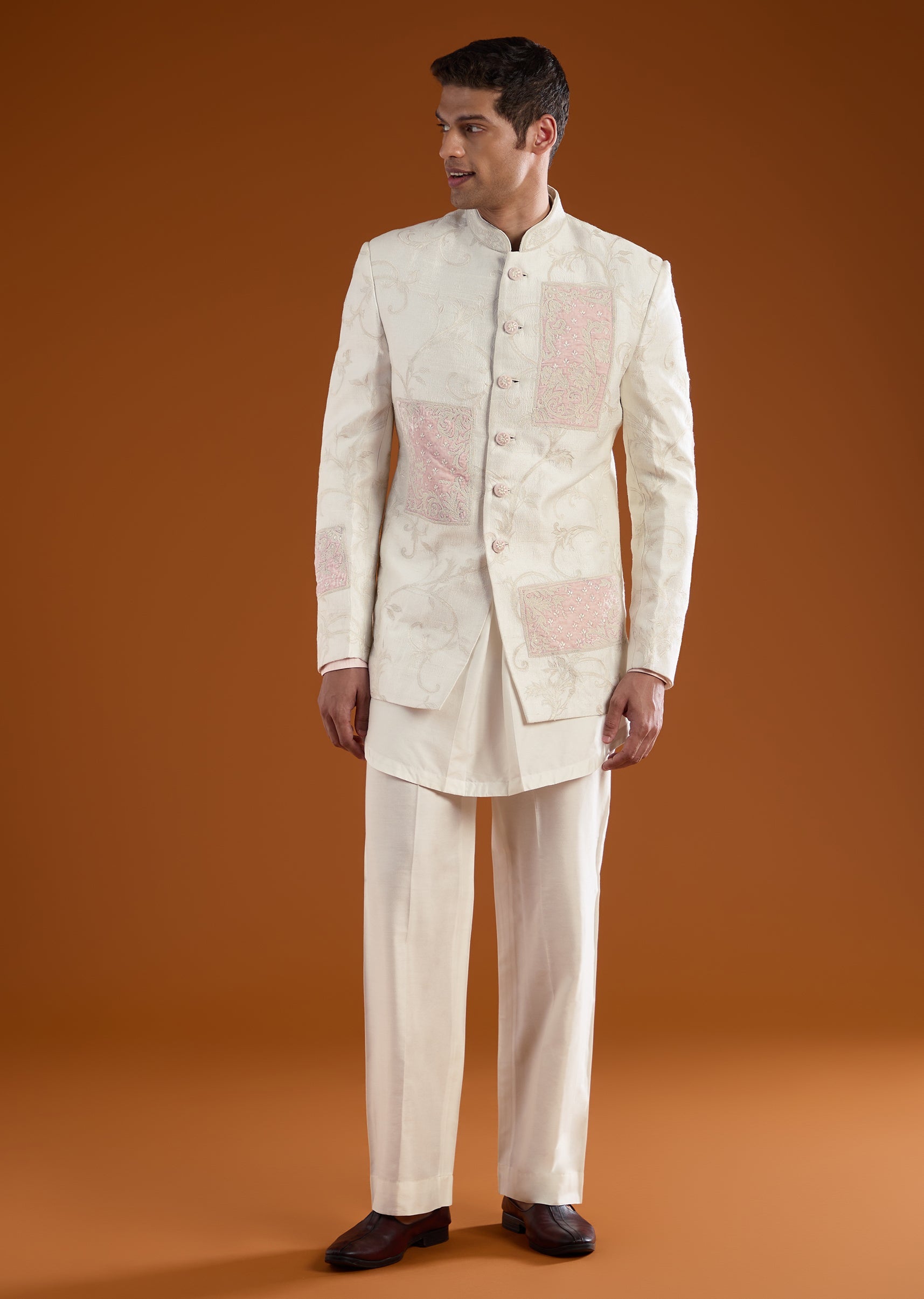 Ivory Rawsilk Indowestern Kurta Set with Dori Work