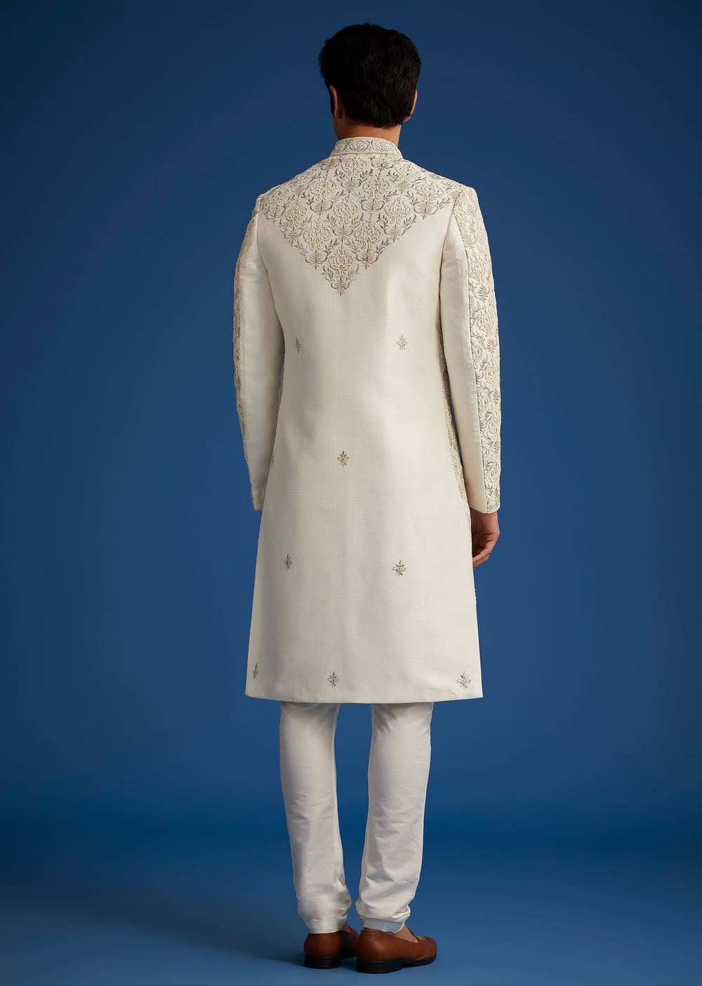 Ivory Silk Sherwani With Resham Zari And Zardosi Work