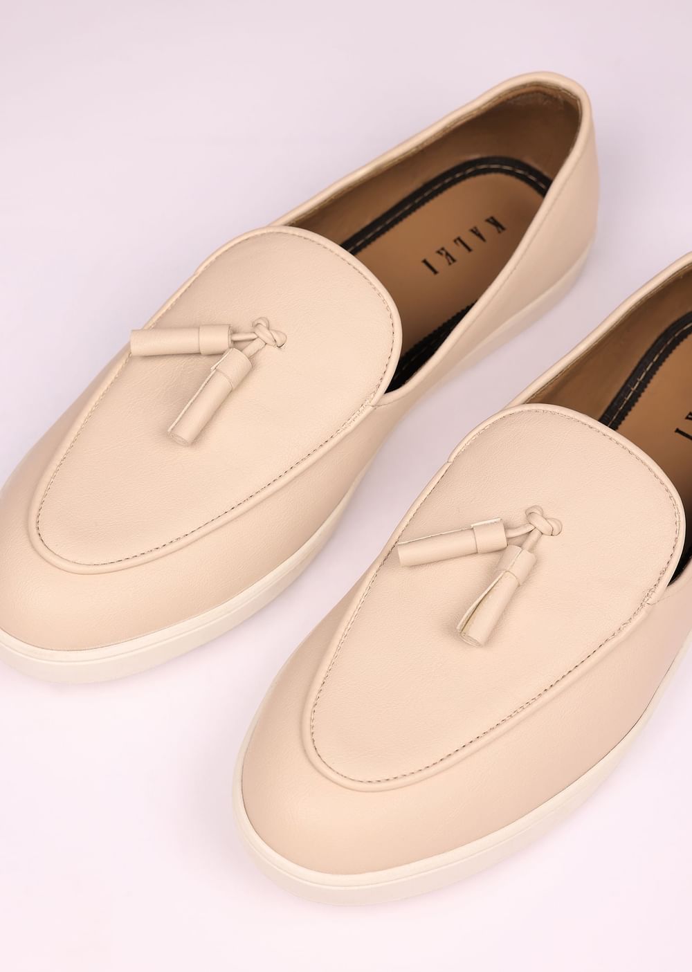 Pair your Ivory Vegan Leather Tassel Jutti with a tailored suit or a chic blazer and trousers.