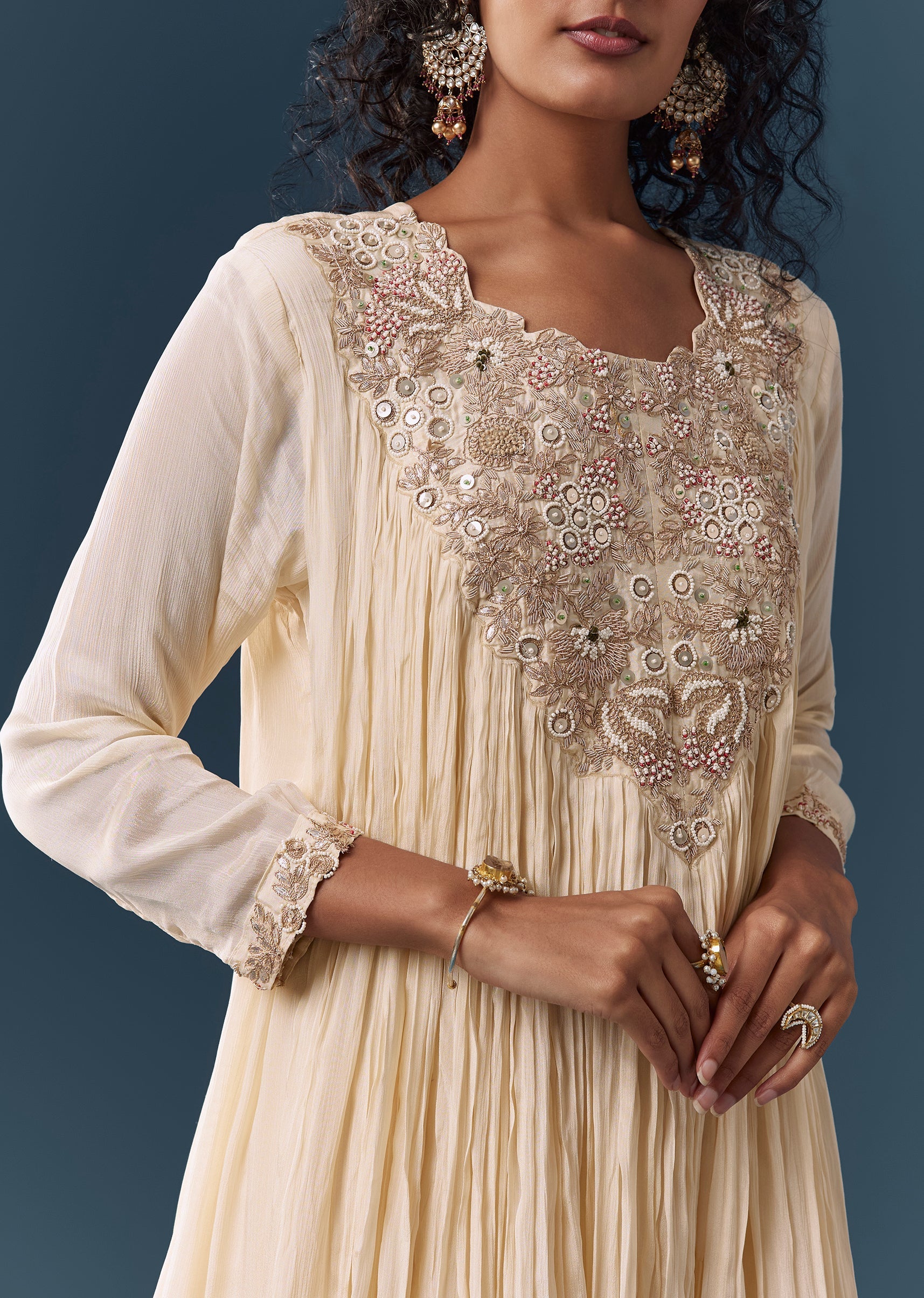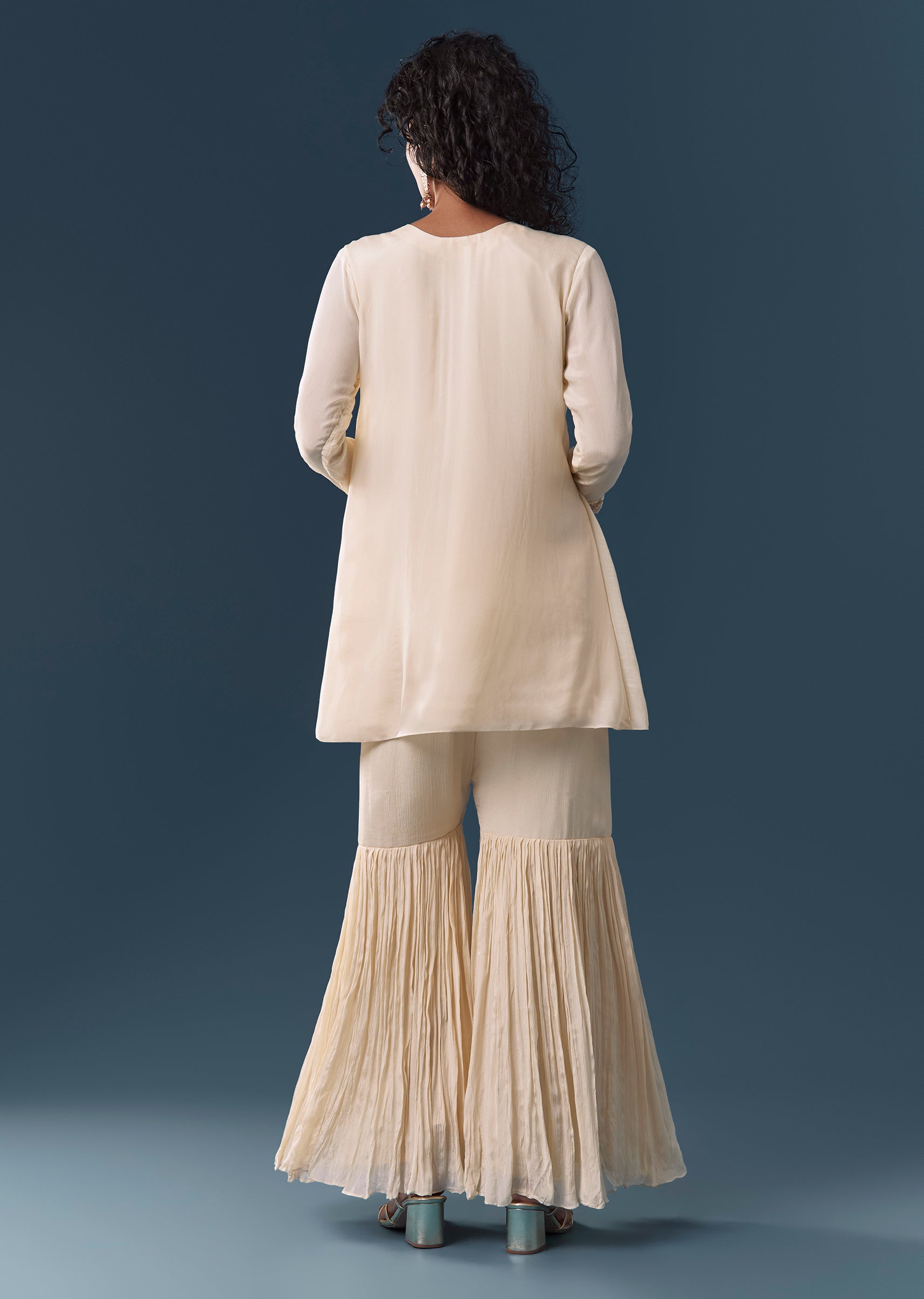 Ivory Zardosi & Moti Cape-Style Sharara Set