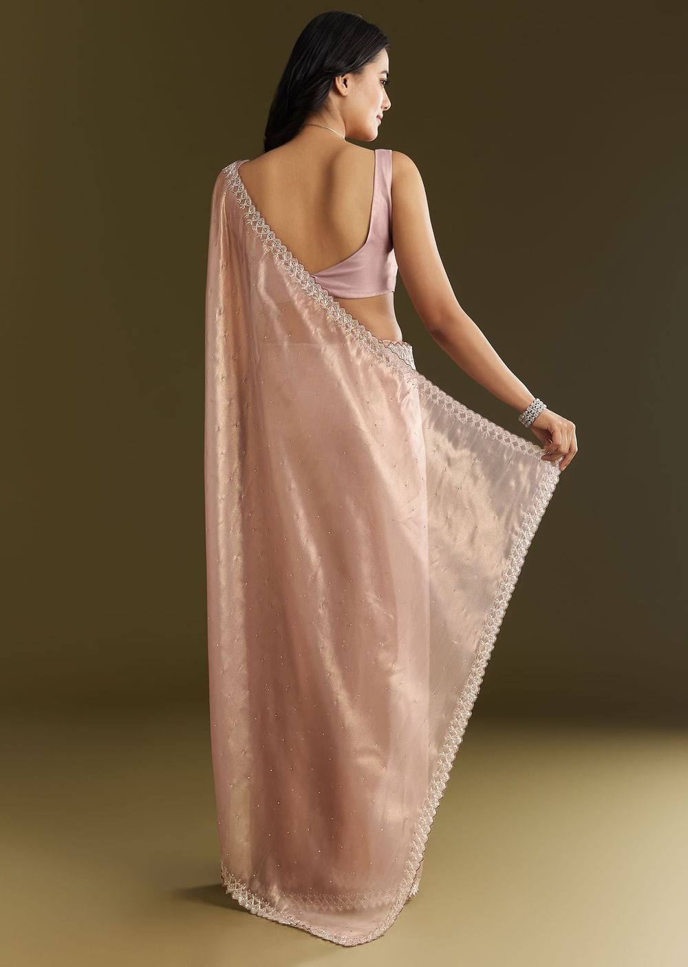 Lavender Tissue Saree With All Over Stone Embellishment And Cutdana Scallop Border