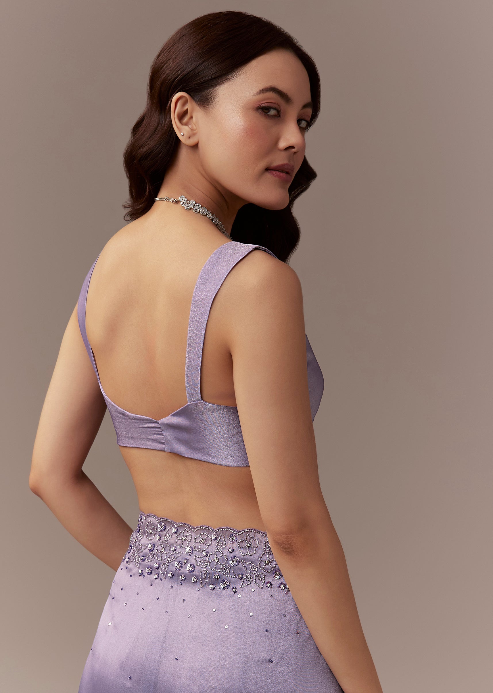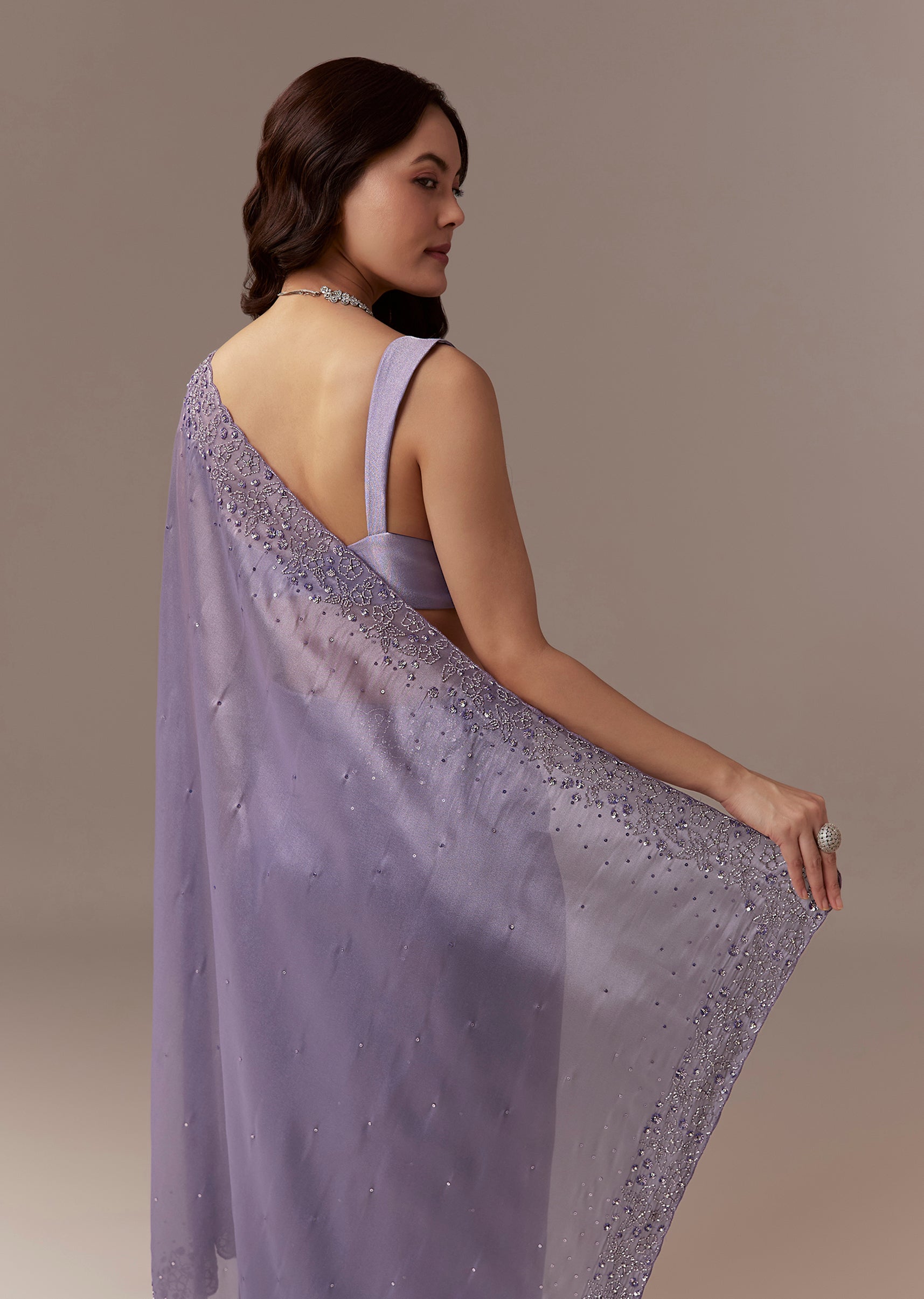 Lavender Tissue Saree With Cutdana And Sequin Embroidery