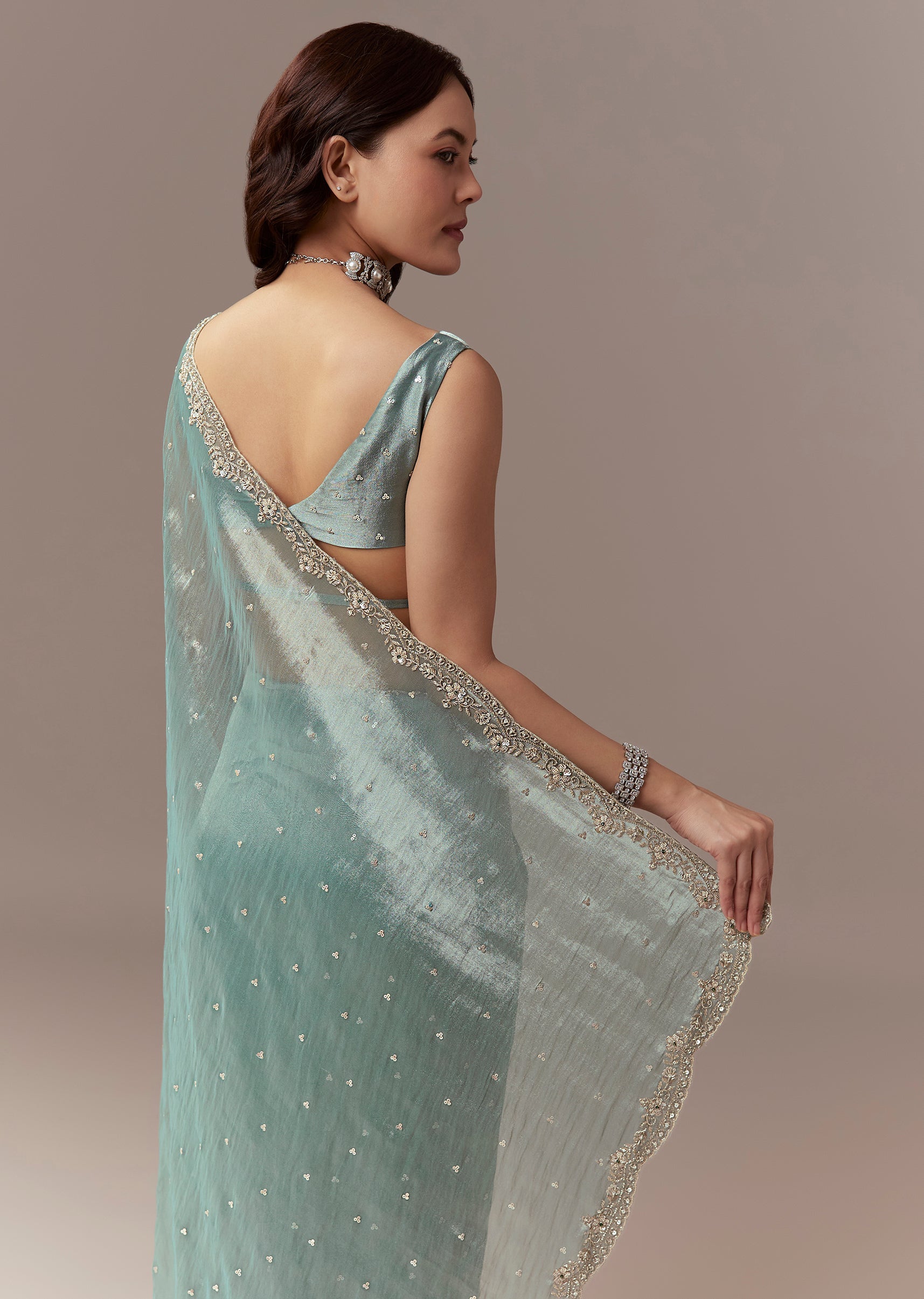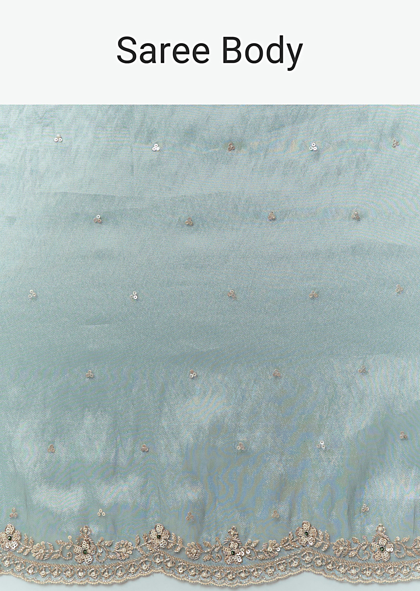 Light Blue Tissue Silk Saree With Cutdana Beads And Sequin Embroidery