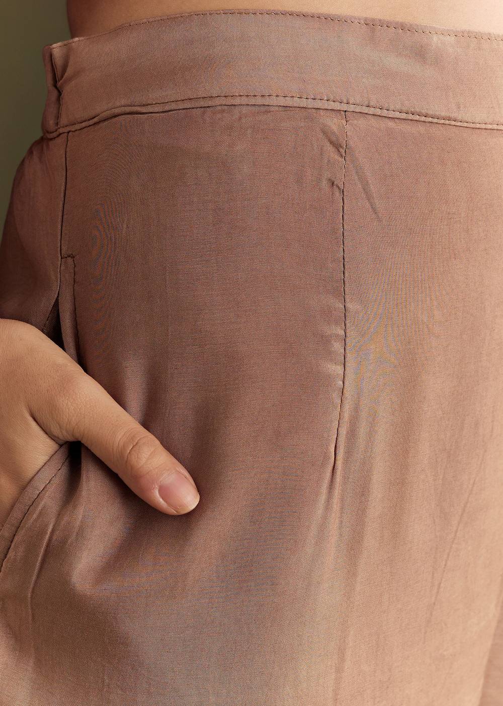 Light Brown Solid Kurta Pant Set With Orange Beaded Neckpiece