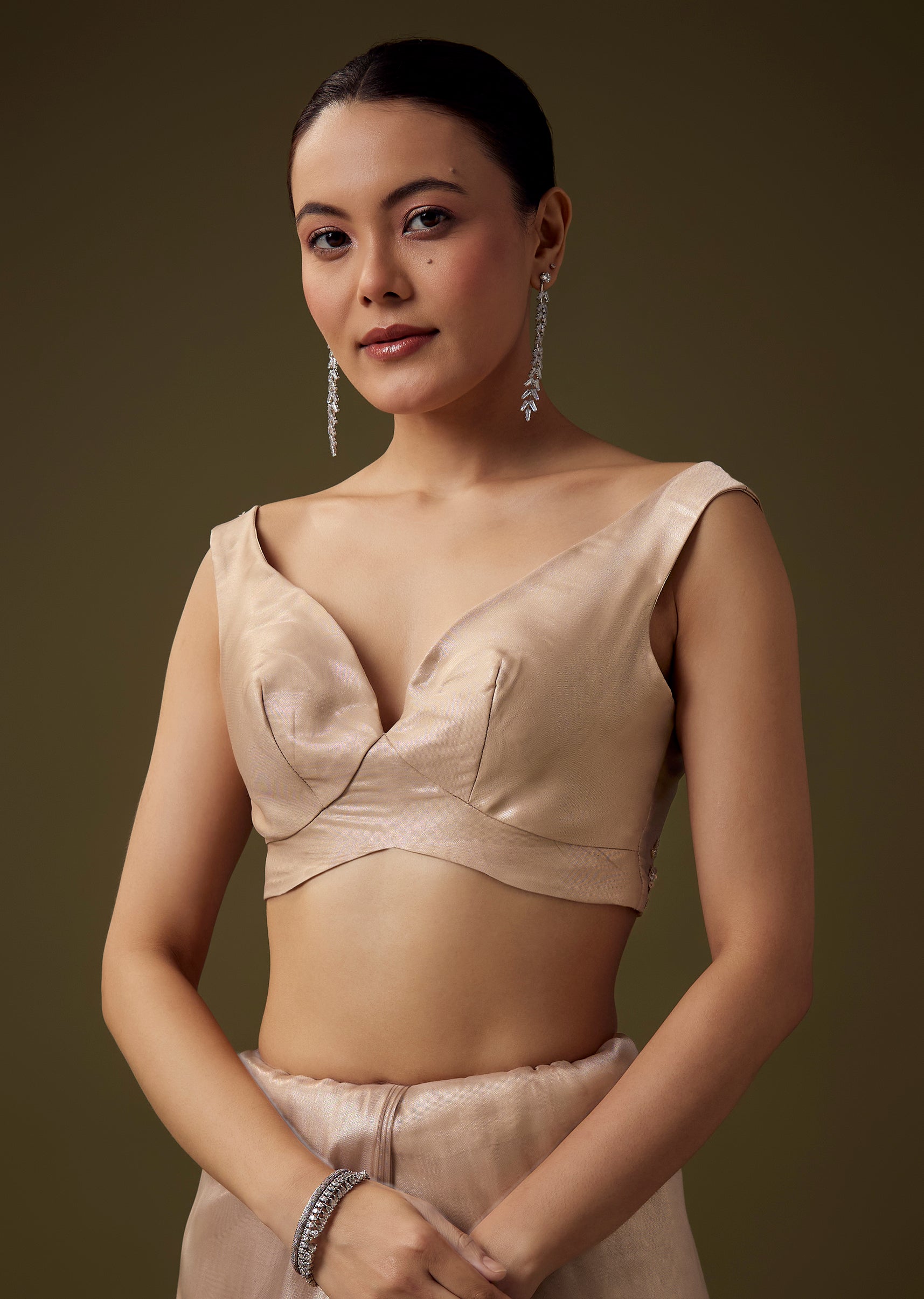 Pair it with pearl or diamond jewelry, soft pastel makeup, and a loose textured bun for a romantic polished look.