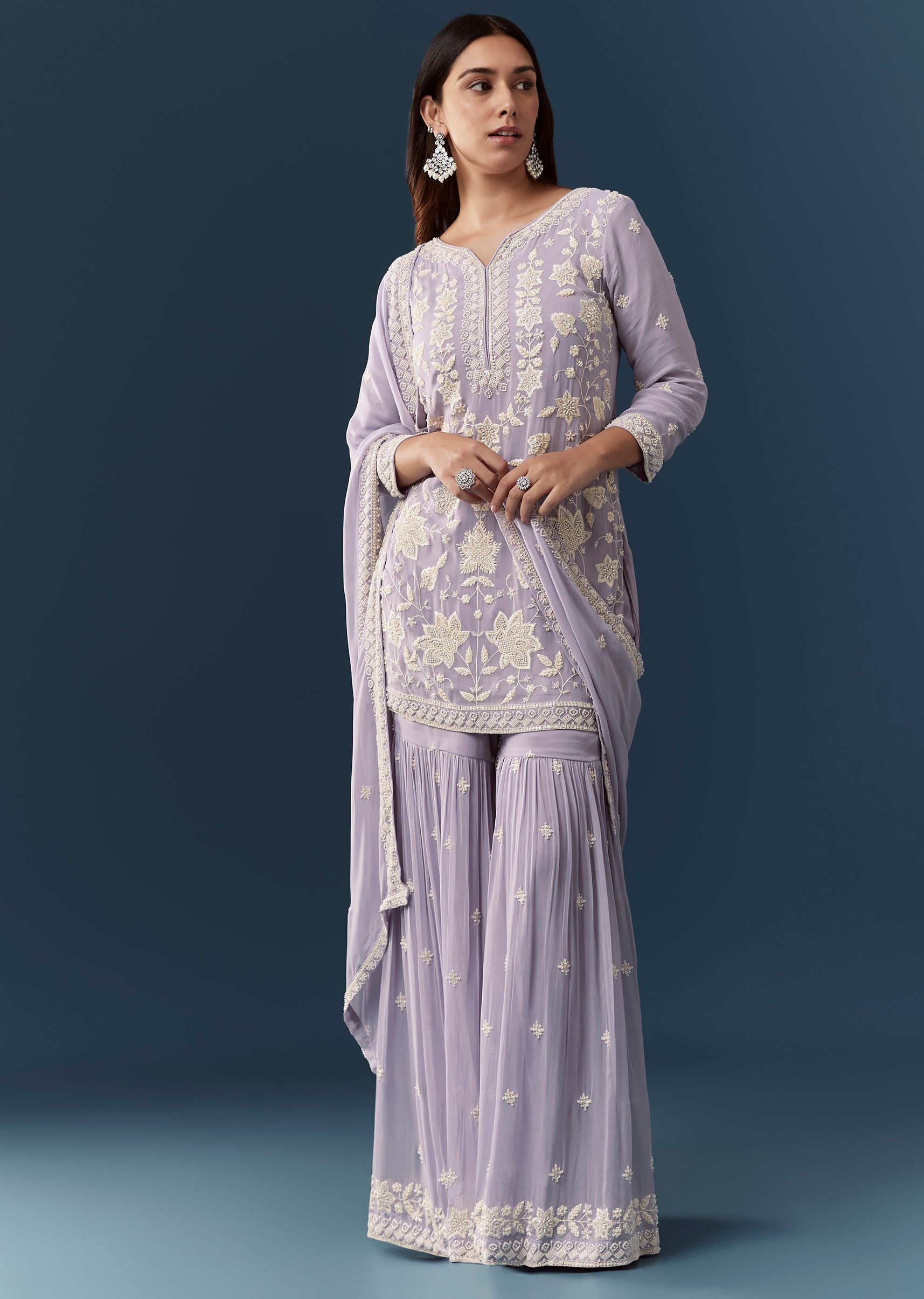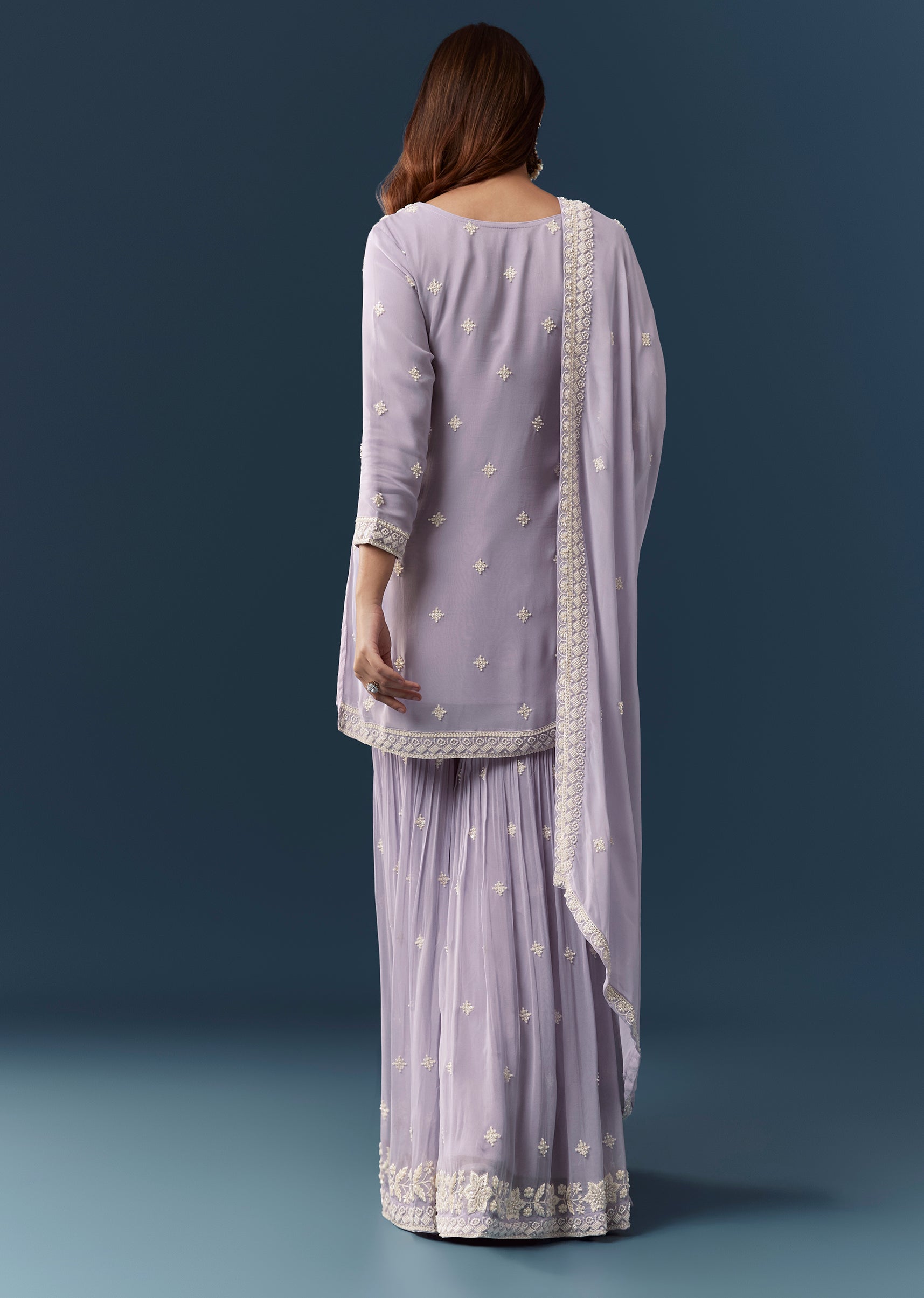 Lilac Georgette Embroidered Kurta Sharara Set