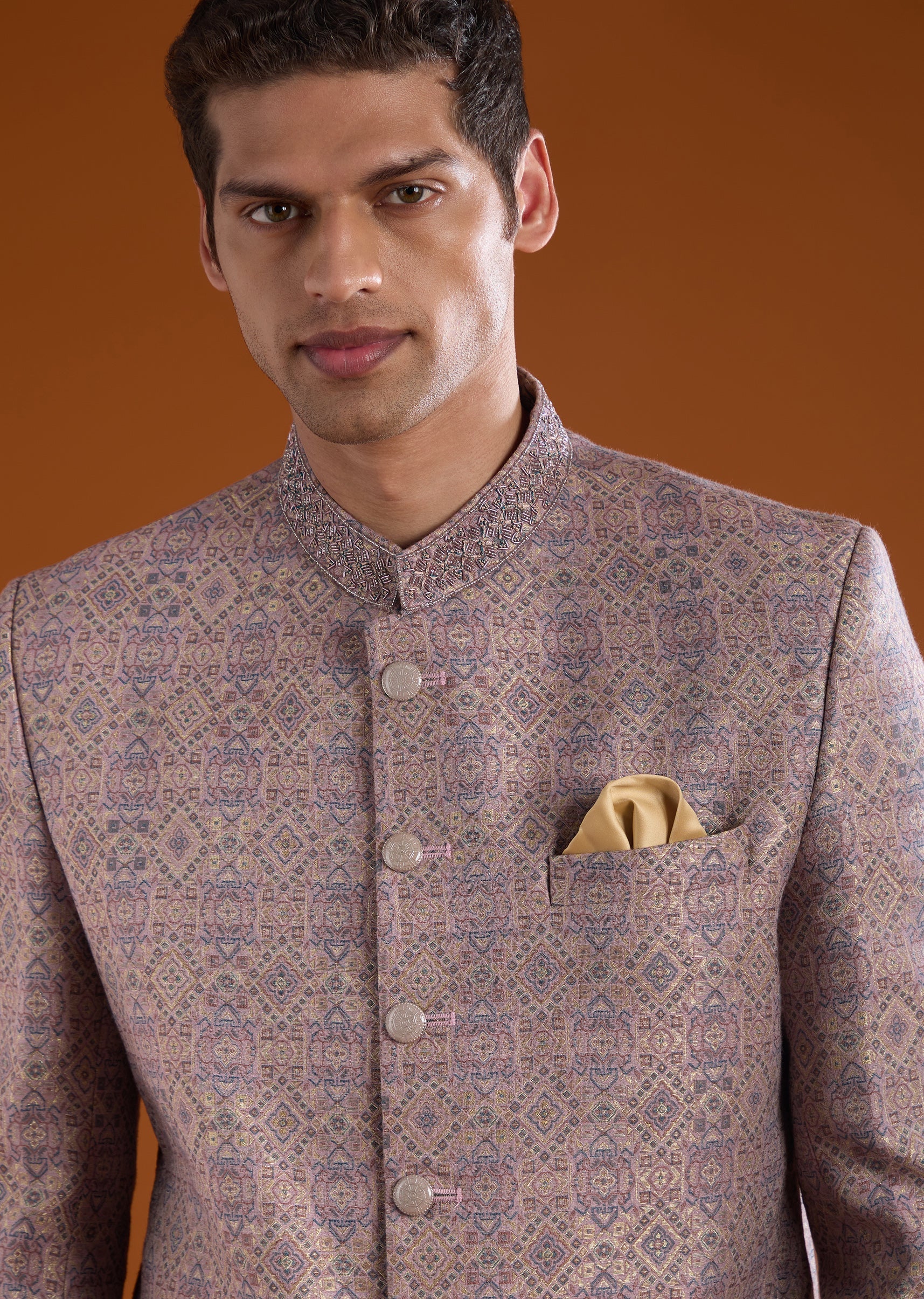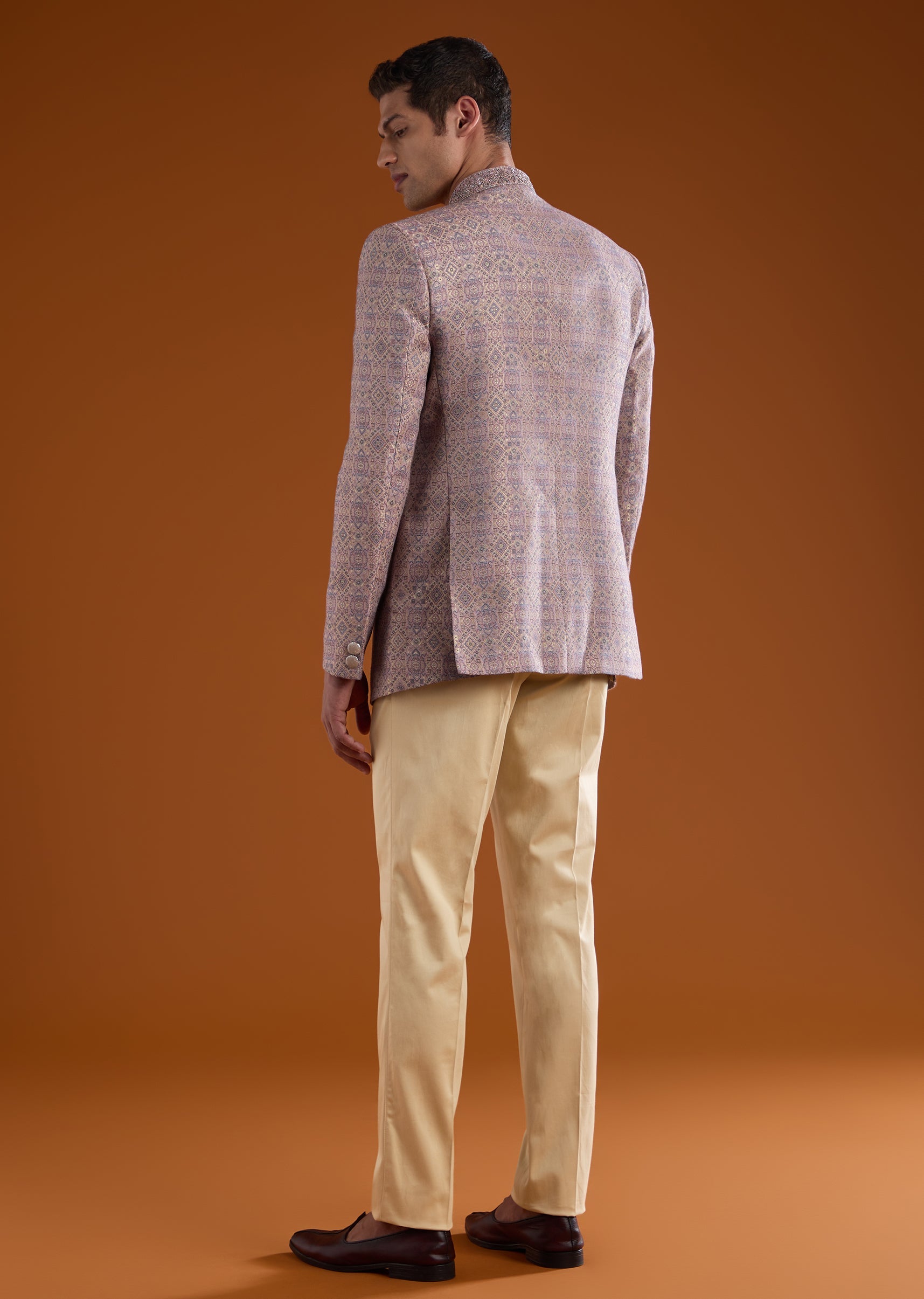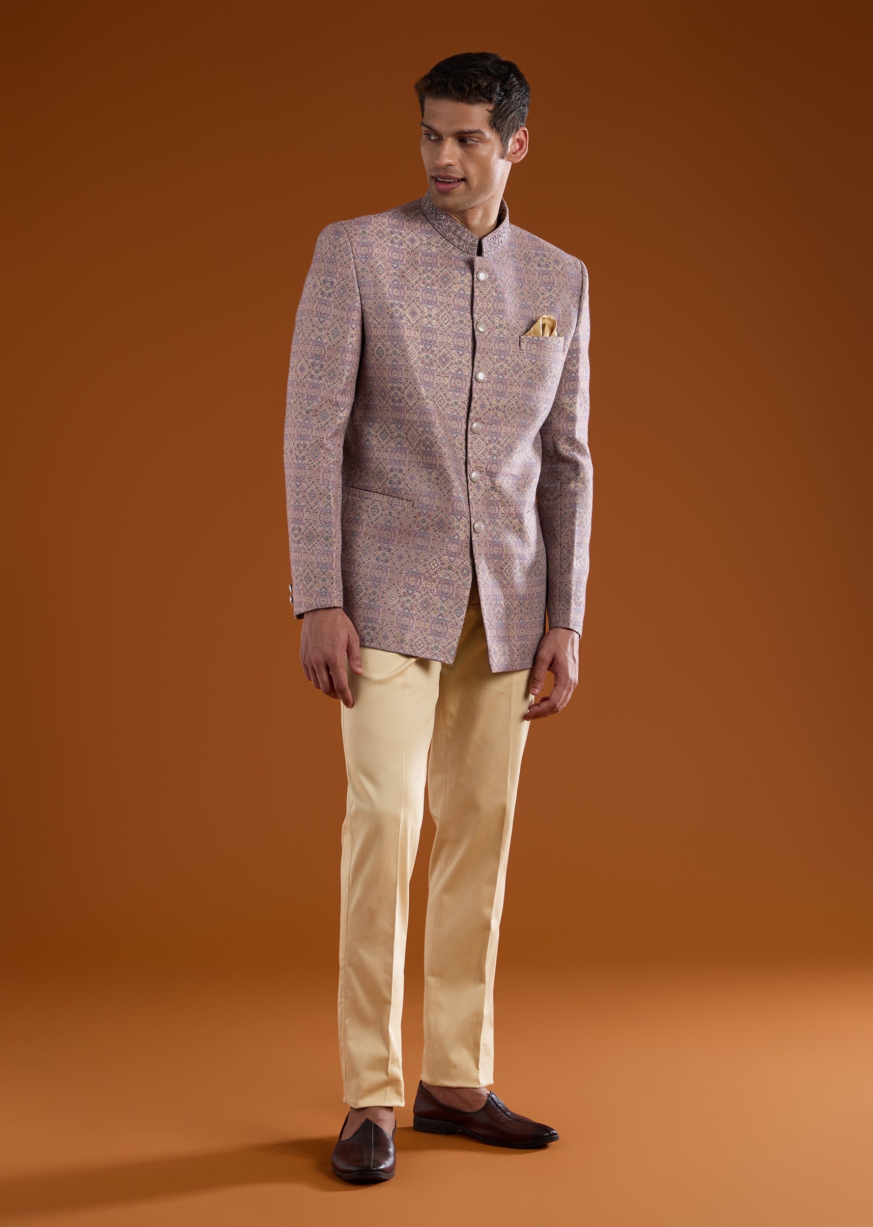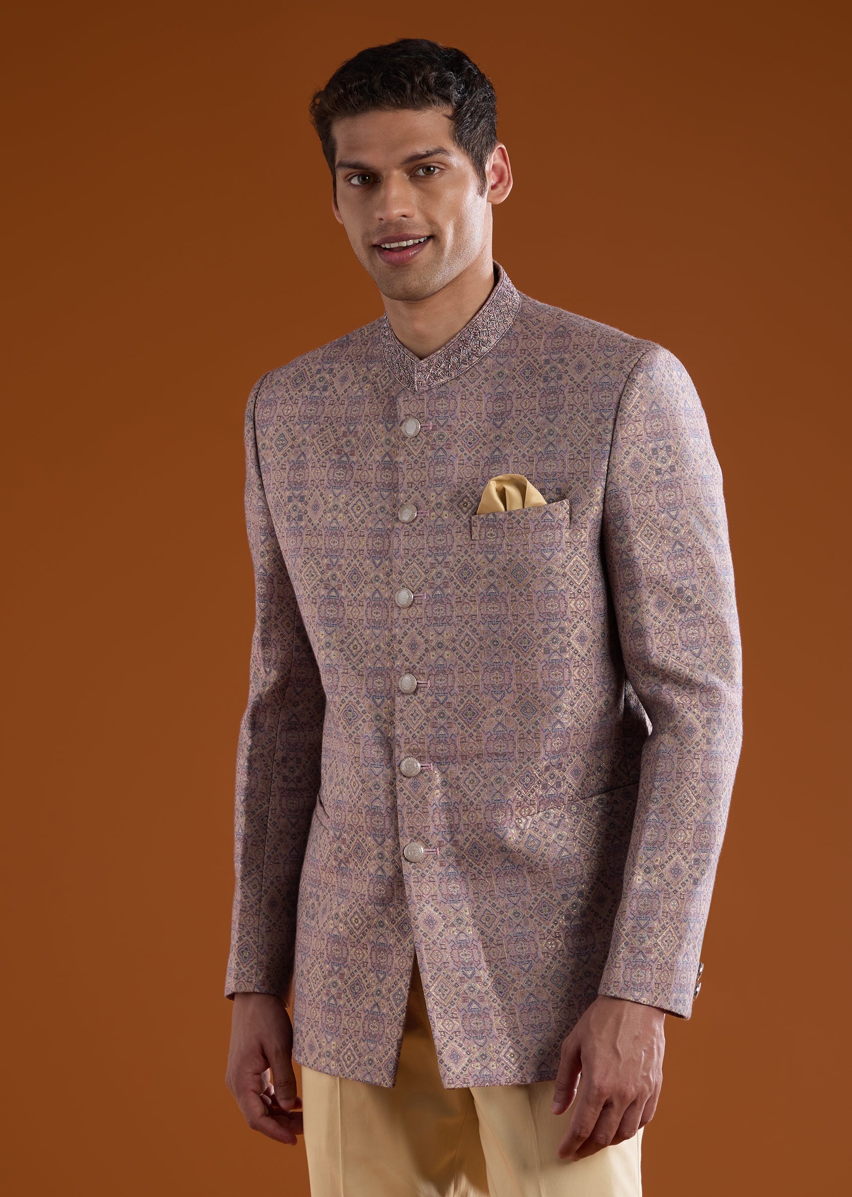 Lilac Jacquard Jodhpuri Set with Bead Work