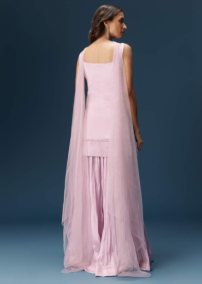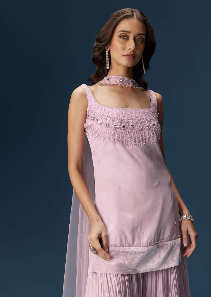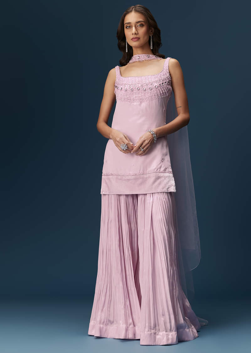 Lilac Sharara Suit With Choker And Ruched Sharara