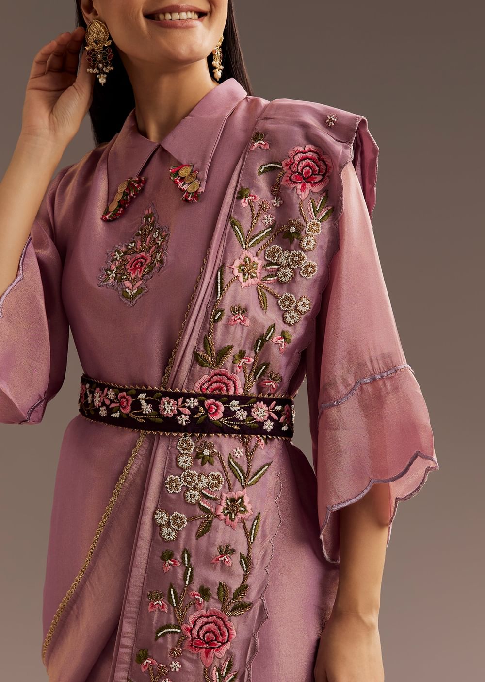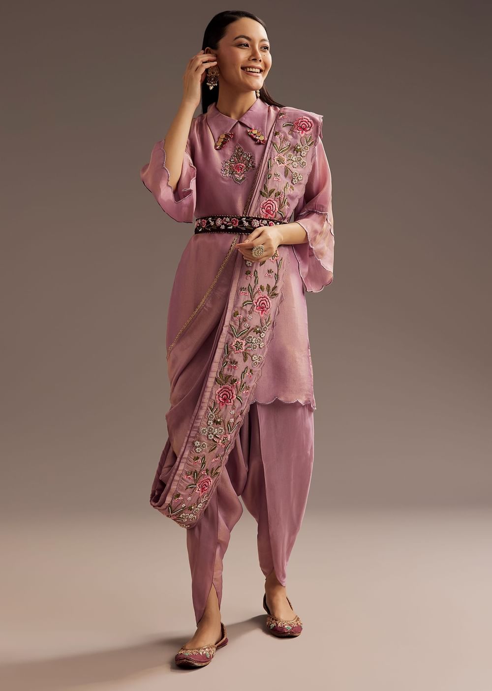 Lilac Zardosi Motif Kurta Dupatta Belt Set
