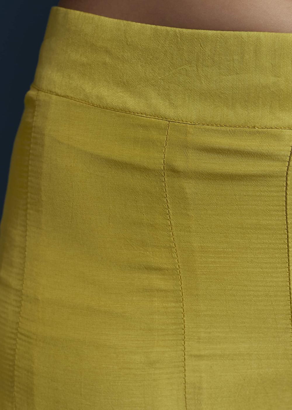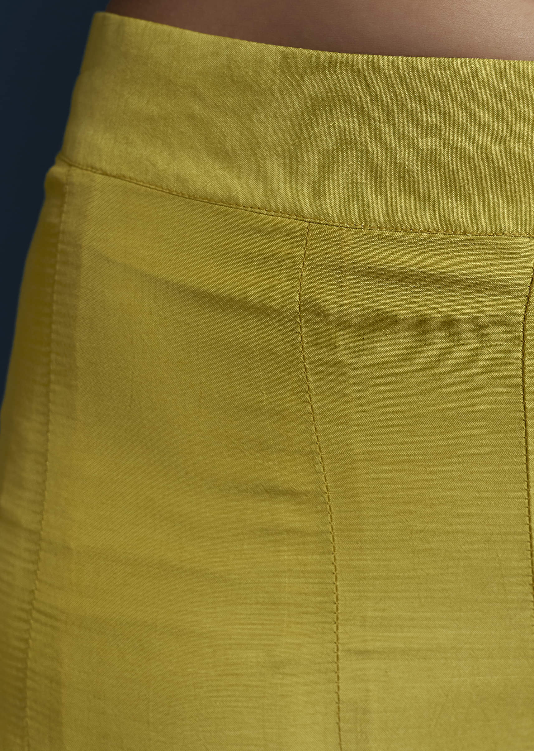 Playful and refreshing, this lime green silk crop top and pant set is a contemporary take on festive dressing. The lustrous silk fabric enhances the vibrant hue, while delicate moti... More Product Details