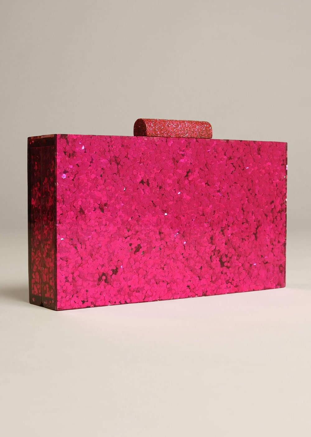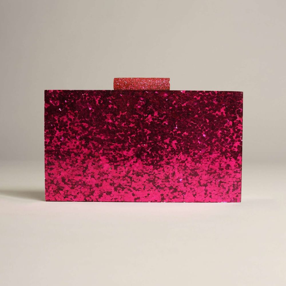 Magenta Pink Box Clutch With Shimmer Glitter All Over Online - Kalki Fashion