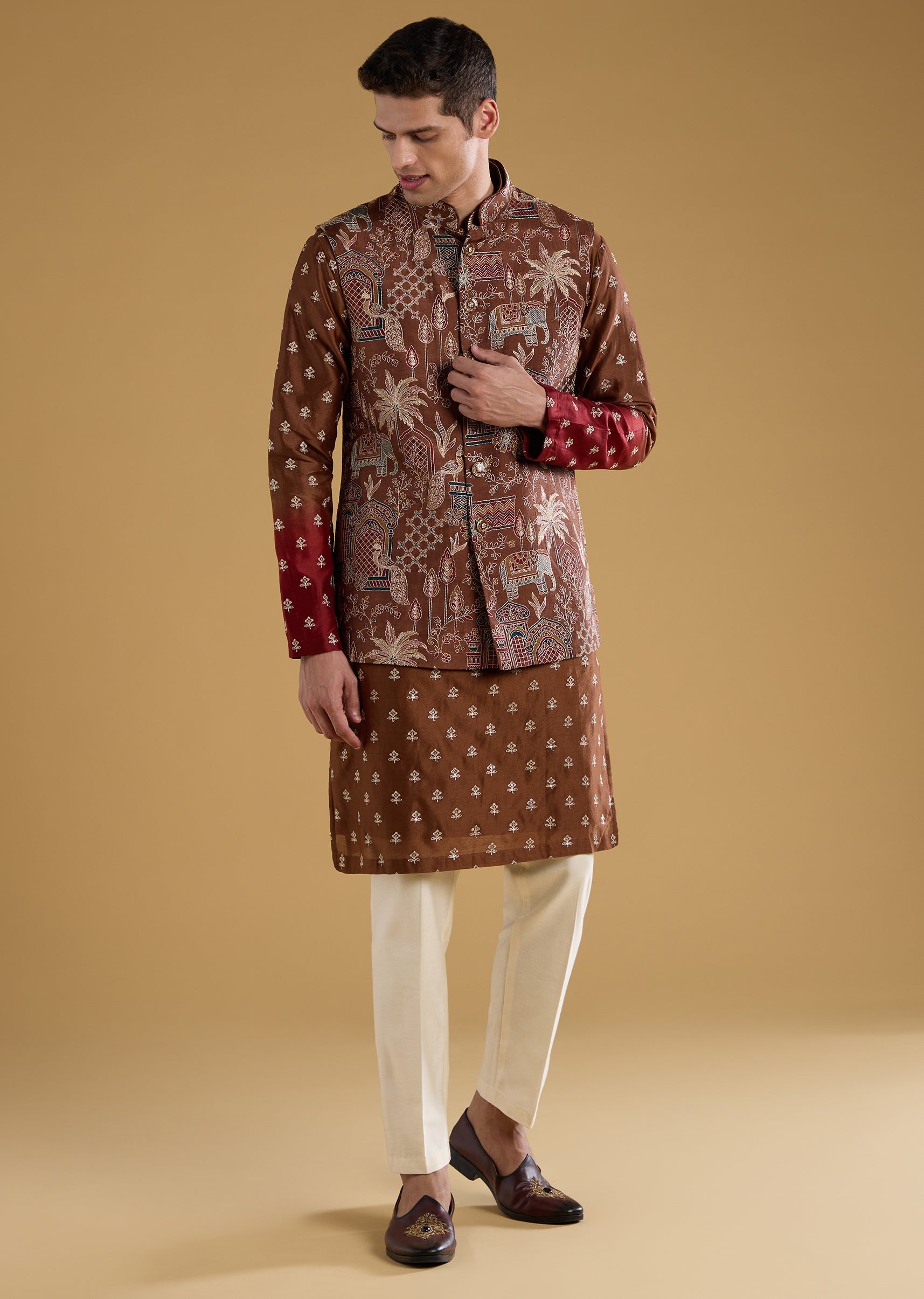 Maroon Silk Thread Embroidered Jacket and Kurta Set