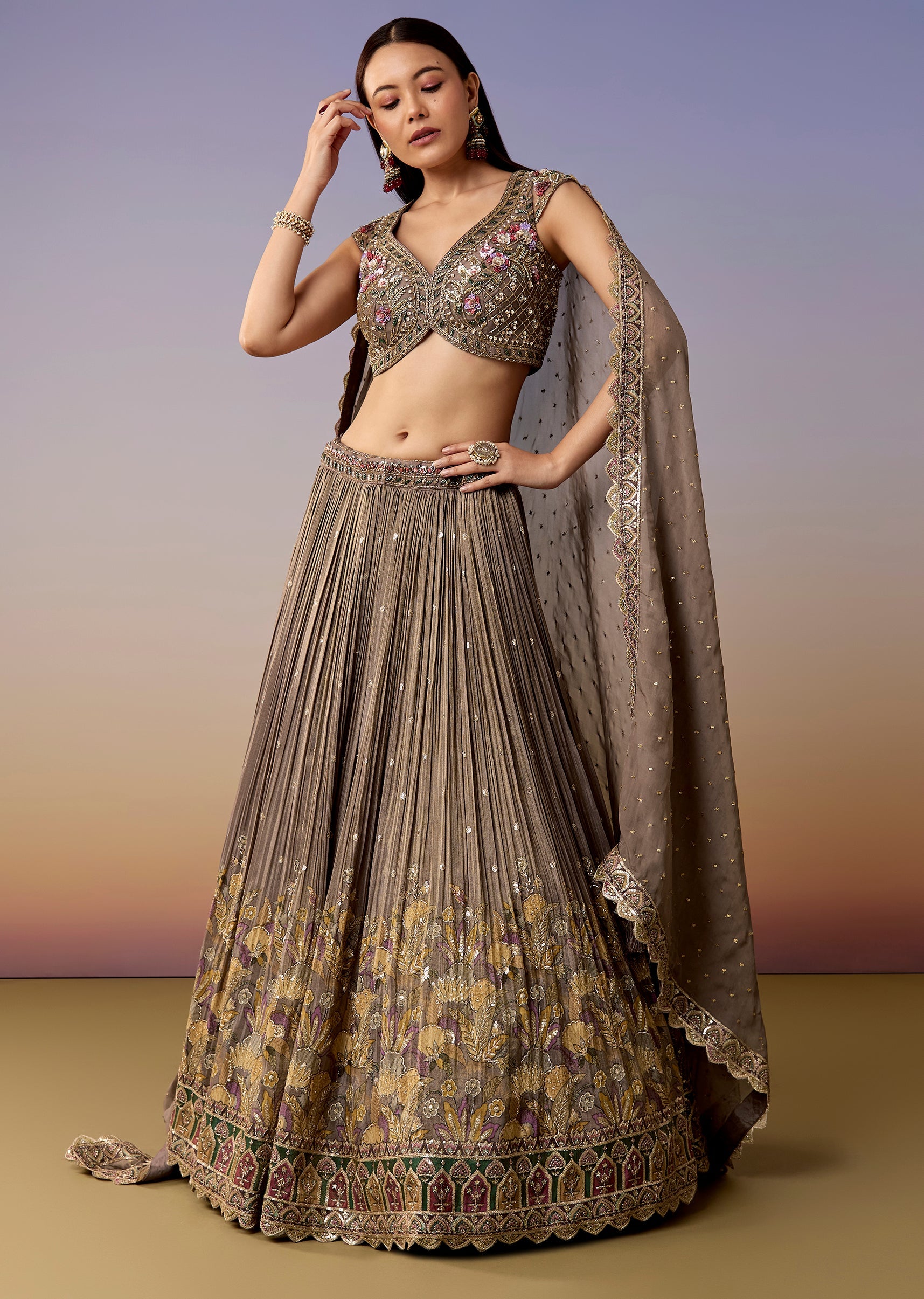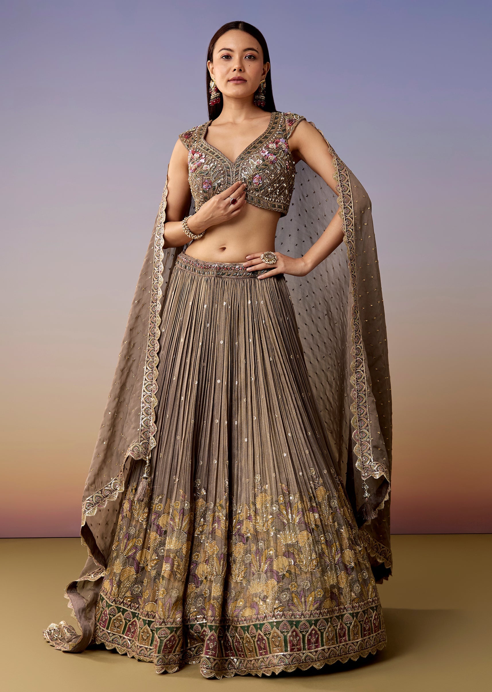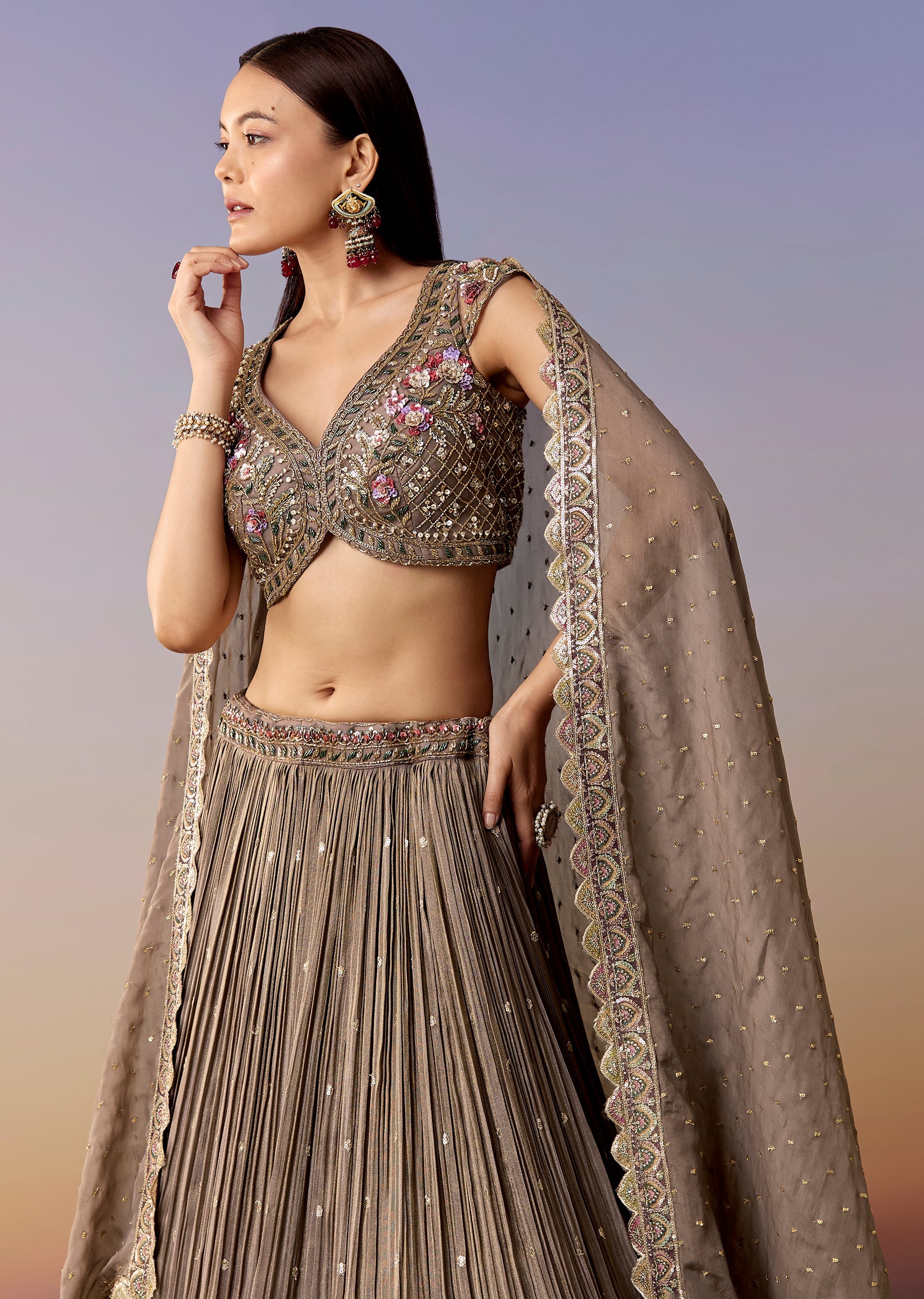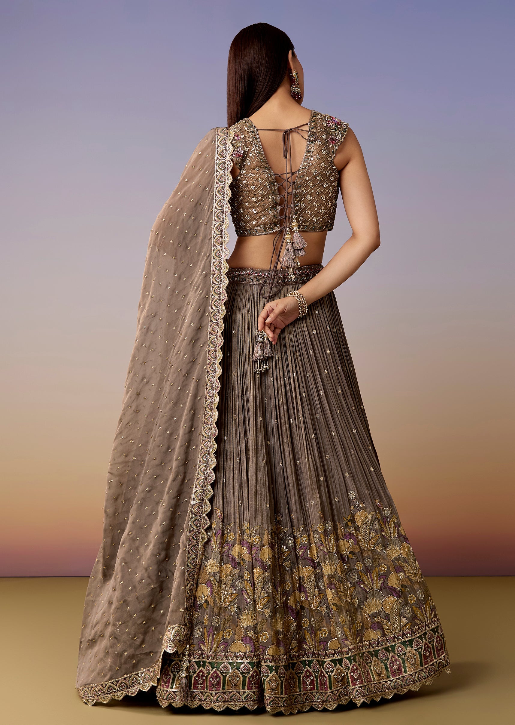 A soft mauve pastel lehenga set featuring a sweetheart choli with cut-dana and sequin embroidery, matched with a flared net lehenga and dupatta. A classic bridesmaid pick for sangeet, mehendi, and engagement events. Awarded as the Most Trusted Brand, we're delivering styles you love, just as promised.