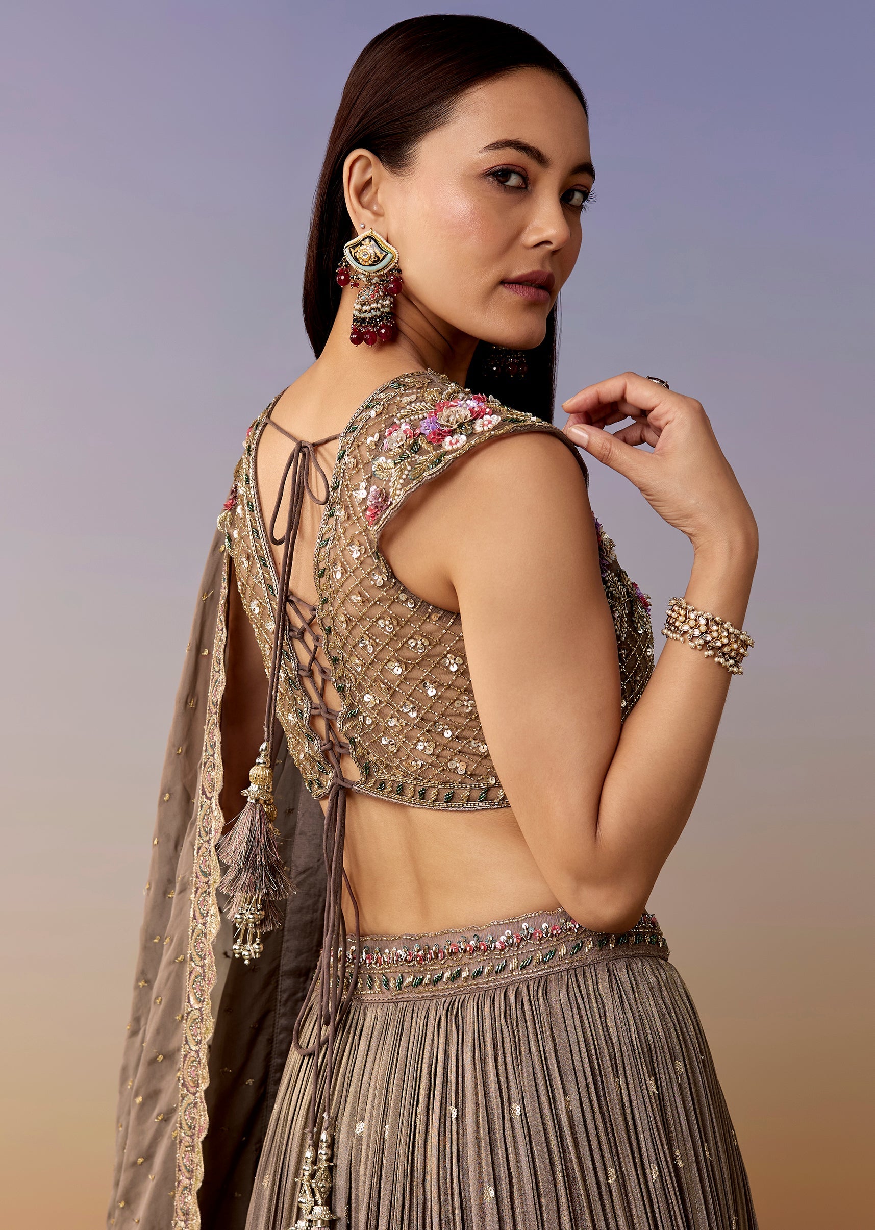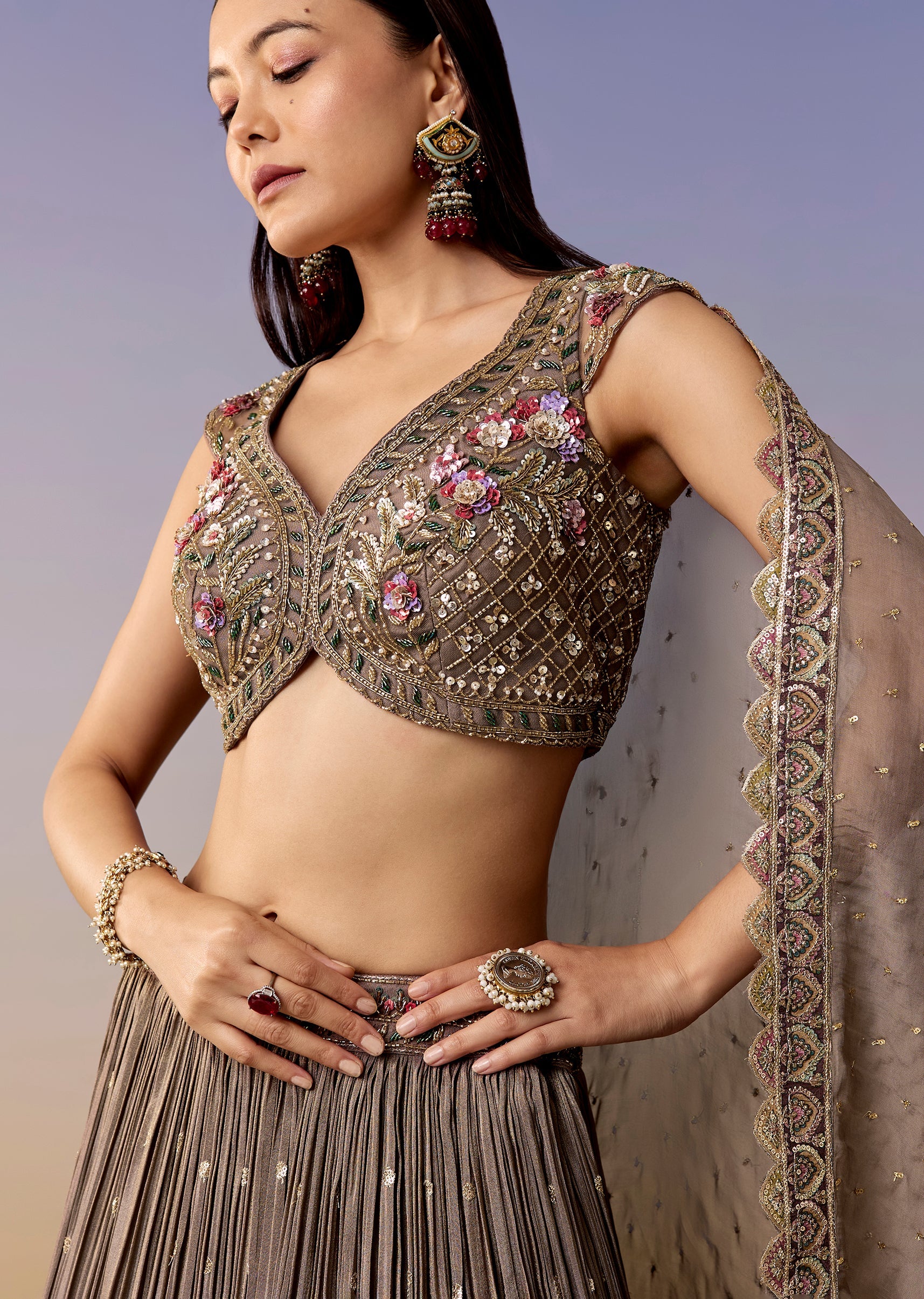 Mauve Embellished Bridesmaid Lehenga Set