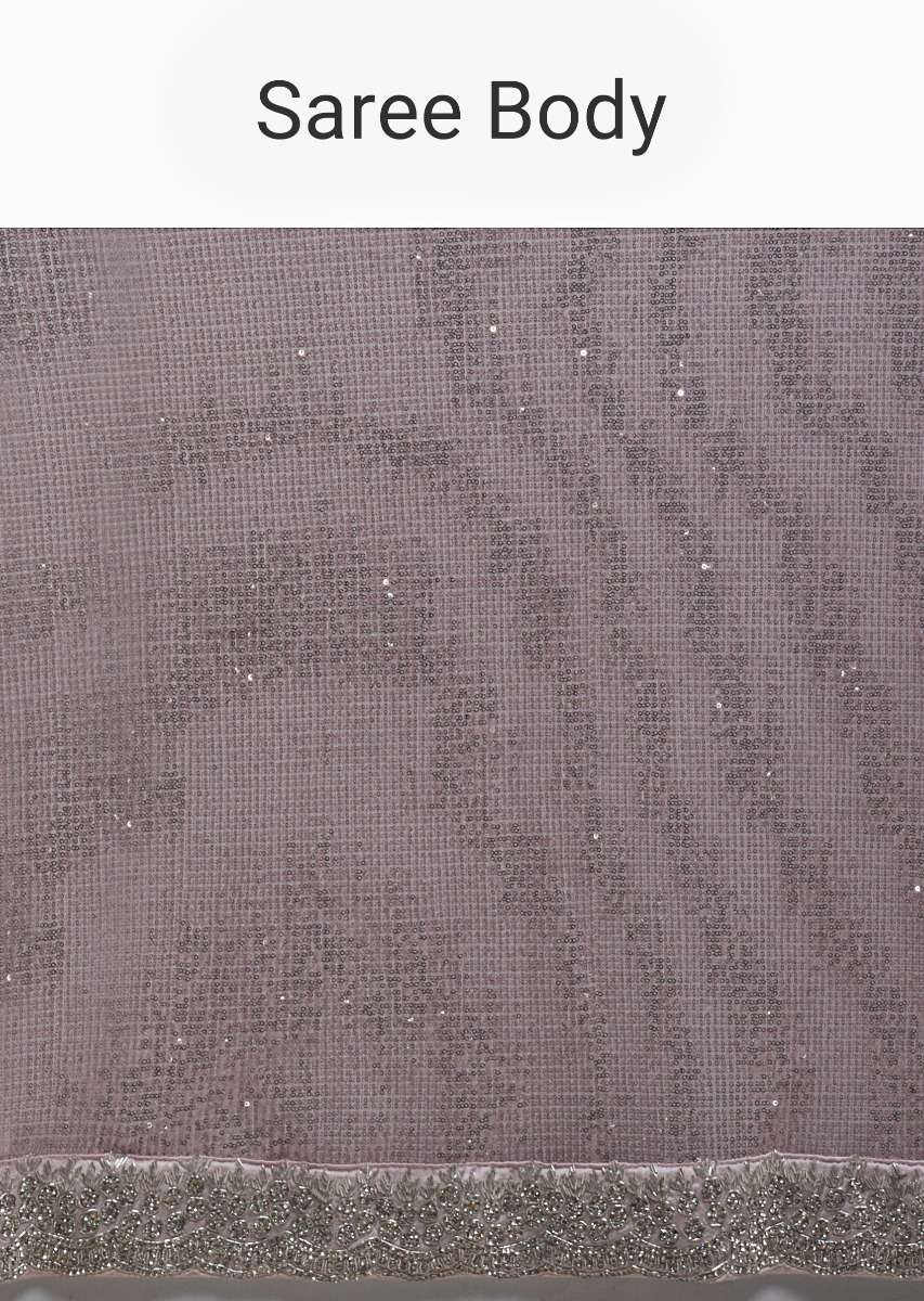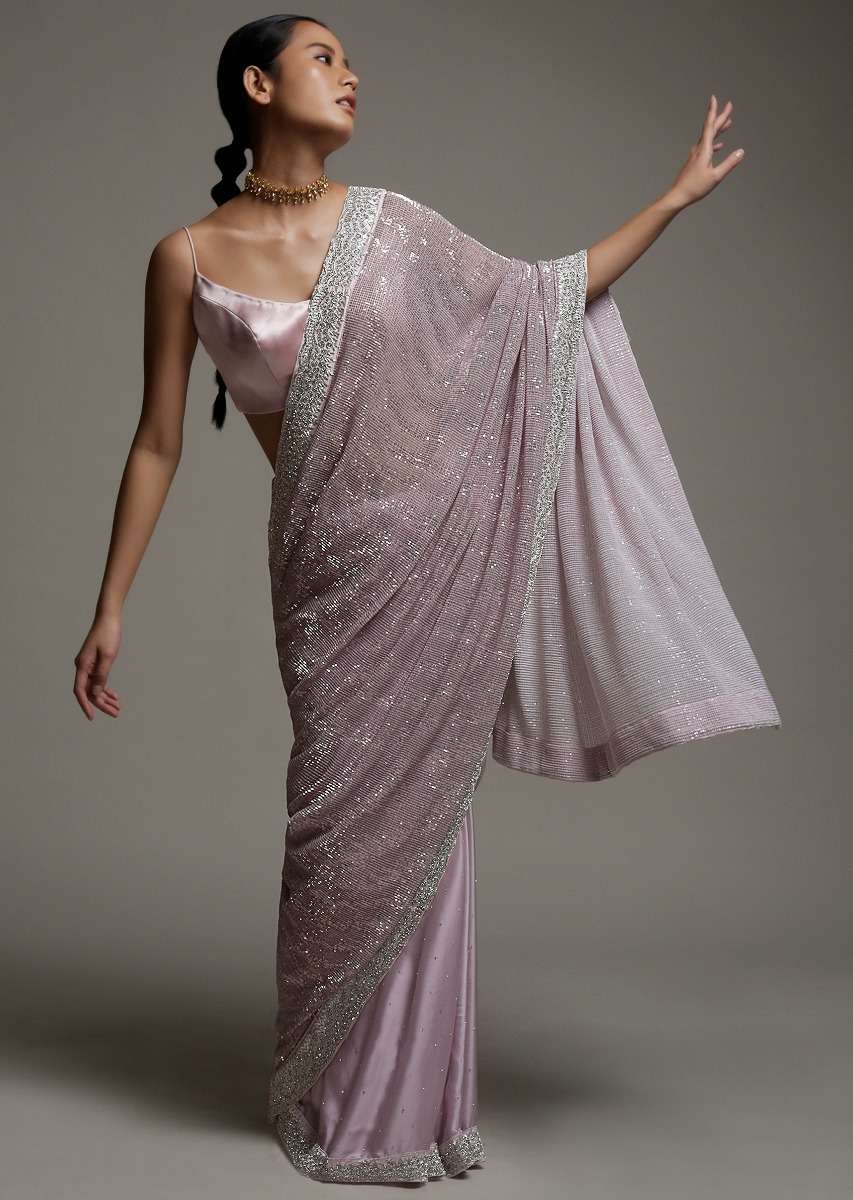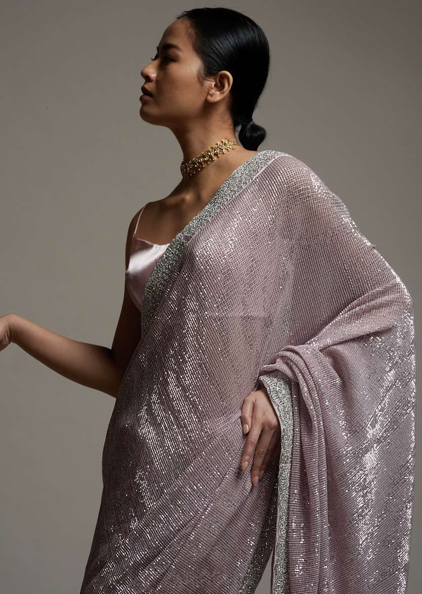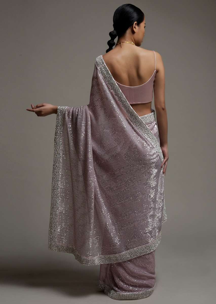 Mauve Pink Half And Half Saree In Crepe With Crushed Sequins Pallu And Unstitched Blouse
