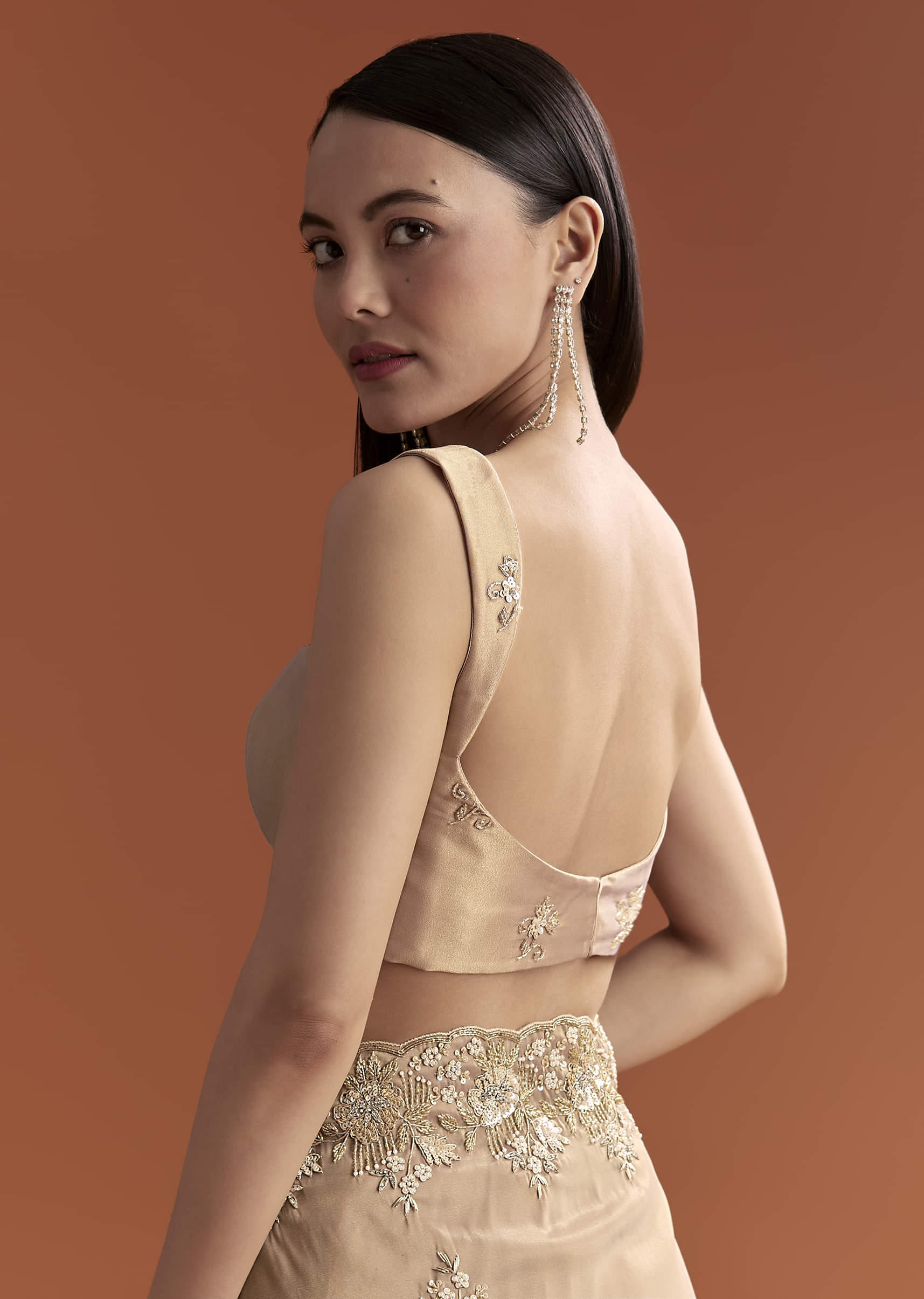 The mauve shade gives this tissue saree a soft and sophisticated tone. Scallop borders and floral buttis shine with cutdana, beads, sequins, and stone detailing. It is perfect for wedding guests who want elegance that stands out gently. Awarded as the Most Trusted Brand, we're delivering styles you love, just as promised.