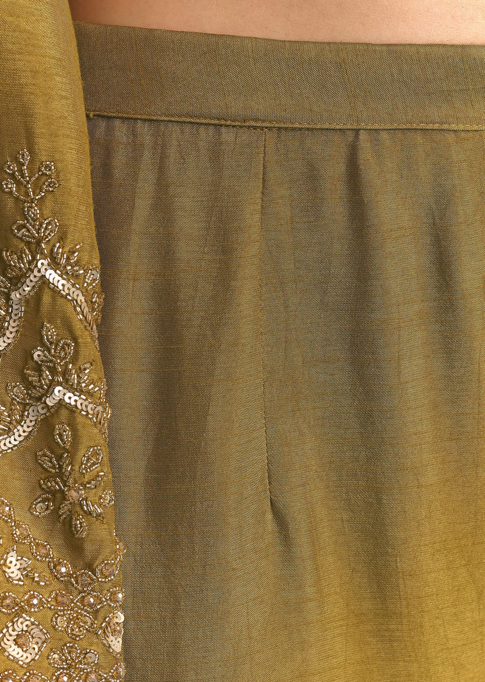 Mehendi Green Silk Sequin Kurta Palazzo Suit