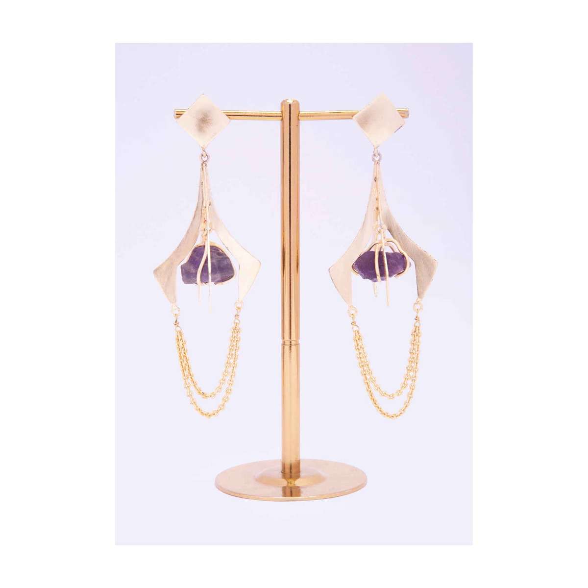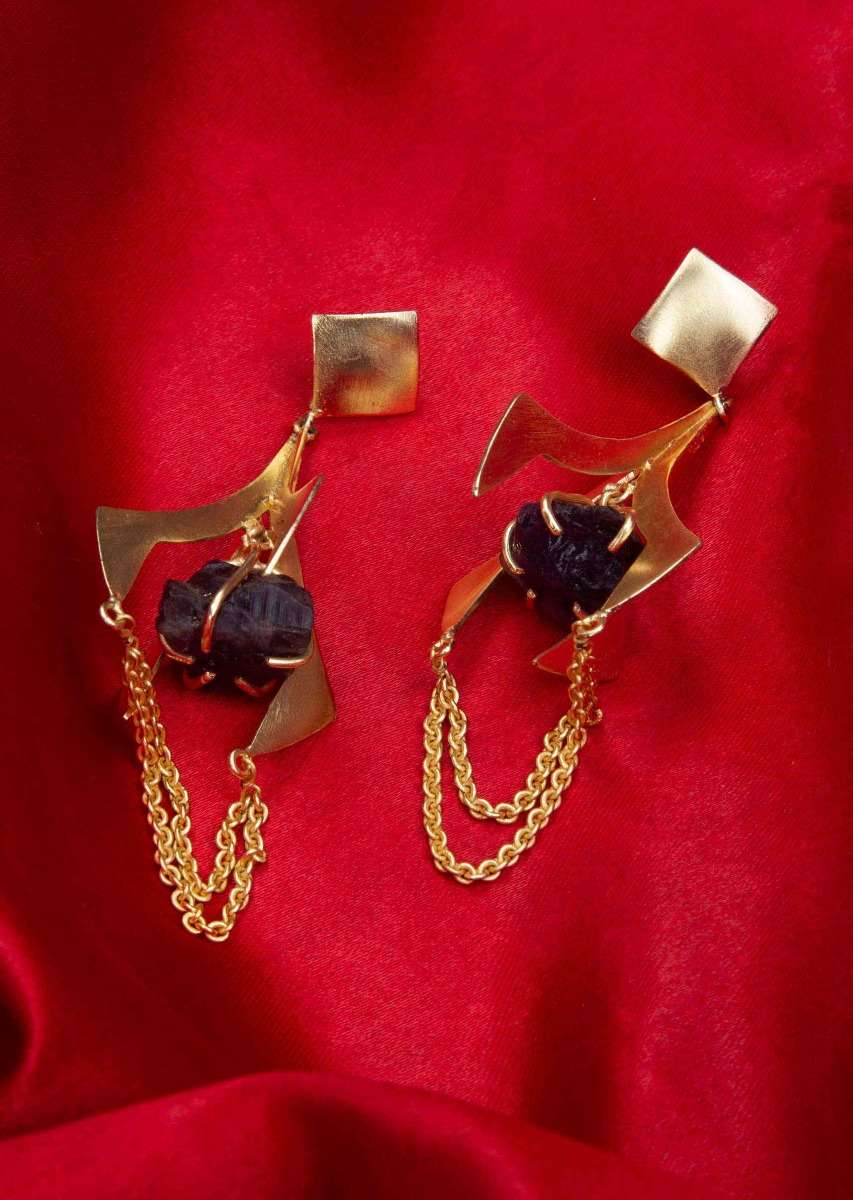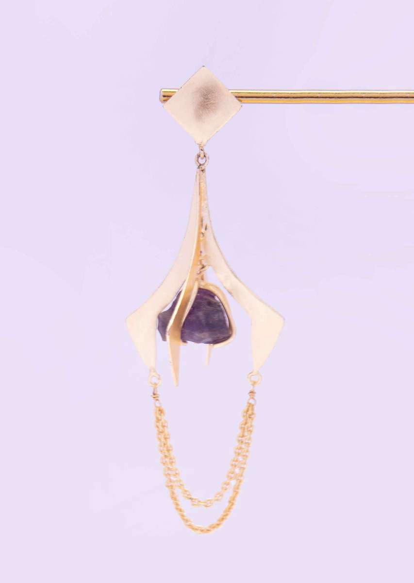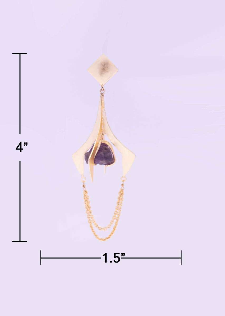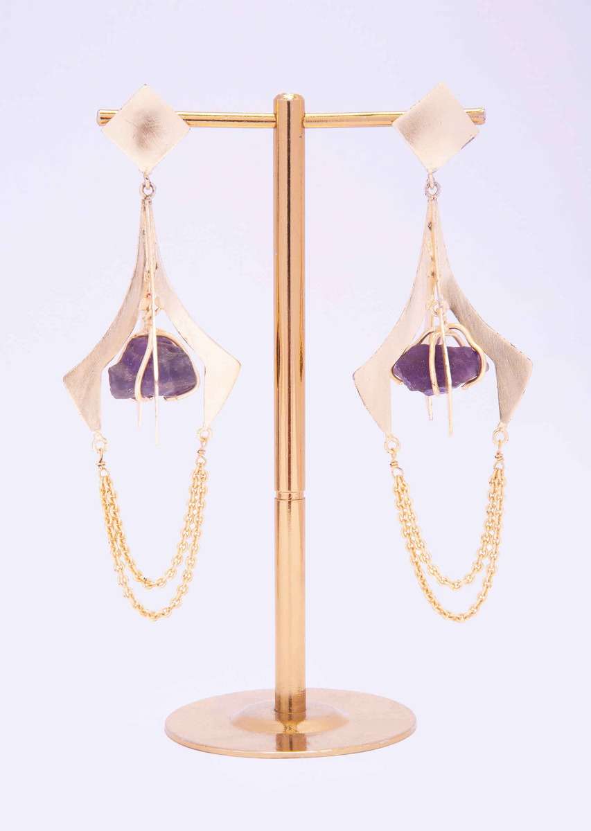 Metal Coated Party Earring With Encaged Amethyst Stone Online - Kalki Fashion